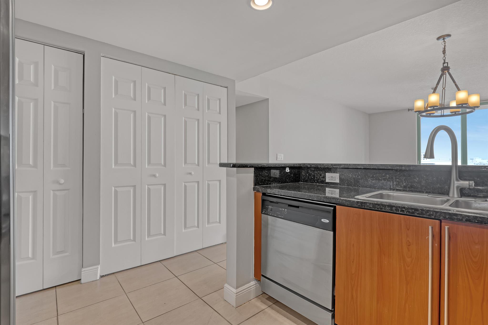 Immaculate 2 bedroom, 2 bath condo with foyer and balcony with view of downtown West Palm Beach. Stacking bedrooms, spacious primary Suite with walk in closet. Kitchen has stainless steel appliances, pantry-closet and laundry-utility closet. Water, cable and internet included in maintenance fee. Amenities include pool, fitness center, steam room, sauna, reading room, Zen garden and 2 grills. Near Cityplace, Shopping, Restaurants, Kravis Center, Green Market and more. Minutes away from Palm Beach, PBI Airport and Brightline. All information deemed reliable but not guaranteed. All sizes and measurements approximate.