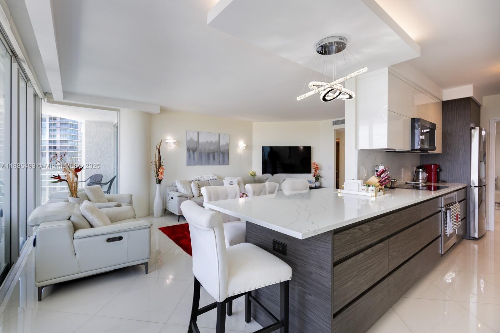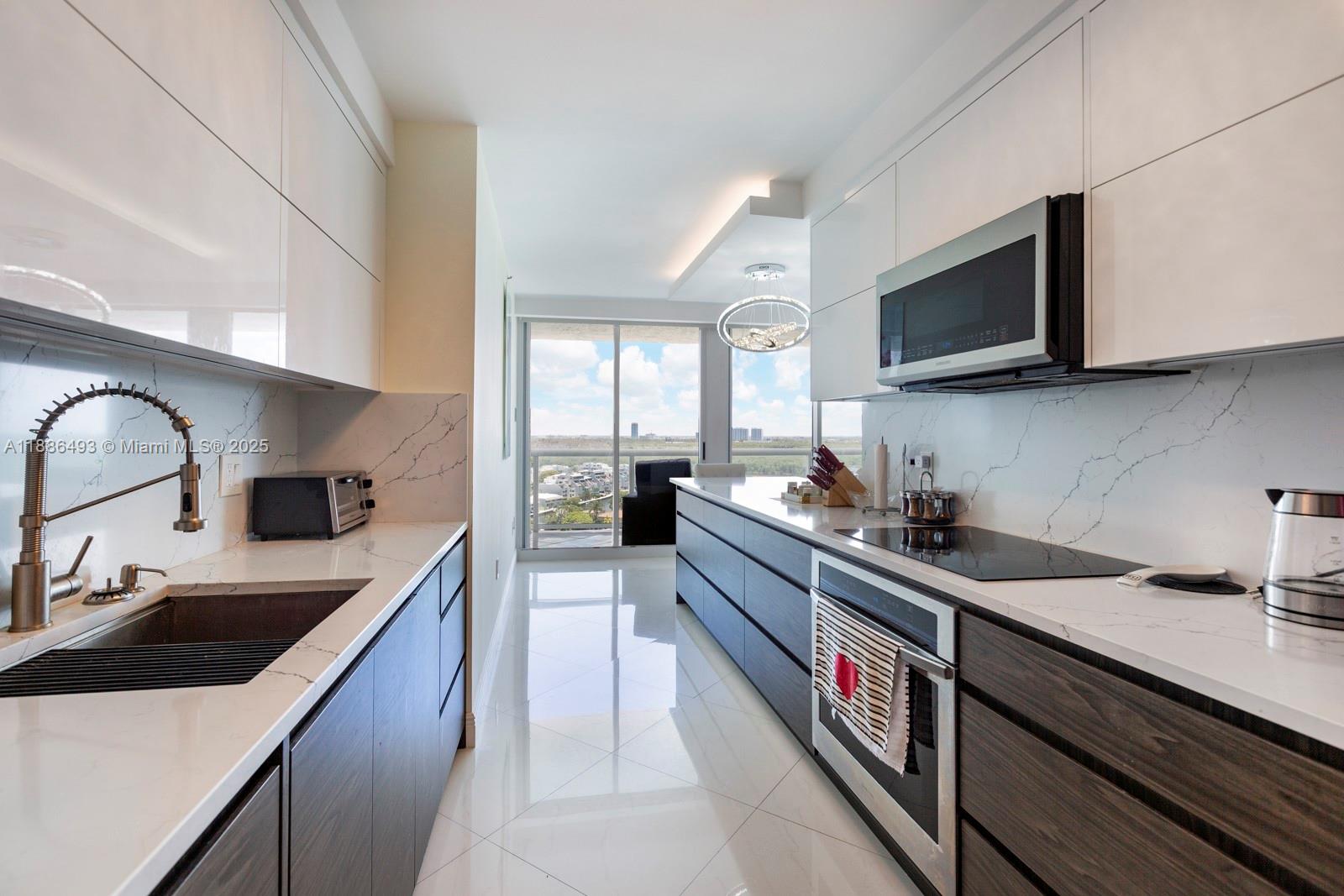 Fully and Highly Renovated Resort living panoramic views from this 2BR, 2BA + den condominium on the 18h floor of Oceania Island, Tower IV. SPECIAL ASSESMENT PAID BY THE SELLER. Extra large wrap-around balcony overlooking the bay, ocean, and the Miami Beach skyline with South West exposure. Condo is fully renovated floor-to-ceiling windows with electric blinds, full size , all new appliances. Immaculate condition w custom closets and extra designer built-ins, gym, exercise classes & personal training . Beach amenities include lounge chairs, umbrellas, and towel service. Relax at the bar or take advantage of the complete spa services, salon, massage, & facials. Resort Living one of the high ends on Sunny Isles. Close to Shopping plazas, Aventura, Ball Harbor mall and restaurants.