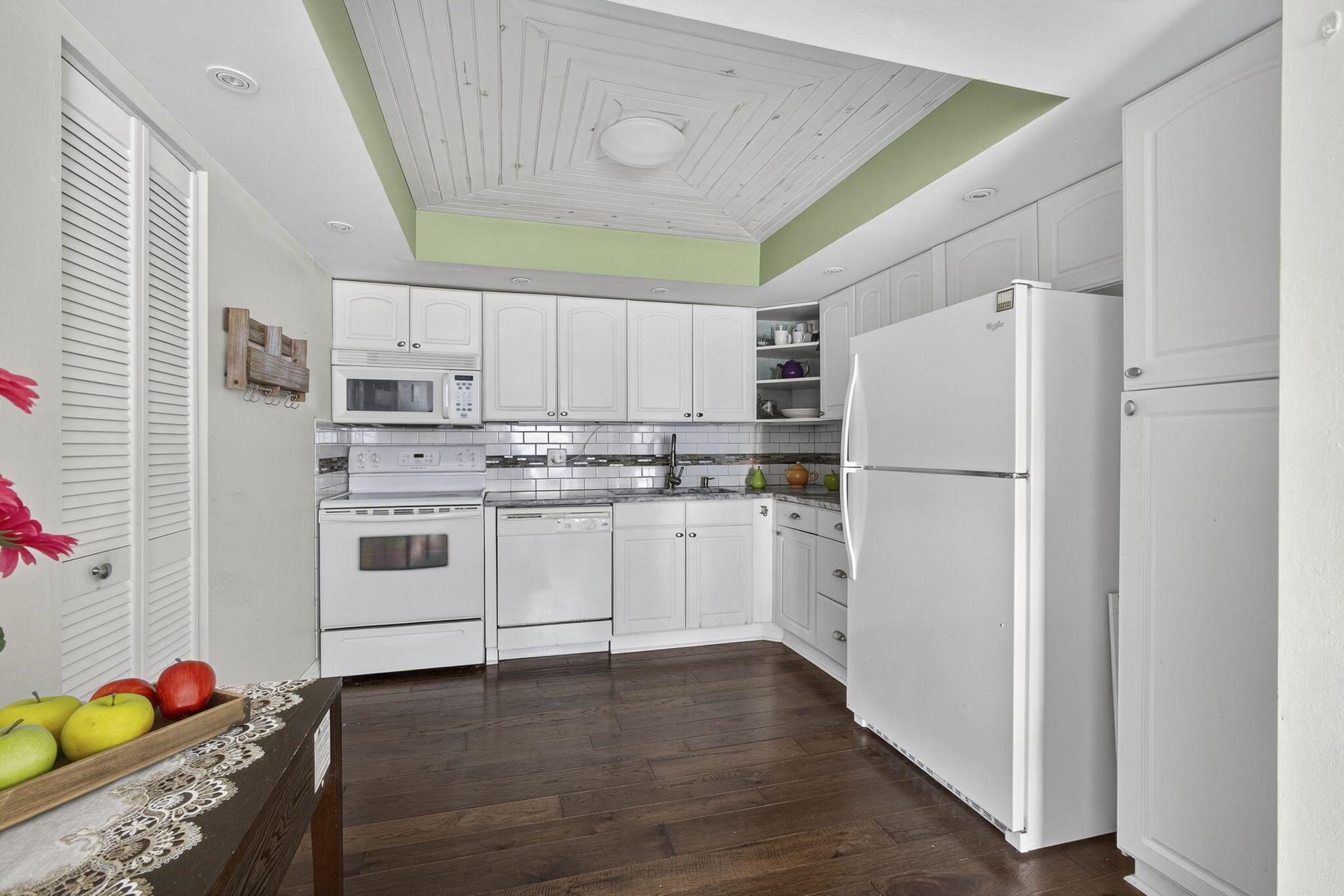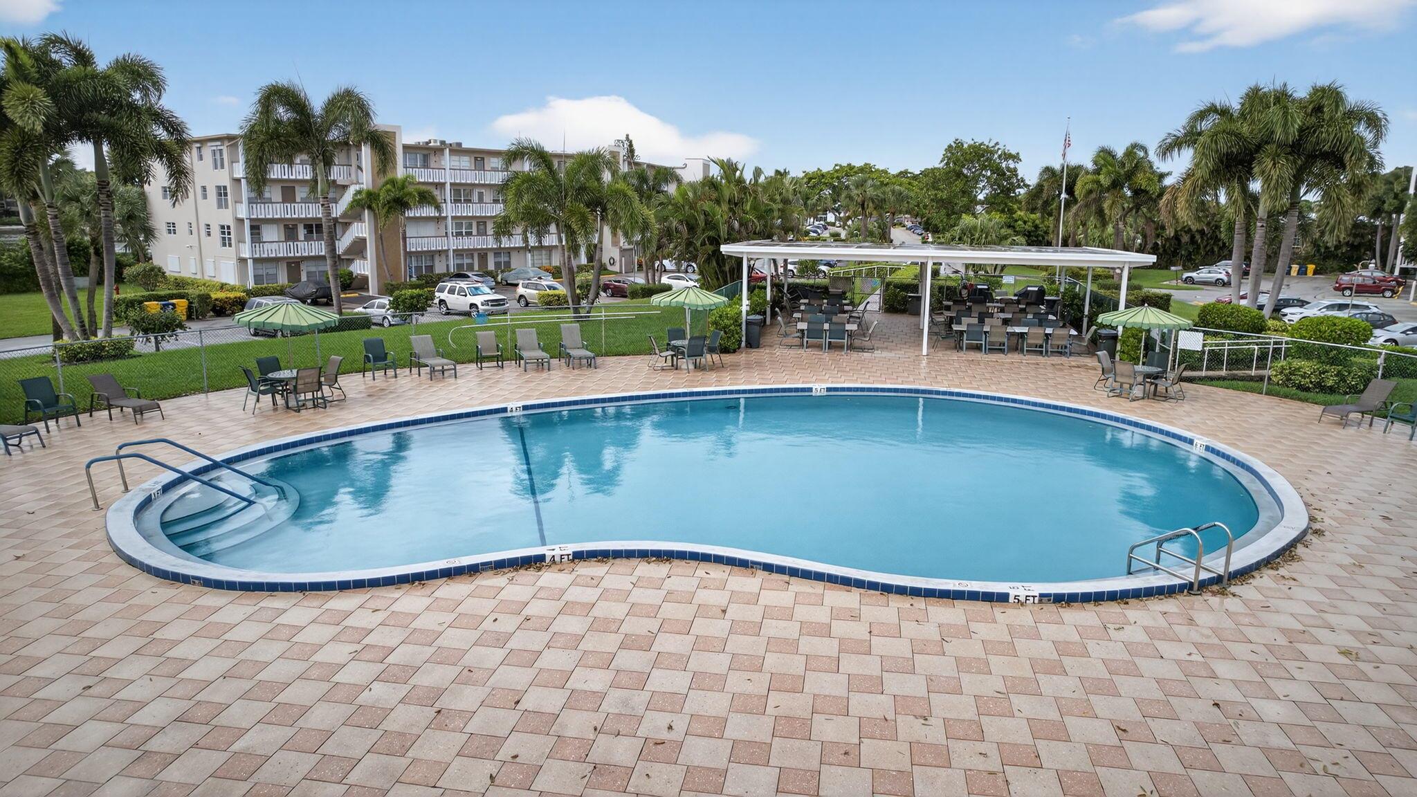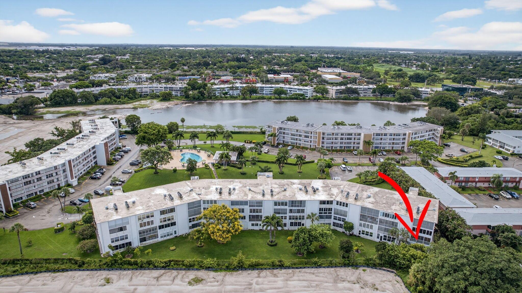 Beautiful and Spacious Updated Rare Floor Plan in the Greenbrier Section of 55+ Century Village! Very Large First Floor Corner One Bedroom & Two Full Bath with over 1000+ sq feet of living space condo. Hardwood Flooring Throughout. Updated Kitchen & Baths. Impact Windows, Impact Enclosed Lanai, Updated Slider (non-impact) to Lanai With Accordion Shutter. Over-sized Bedroom Suite With Updated Full Ensuite Bath, Two Closets (including one HUGE walk-in closet). New AC in 2021. Greenbrier A is a Luxury Building in Century Village with Extra Storage Cage for Each Unit, Trash Chutes, and a Private Resident Pool.