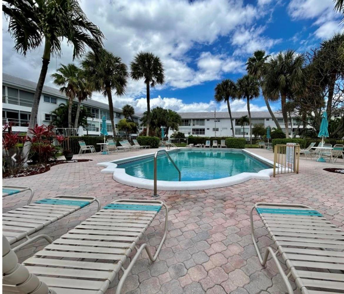 Lovely first floor condo in Desirable Lighthouse Point. Updated neutral tile floors throughout, bathrooms have been remodeled beautifully. Screened patio faces south with lovely lawn, garden and pool area views! Master bedroom has a walk in closet and a full size wall closet which is perfect for lots of clothes or storage. There is an additional storage bin as well. This is a very active 55+ community with no leasing first two years then 2 times per year for no less then 1 month and no longer then 10 months. There is a land lease on the Rec center of $17 per month which is included in monthly maintenance. Fabulous Lighthouse point location, close to shopping, restaurants and worship. Seller will give a $7,000 credit for kitchen.