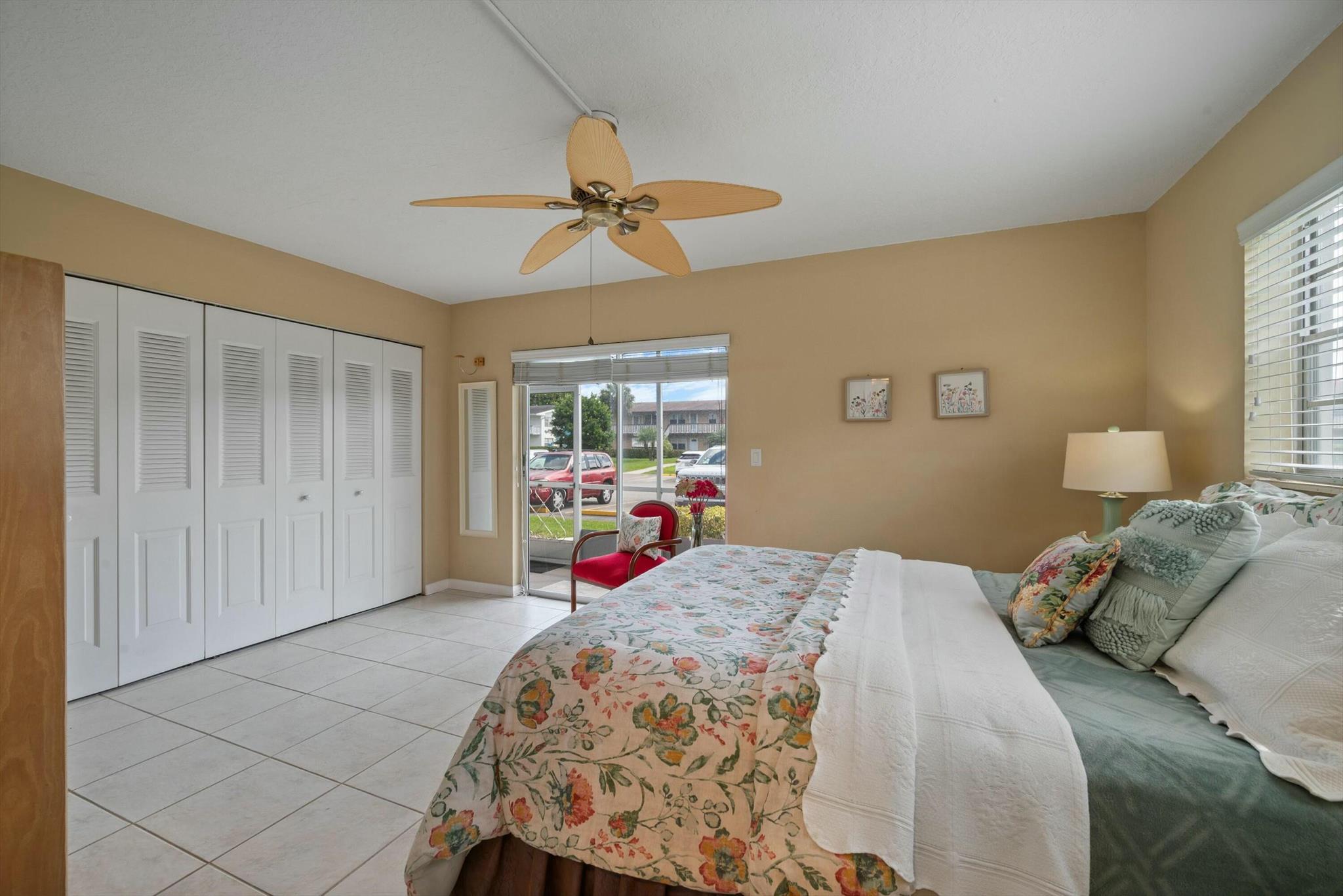 SELLER FINANCING AVAILABLE!!! This beautifully maintained 1-bedroom, 1.5-bathroom corner condo is located on the first floor of a well-kept building in the resort-style 55+ community of Century Village. The unit features an updated kitchen and bathrooms, with tile flooring throughout, providing a sleek, modern look that is easy to maintain. The central AC, installed in 2021, ensures year-round comfort, and parking is conveniently located directly outside the back door. The laundry room and mailbox are just two doors away, adding to the convenience of daily living. The screened-in patio offers a peaceful retreat where you can enjoy the fresh air. All SB4-D inspections are current, and the roof has an estimated 10 years of life left, adding peace of mind to your purchase.