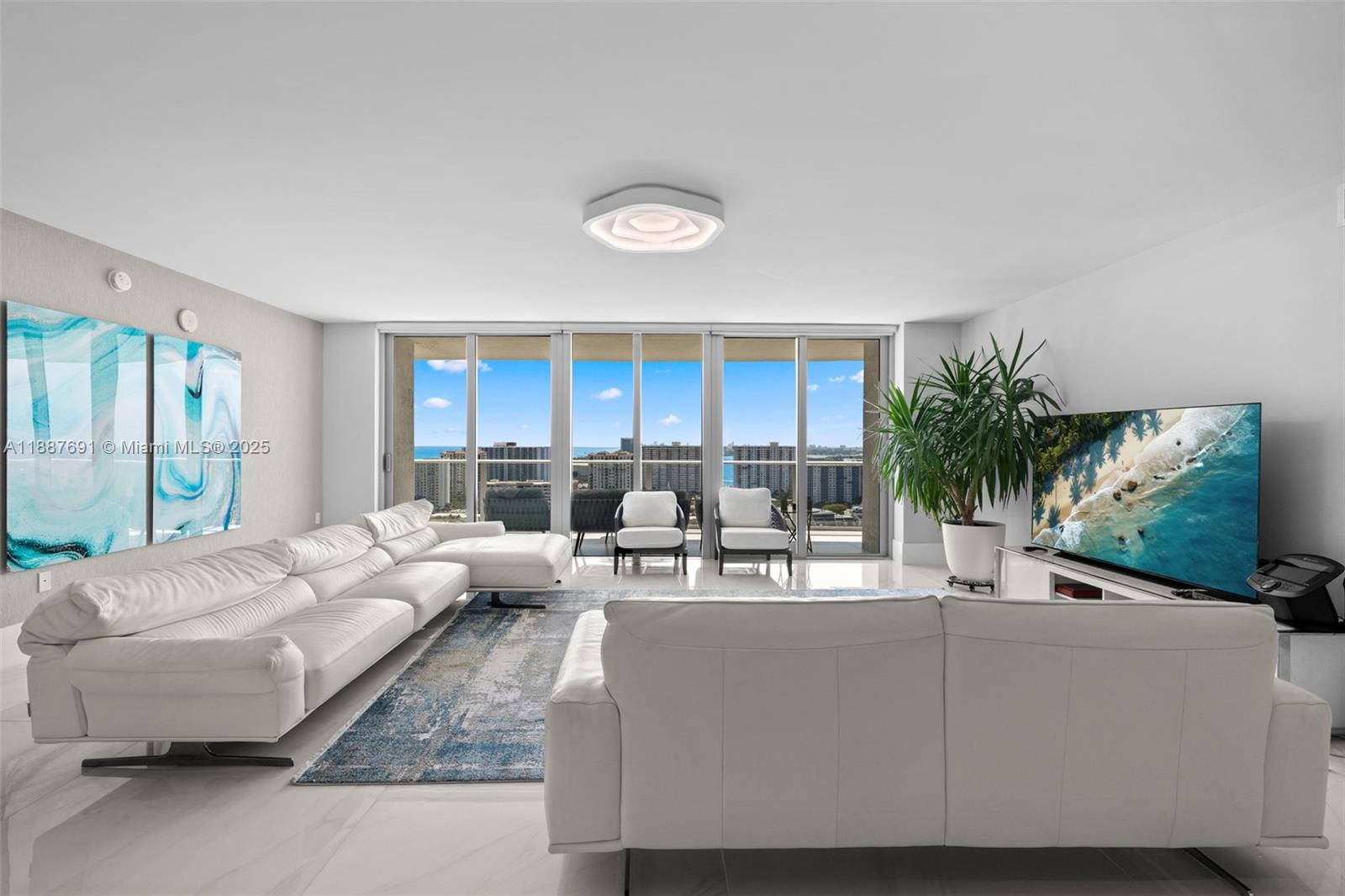 This apartment has it ALL: amazing views of the sunrise and the sunset, an ocean and a canal view. The huge balcony allows for experiencing Florida outdoor living in full, in a quiet and relaxing ambiance, which is very rare in the often loud Sunny Isles. The open-concept layout provides a lot of light and air to the apartment. Luxury features include TV mirrors in two bathrooms, top-of-the-line appliances (Sub-Zero and Miele), and tons of storage space. Two parking spaces are conveniently located right in front of the elevator & one valet parking. The building offers a concierge, 24-hour security, valet, biometric access, infinity-edge pool, poolside bar, cabanas, private cinema, game room, spa, fitness center, club room, kids club and very important feature - a great Beach club in SOLE!