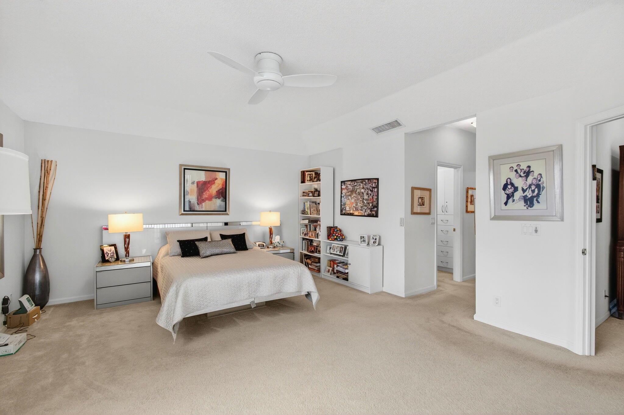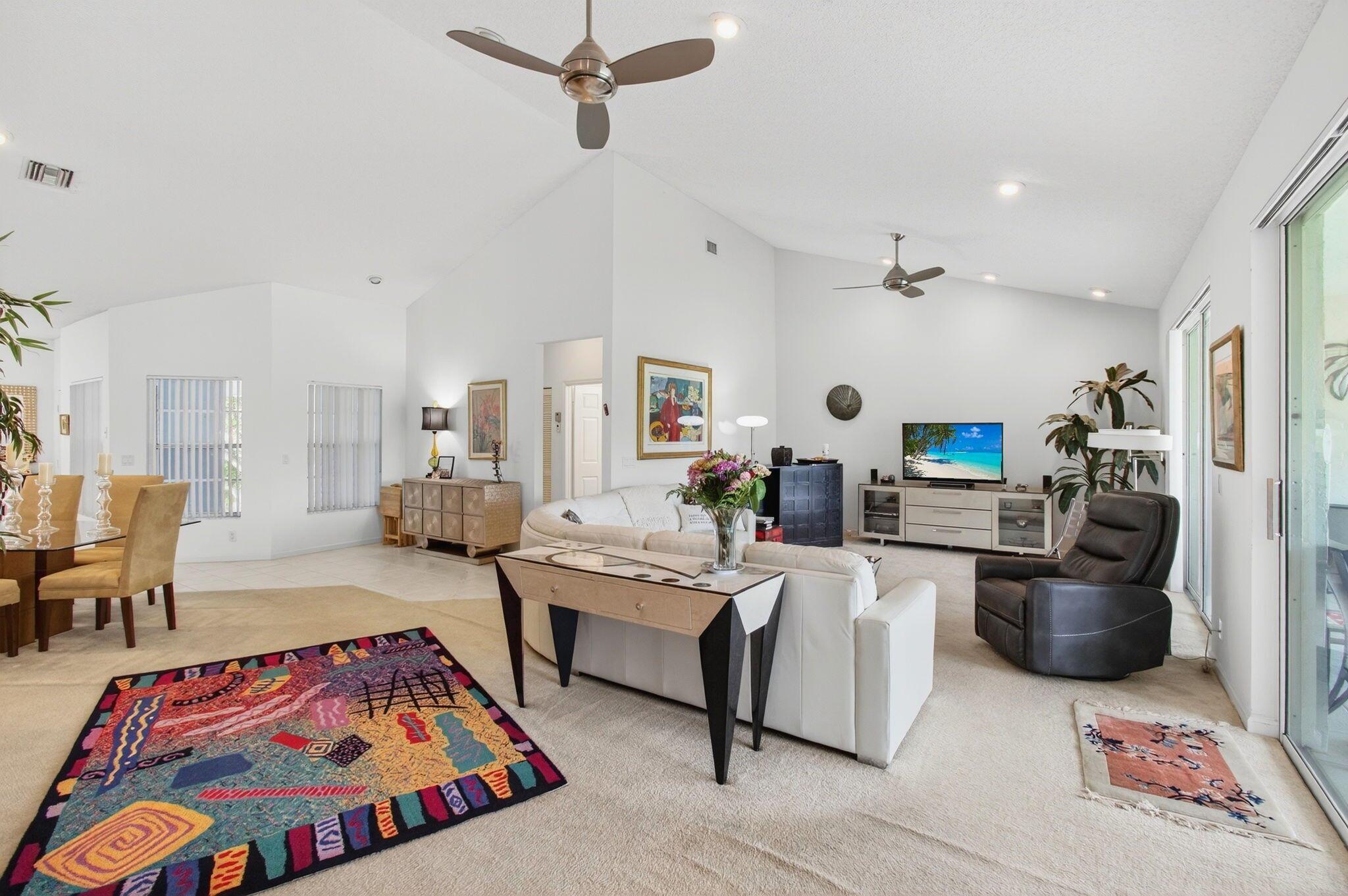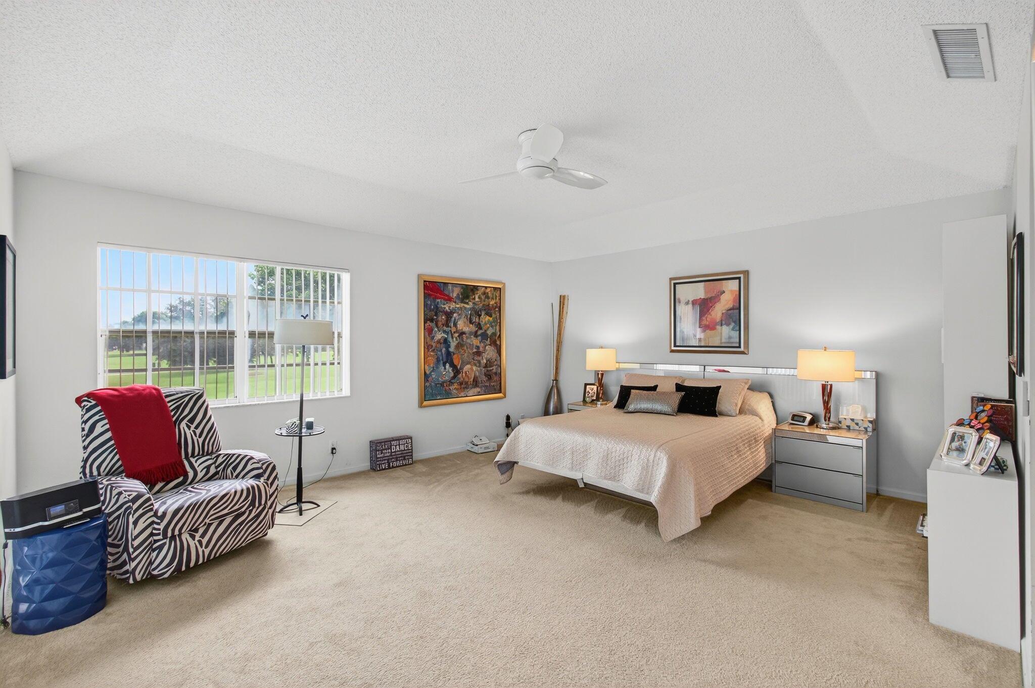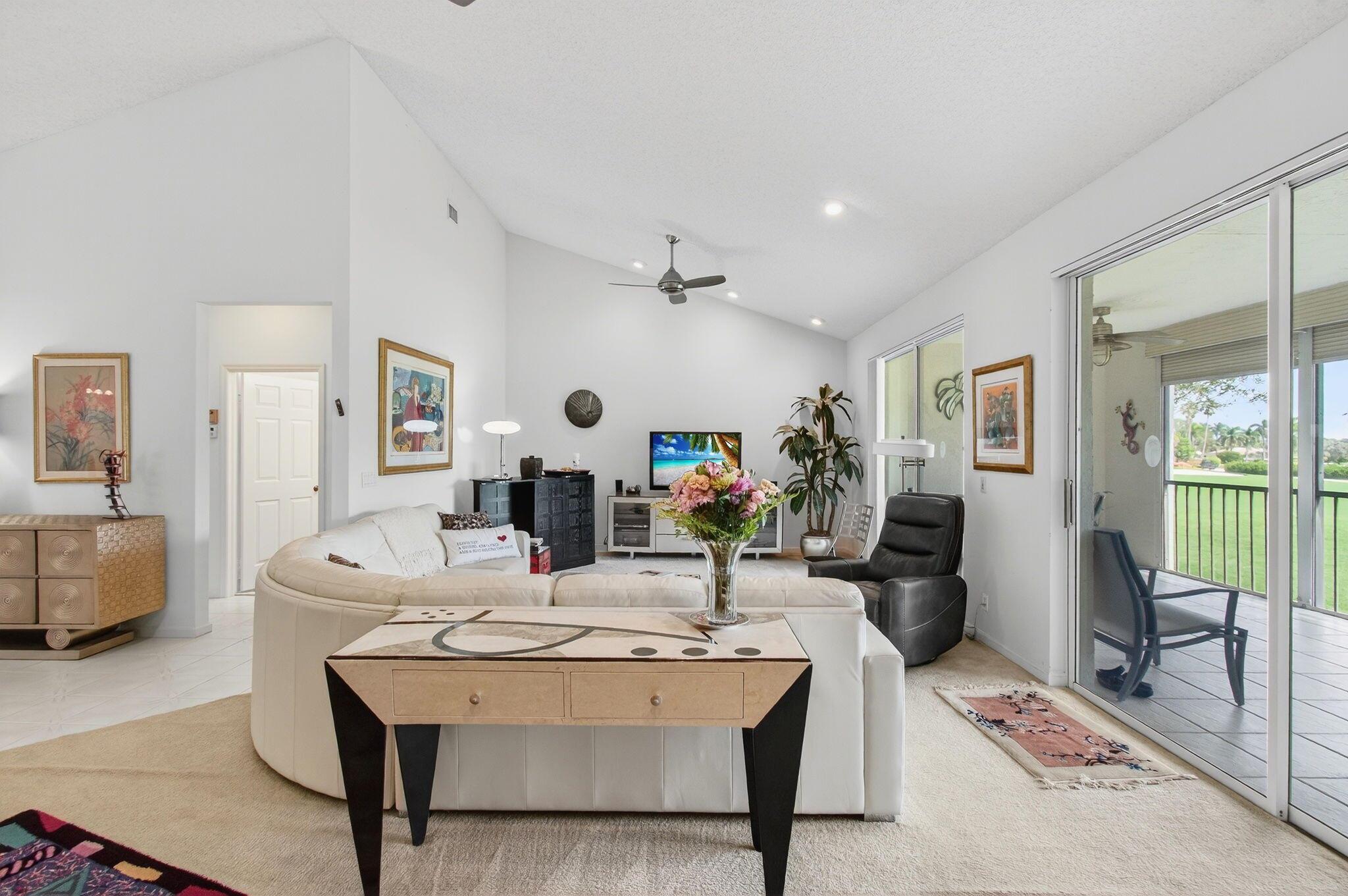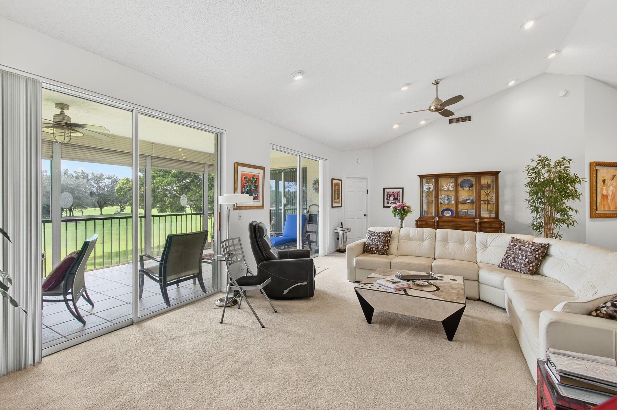 This exceptional Briarwood condo offers a spacious open floor plan with two bedrooms and two full bathrooms, encompassing over 1,900 sq ft under air. The high ceilings create an enhanced sense of luxury, complemented by a private elevator and impressive views overlooking the 18th fairway of the Indian Spring Golf Course. The light-filled interior highlights a modern kitchen equipped with quartz countertops and contemporary cabinetry. A large screened-in patio seamlessly extends the living area outdoors. The master bedroom is generously proportioned and includes a custom-designed walk-in closet for optimal storage. Small pets are permitted. A short walk to the community pool.or Club Membership in the Indian Spring CC is optional.