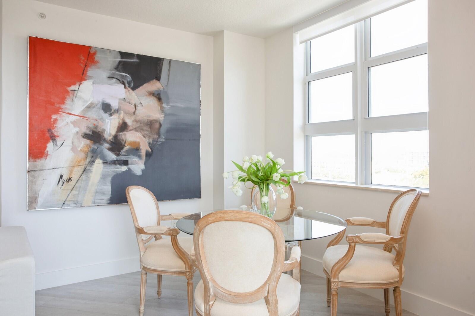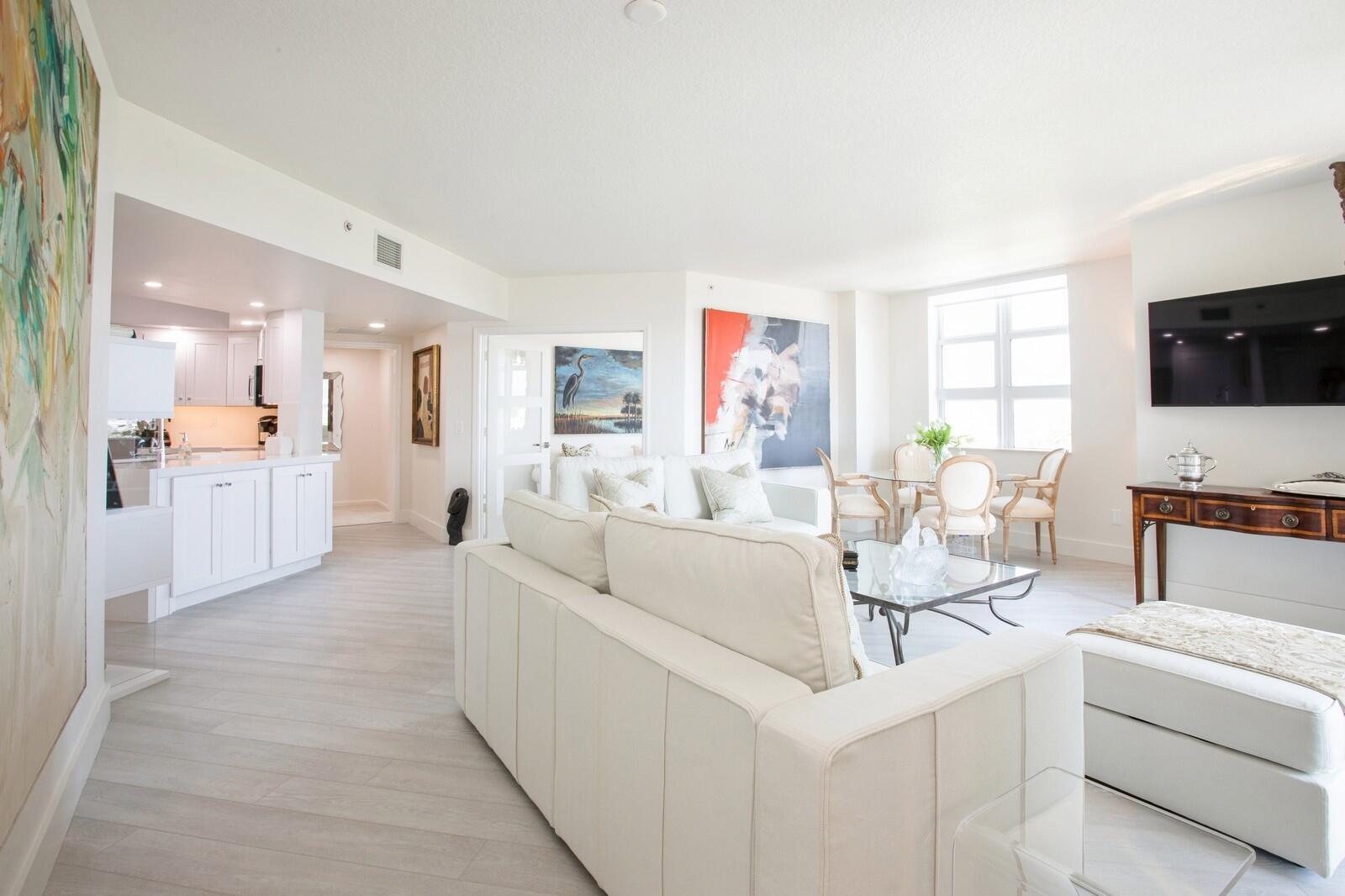 Exquisitely renovated luxury corner residence in the prestigious Metropolitan, ideally located in the heart of CityPlace, downtown West Palm Beach. Pristine and move-ready-just steps to world class shopping and fine dining. Elegant floor plan: 3 bedrooms, 2.5 baths, 1,608 sq feet on the 6th floor. Brand new wide-plank luxury flooring. Sleek modern kitchen with quartz waterfall island and top-tier appliances. Spa-style baths with matching quartz vanities and double sinks. Designer lighting and new A/C. Two premium garage spaces next to elevators. Expansive wraparound balcony with breathtaking skyline views. Amenities: 24/7 concierge, newly renovated rooftop pool, Zen garden, fitness center, club room.
