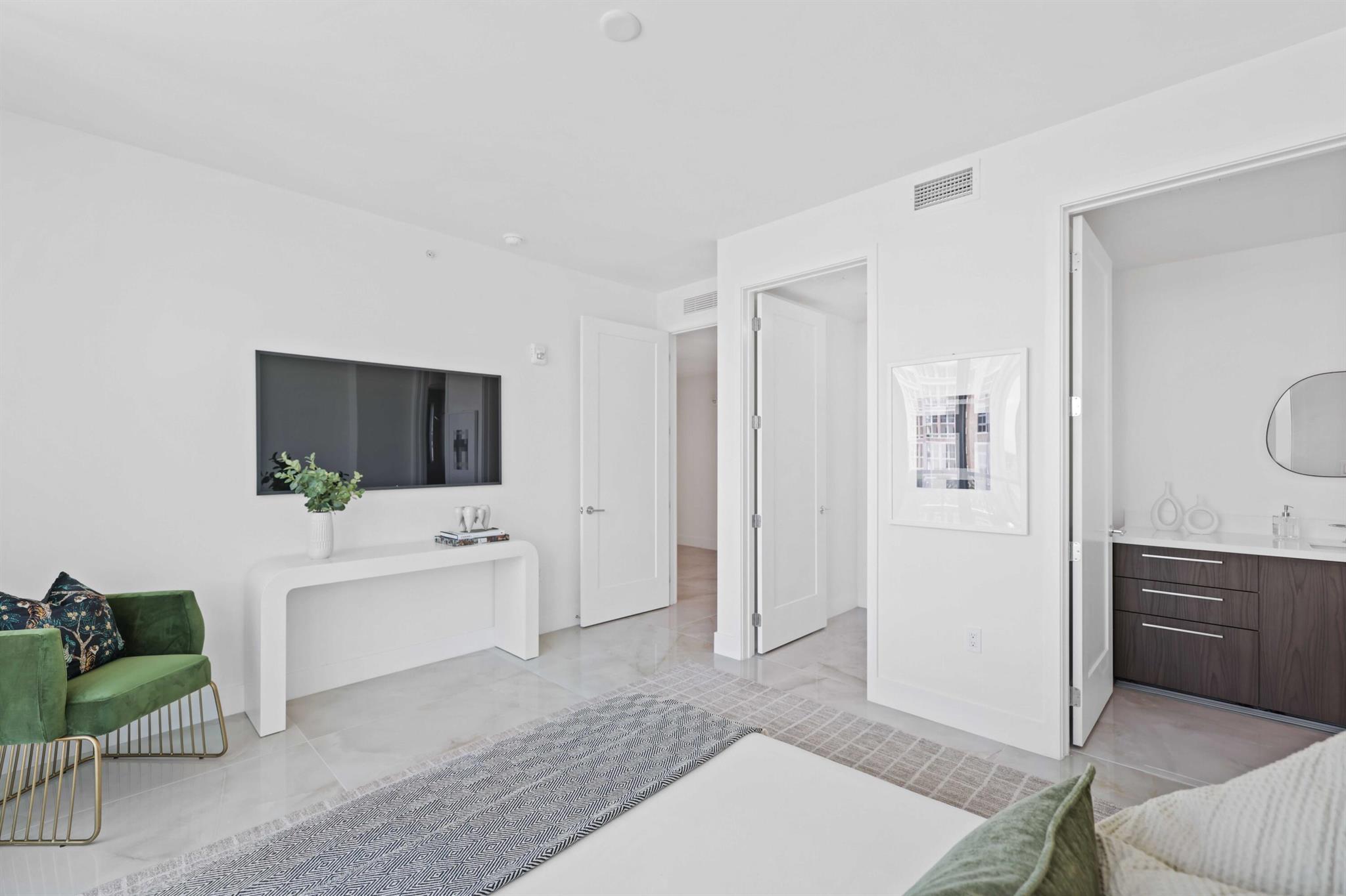 Welcome to your home in the sky! Royal Palm Residences represents the ultimate in luxurious living the heart of East Boca Raton. Unparalleled elegance and modern comforts can be found in this expansive customized corner residence featuring an open floor plan with 4 ensuite bedrooms, half bath and laundry room. The elevator opens directly into this sophisticated 5th-floor corner unit, offering southern, western, and northern views allowing you to savor the panoramic vistas from every angle. The chef's kitchen features sleek Italian cabinetry, Wolf and Subzero appliances, including a gas cooktop and wine refrigeration. The large island with seating is perfect for casual dining or entertaining guests. The kitchen is beautifully finished with elegant quartz countertops and a matching