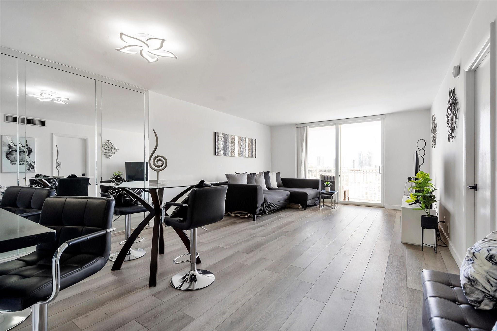 *All assessments paid!* Breathtaking views surround this penthouse condo, showcasing the ocean, bay, and city skyline. Watch boats glide by and enjoy sparkling city lights at night. This 1-bedroom, 2-bath residence includes a versatile den, generous living room, large bedroom, ample closet space, and impact windows. Offered turnkey and move-in ready. The well-kept building offers a heated pool, fitness room, secured lobby entrance, and garage parking. With no age restrictions, it suits all lifestyles. Ideally located, you are just steps from shopping, dining, and the beach, with easy access to airports, seaports, and the best of South Florida living.
