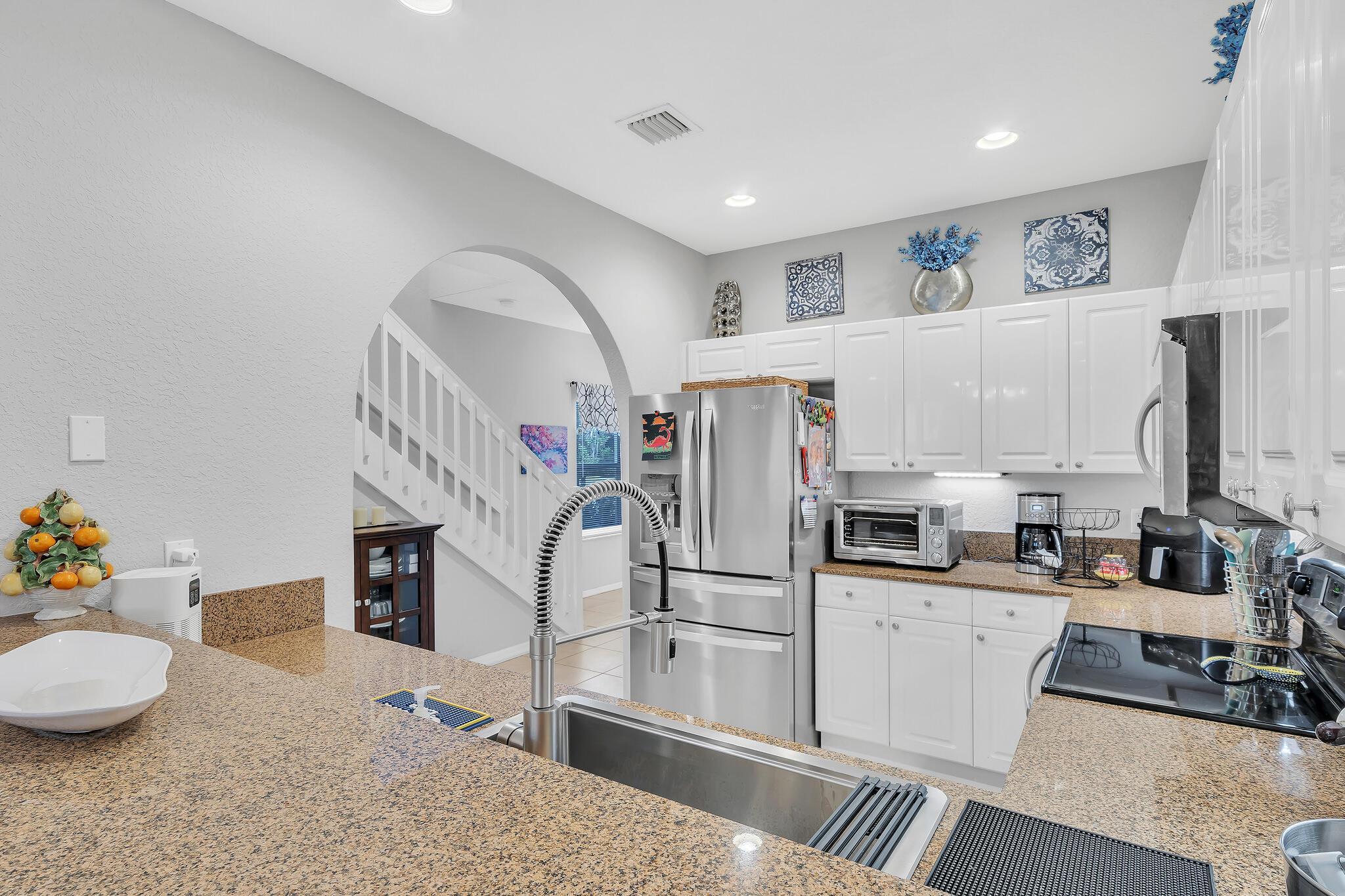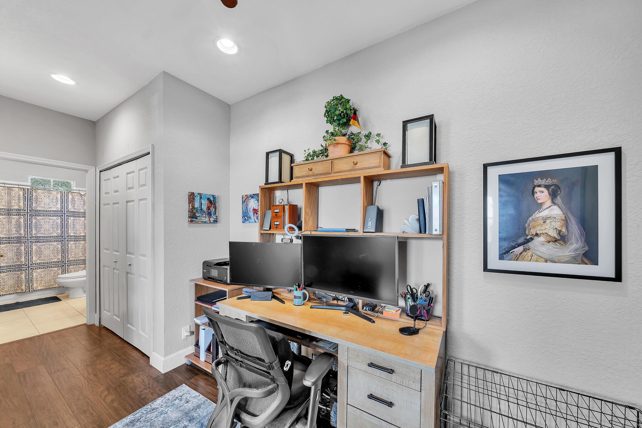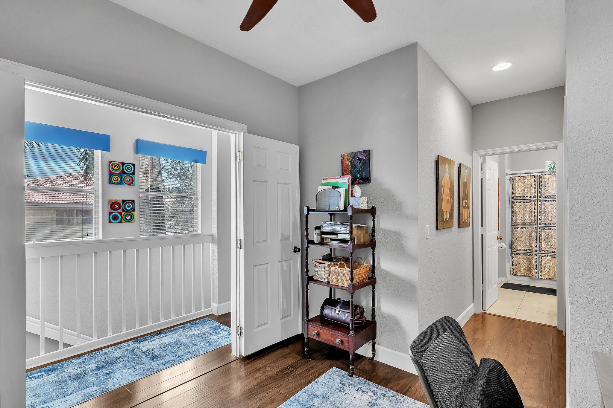 Welcome to this spacious, updated with granite countertops and versatile 2-bedroom, 2.5-bath townhouse with a den/office, offering comfort, functionality, and a prime Boynton Beach location. Designed with an open floor plan, this residence provides bright living and dining areas, a well-appointed kitchen with ample cabinetry, and a flexible den/office space--perfect for working from home, a guest room, or a hobby area. Both bedrooms are generously sized primary is with private en-suite bathroom, Guest and Den share a Jack and Jill bathroom while the half bath on the main floor adds convenience for guests. Residents of this community enjoy beautifully landscaped grounds, and a low-maintenance lifestyle. Perfectly situated along Military Trail