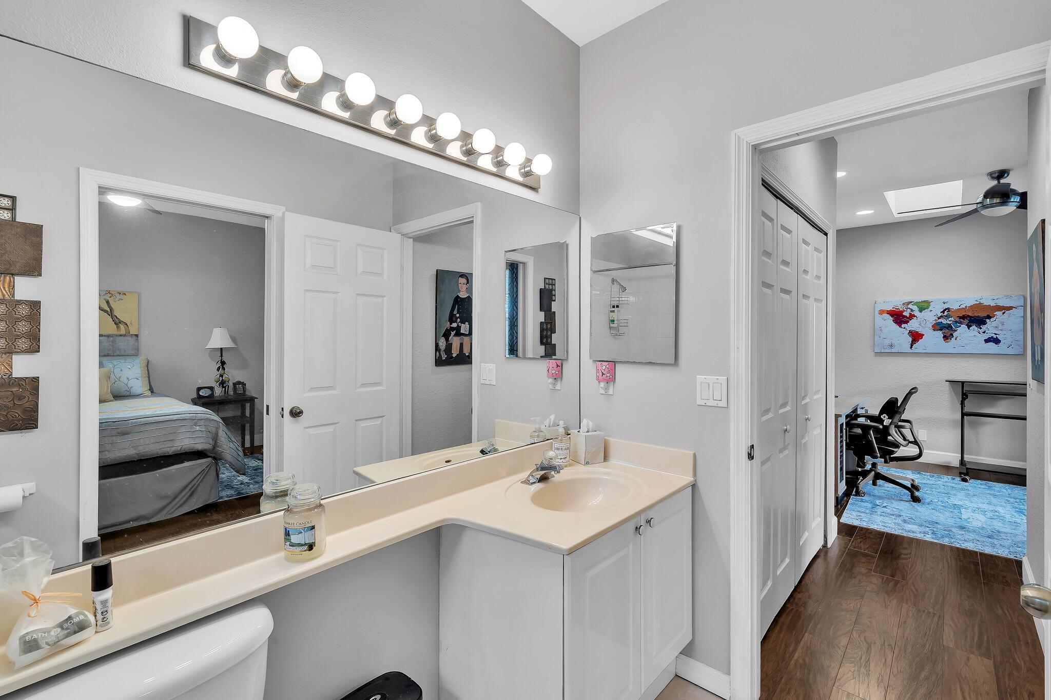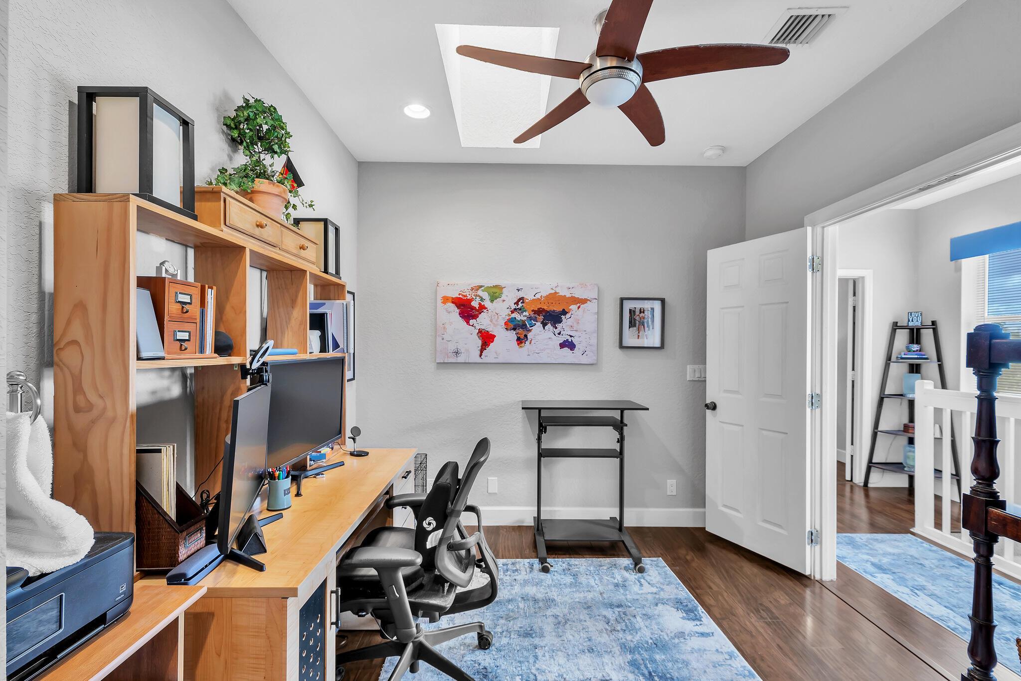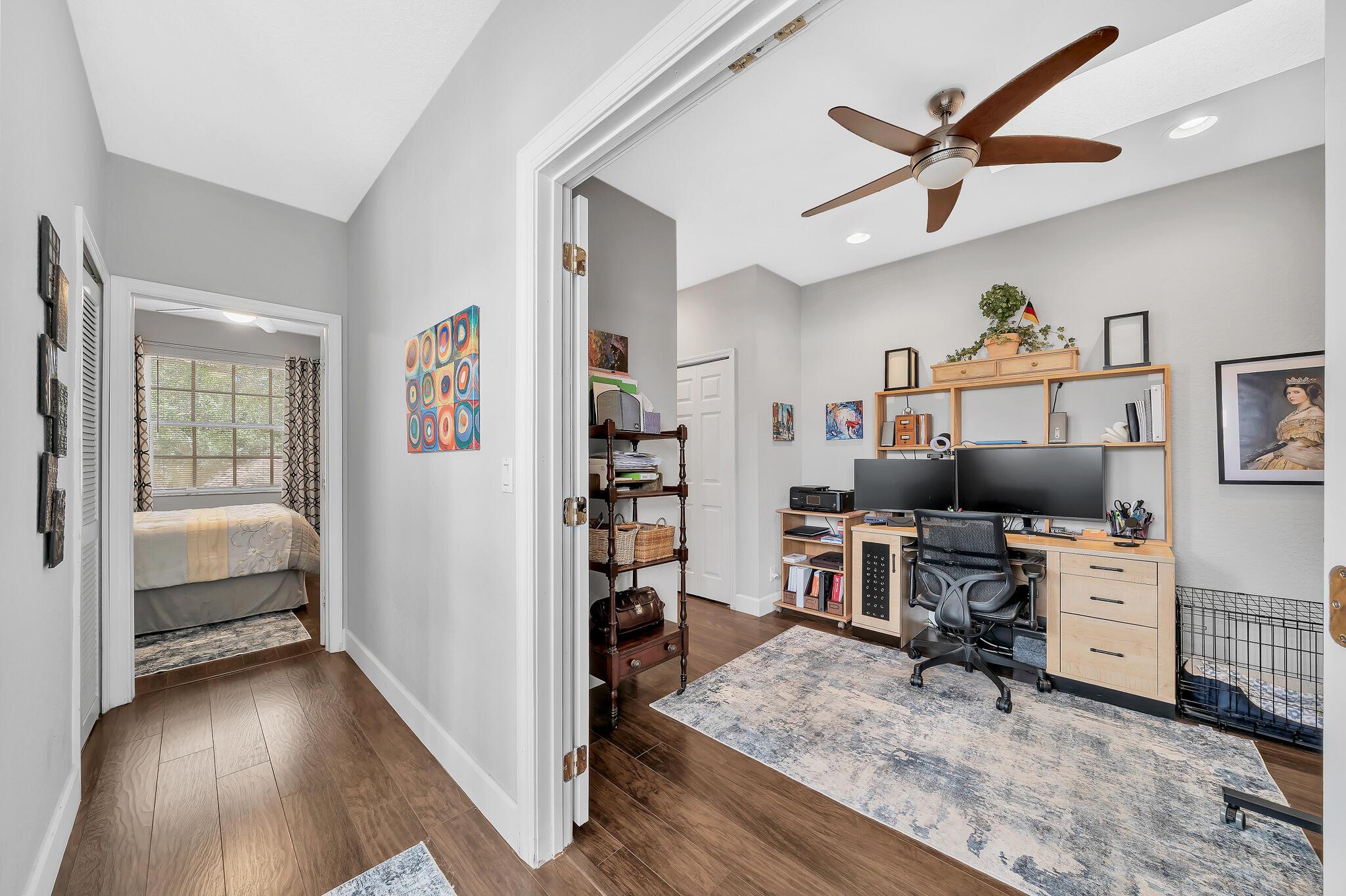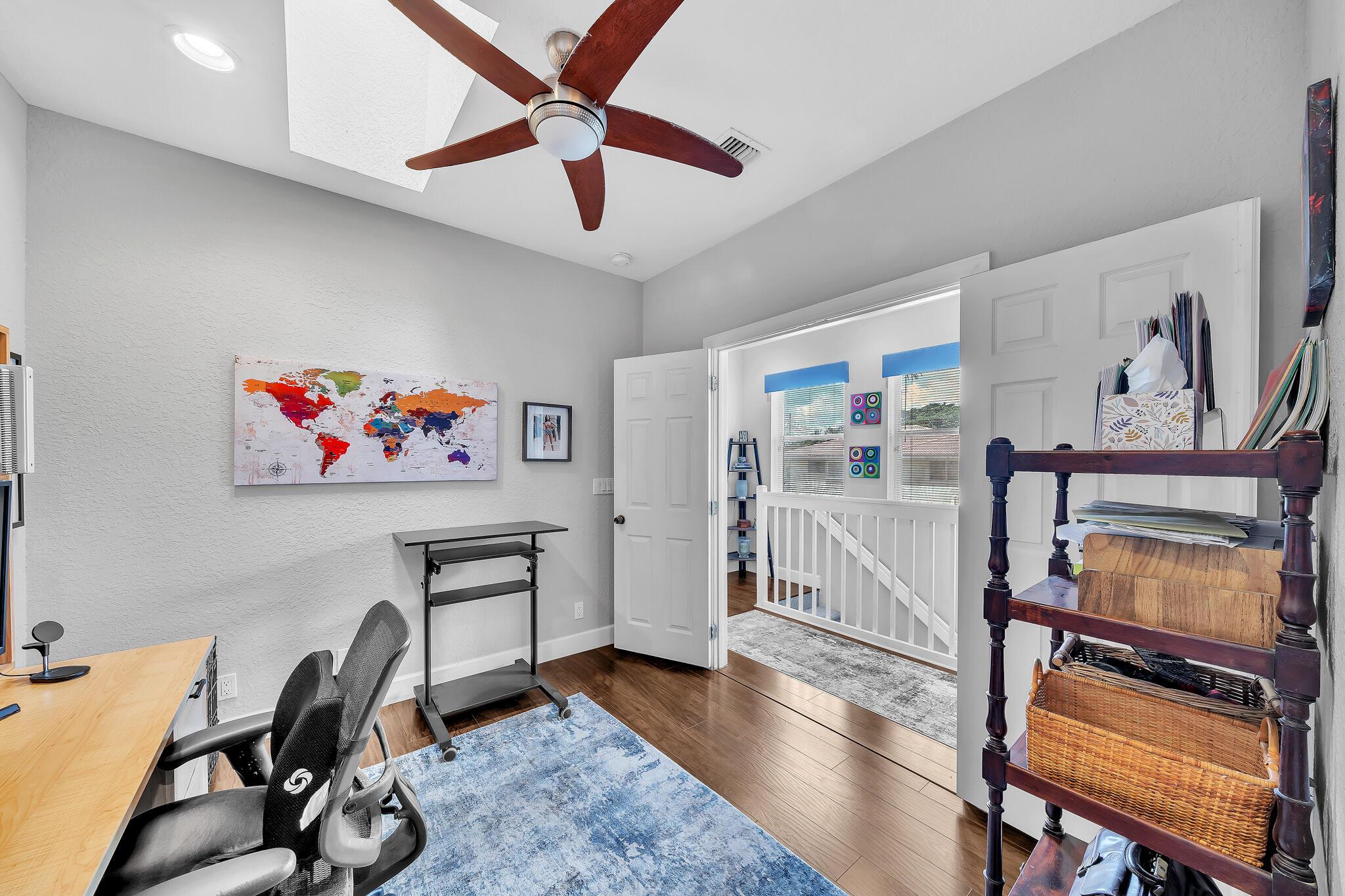 Welcome to this spacious, updated with granite countertops and versatile 2-bedroom, 2.5-bath townhouse with a den/office, offering comfort, functionality, and a prime Boynton Beach location. Designed with an open floor plan, this residence provides bright living and dining areas, a well-appointed kitchen with ample cabinetry, and a flexible den/office space--perfect for working from home, a guest room, or a hobby area. Both bedrooms are generously sized primary is with private en-suite bathroom, Guest and Den share a Jack and Jill bathroom while the half bath on the main floor adds convenience for guests. Residents of this community enjoy beautifully landscaped grounds, and a low-maintenance lifestyle. Perfectly situated along Military Trail
