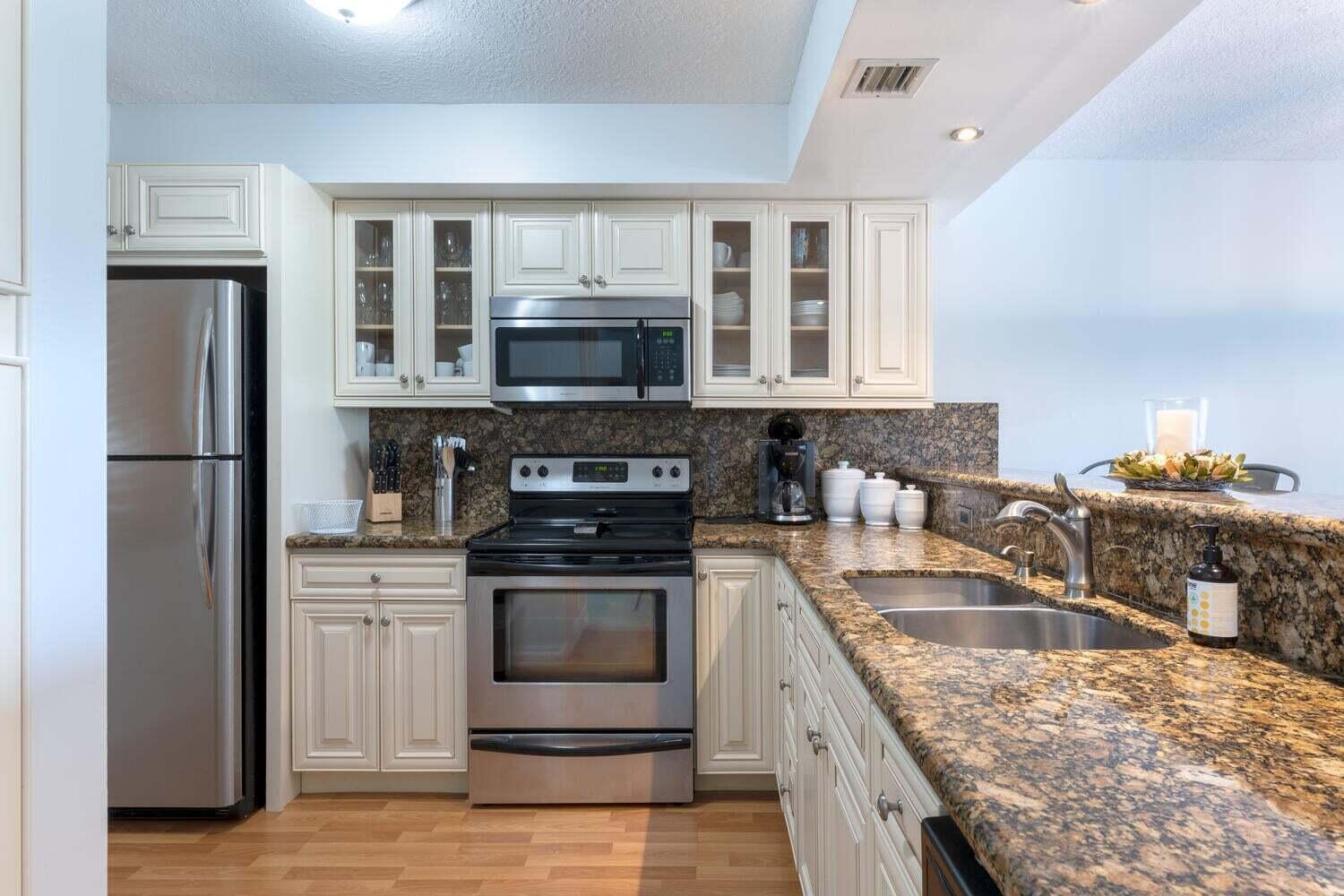 Beautiful fully furnished 2 bedroom 2 bath unit with open kitchen and beautiful views of Palm trees, lake, golf course from the Balcony. Prestigious gated community, unit has open kitchen with granite counter tops, beautiful cabinets and newer appliances as well as hurricane shutters. Enjoy the beautiful pool and everything the neighborhood has to offer like 24-hr gated security, Personal Laundry room with Washer & Dryer in the apartment. Great Location near Palm Beach Outlets, Downtown West Palm Beach, Airport, & Beaches. Walking distance to Golf Course.