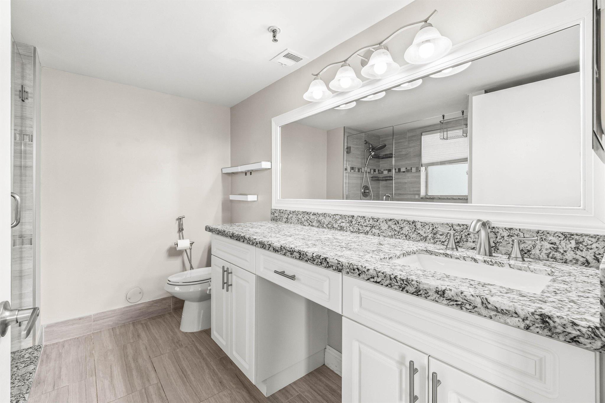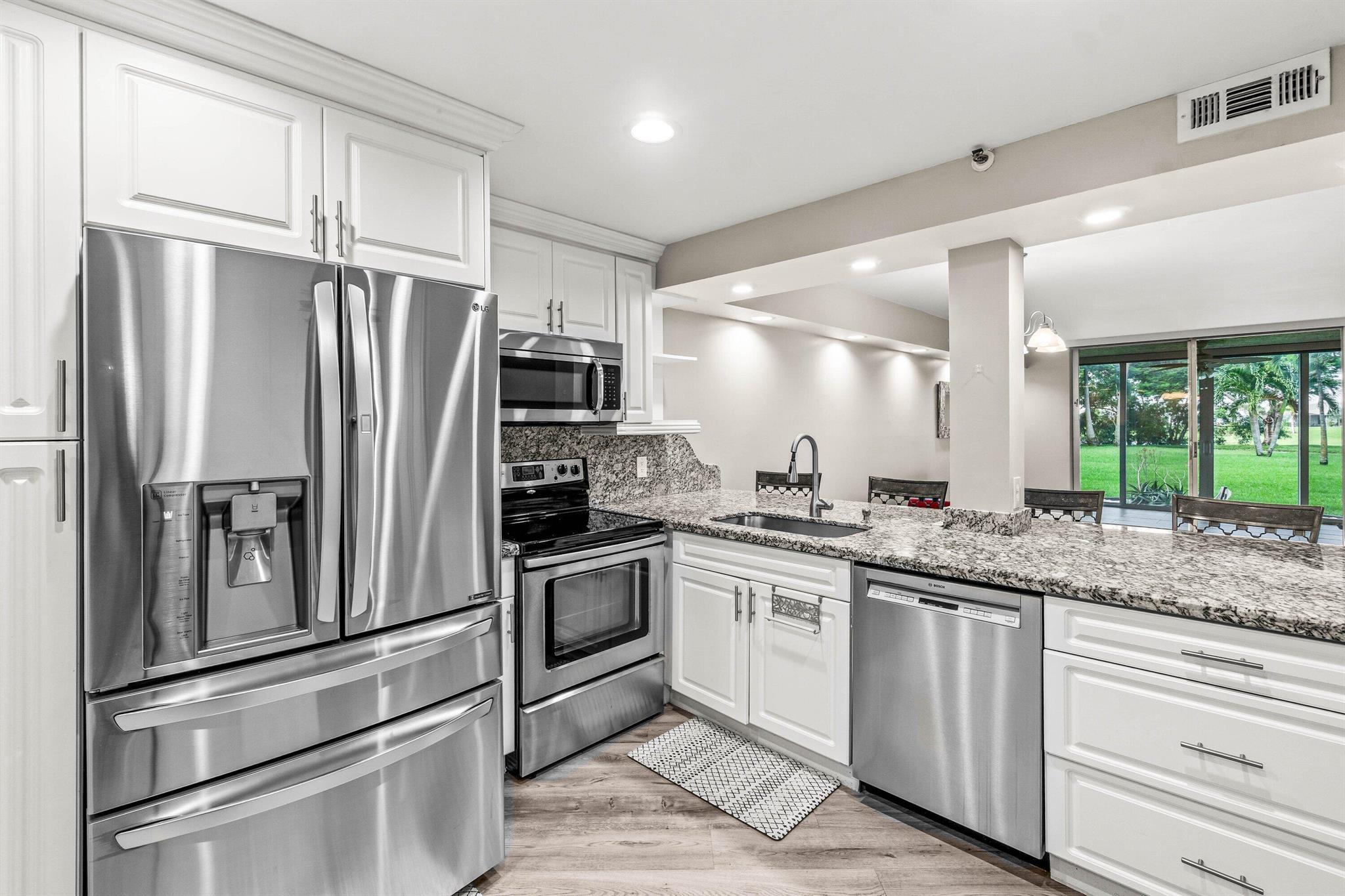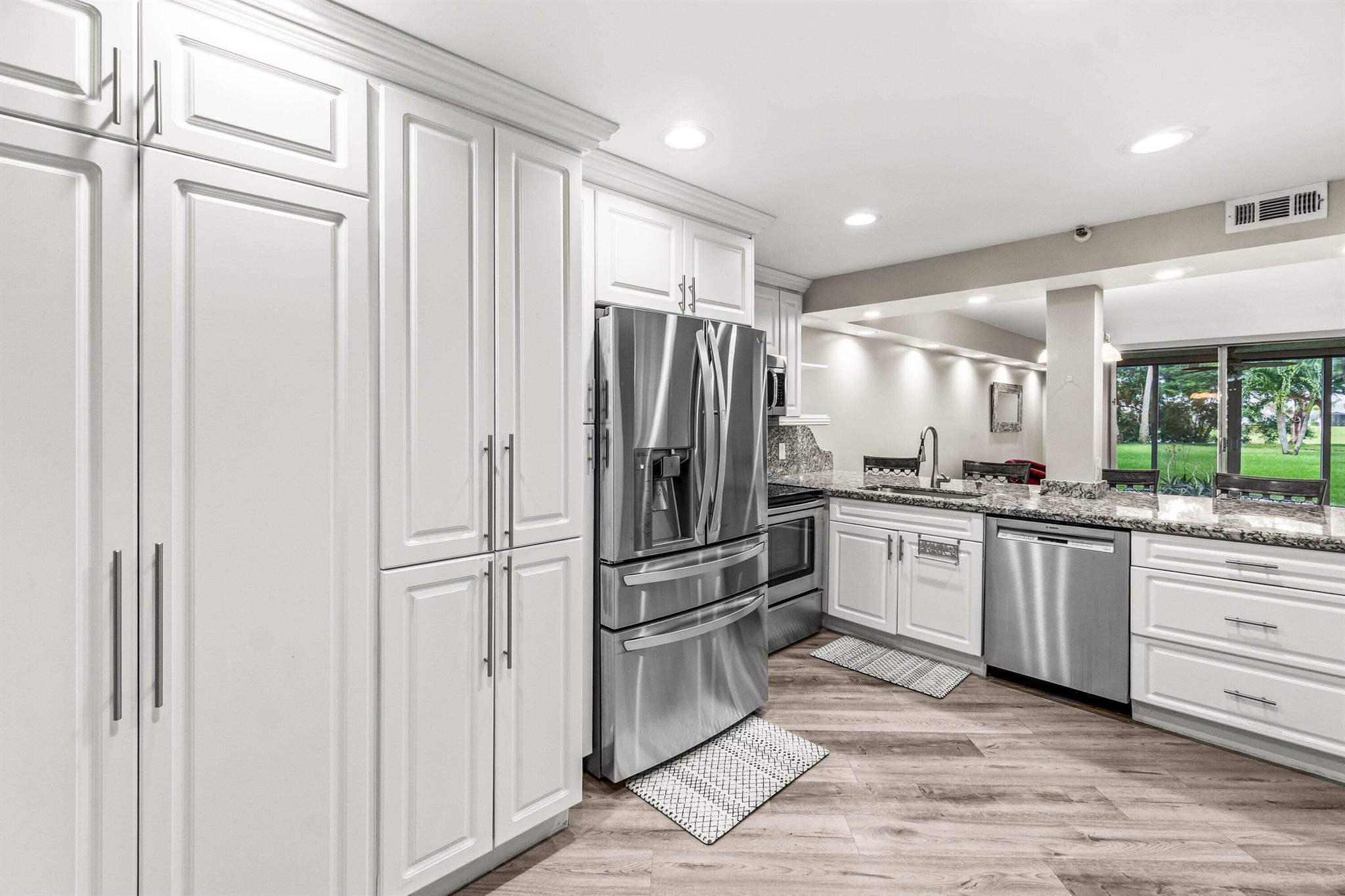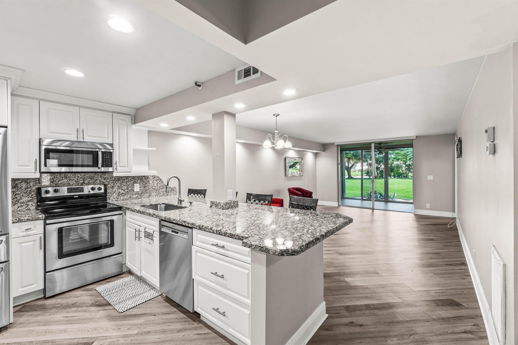 Step into this beautifully renovated and reimagined condo featuring an open kitchen with high-end appliances, stunning countertops and cabinetry, and a spacious pantry with pull-out drawers and built-in lighting. Electronic window treatments add a touch of modern convenience throughout. Every room has been thoughtfully updated with quality craftsmanship and top-of-the-line materials, creating a truly move-in-ready home. As an end unit, you'll enjoy fantastic water views from every window, filling the space with natural light and serenity. Recent upgrades include a 3-year-old A/C system and a new washer and dryer (installed last year). Accordion hurricane shutters on all windows, plus high impact, low heat glass sliding patio doors so you can enjoy added space the patio has to offer