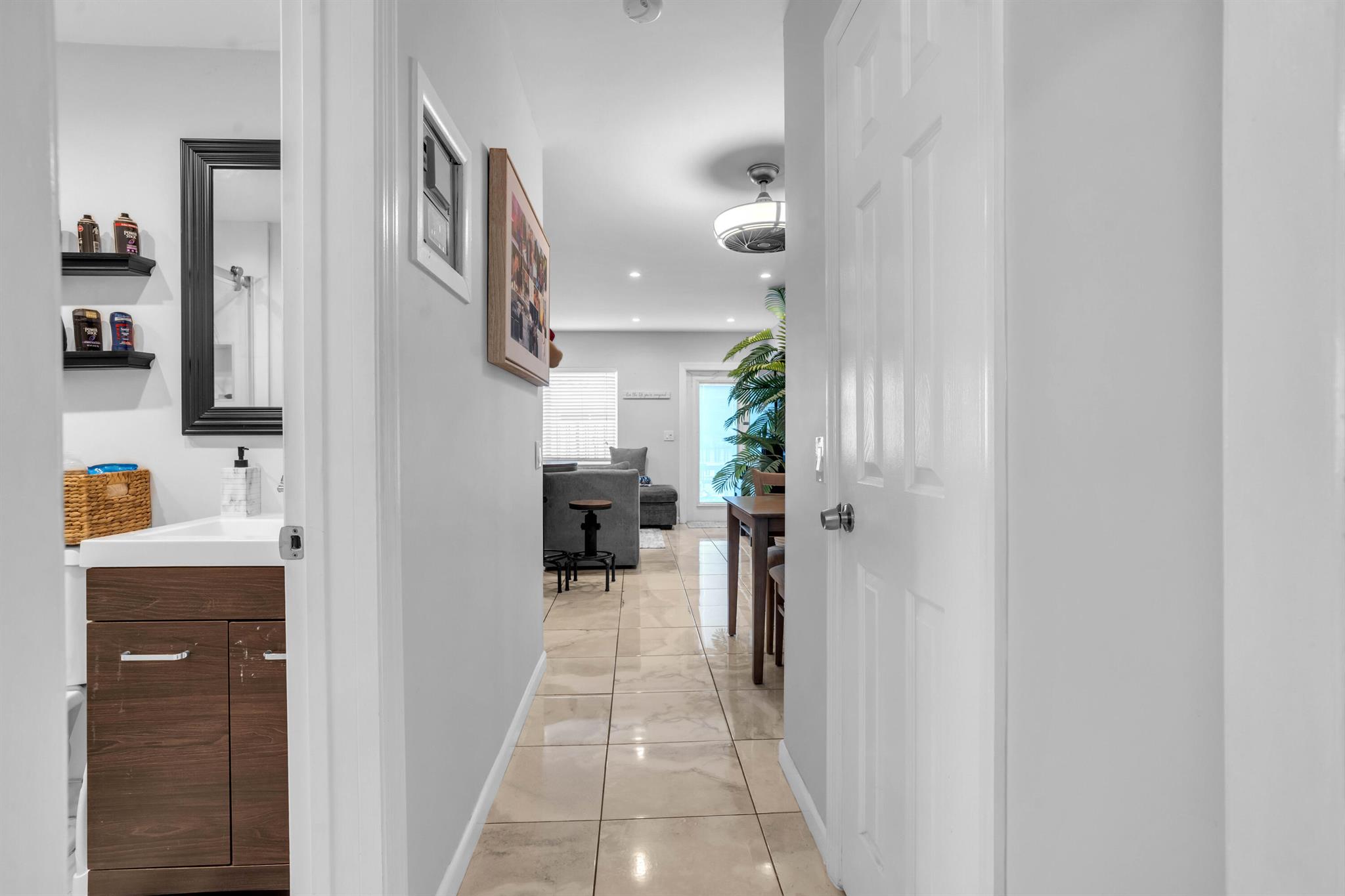 Waterfront remodeled condo with tile flooring throughout offers an open kitchen with a gas range and convenient access to a heated pool, grill area, and on-site laundry facilities just steps away. The unit features an updated bathroom and a bedroom, with one parking space included. Water and gas are covered in HOA, which also handles property maintenance, and the association requires a 725+ credit score with immediate occupancy available. Located on the first floor with easy access and close parking, this home is well-situated for boat dockage based on current availability and is in a convenient location near the beach, restaurants, groceries, shops, and nearby street improvements that add value for any and all investors!