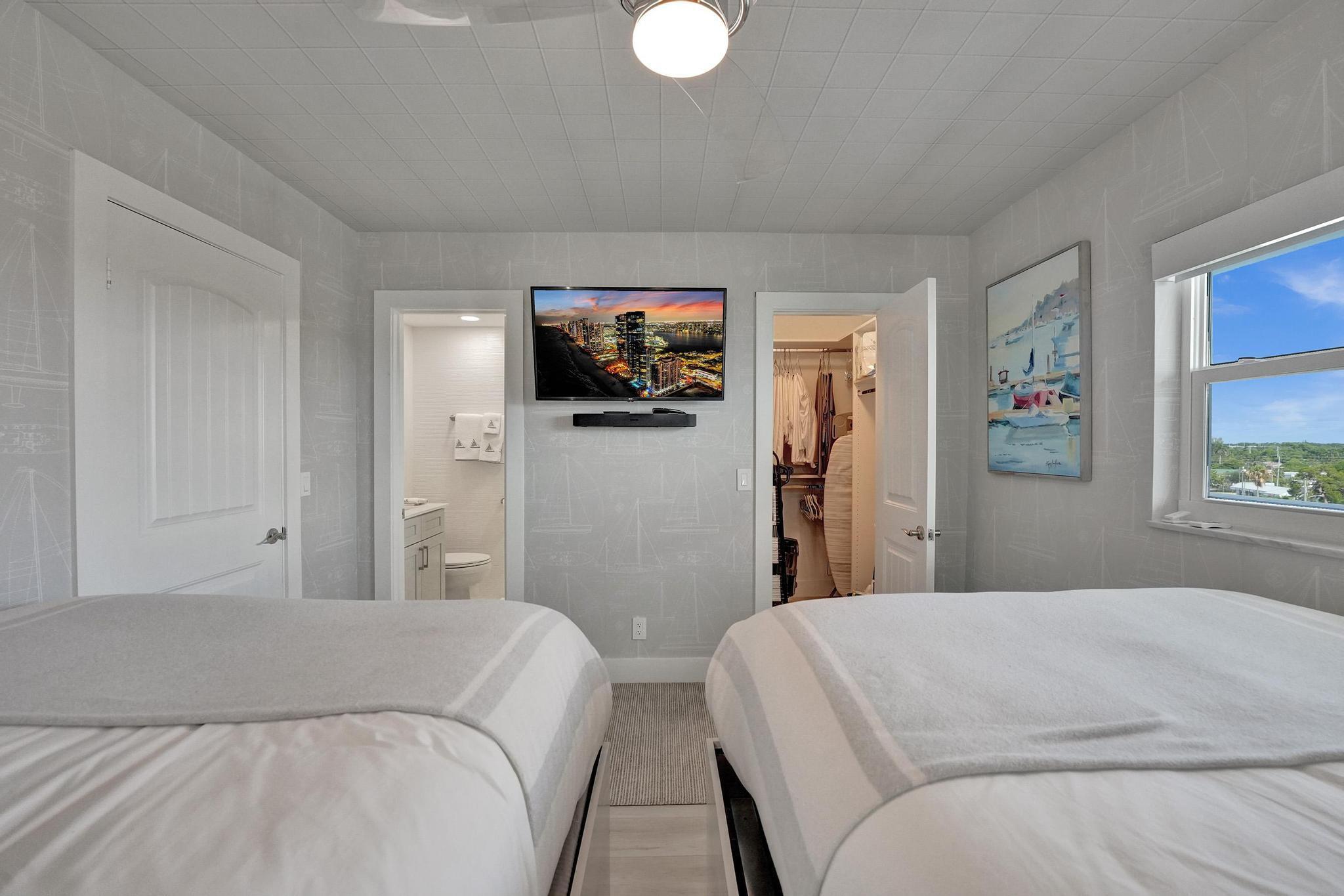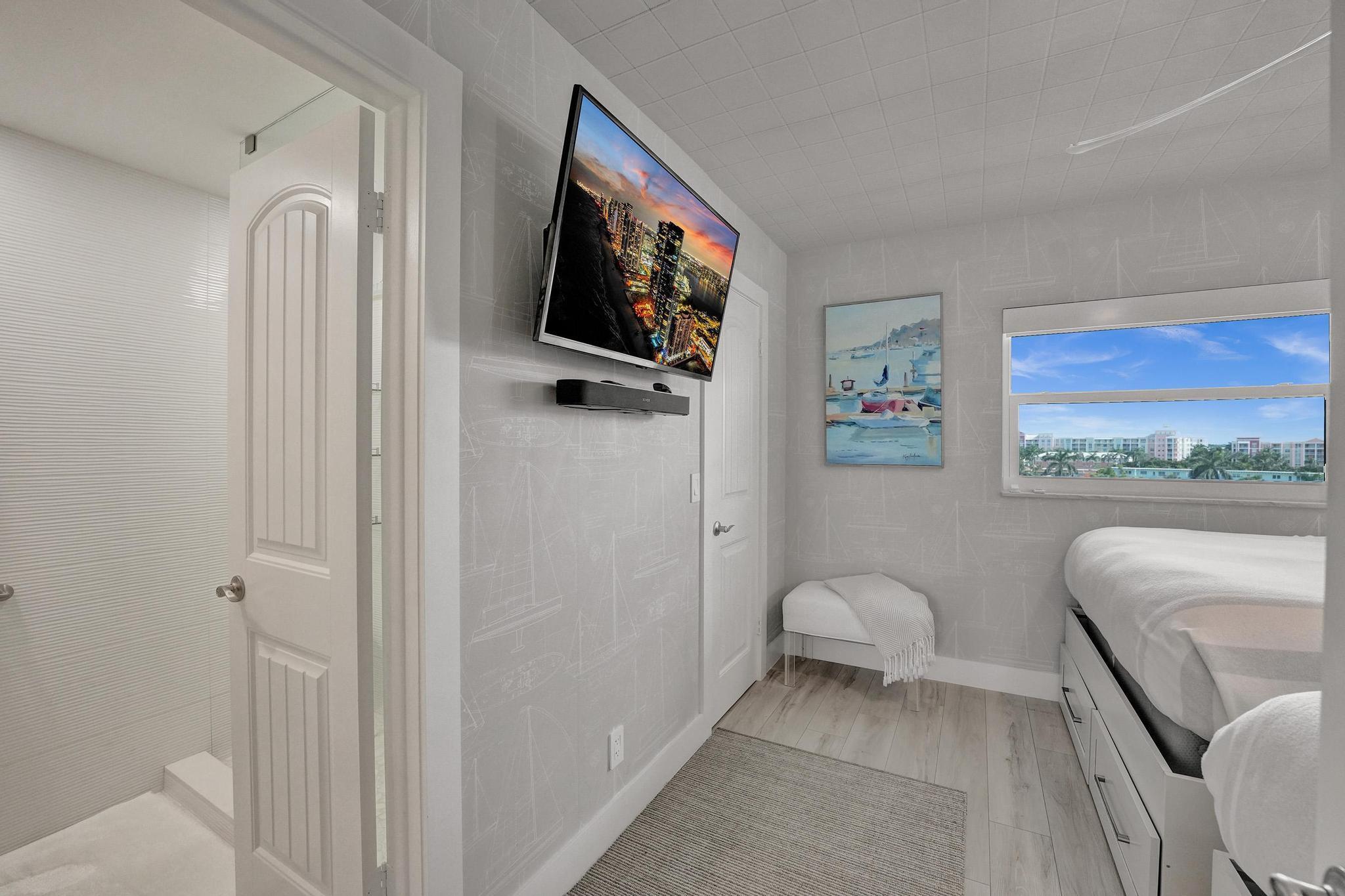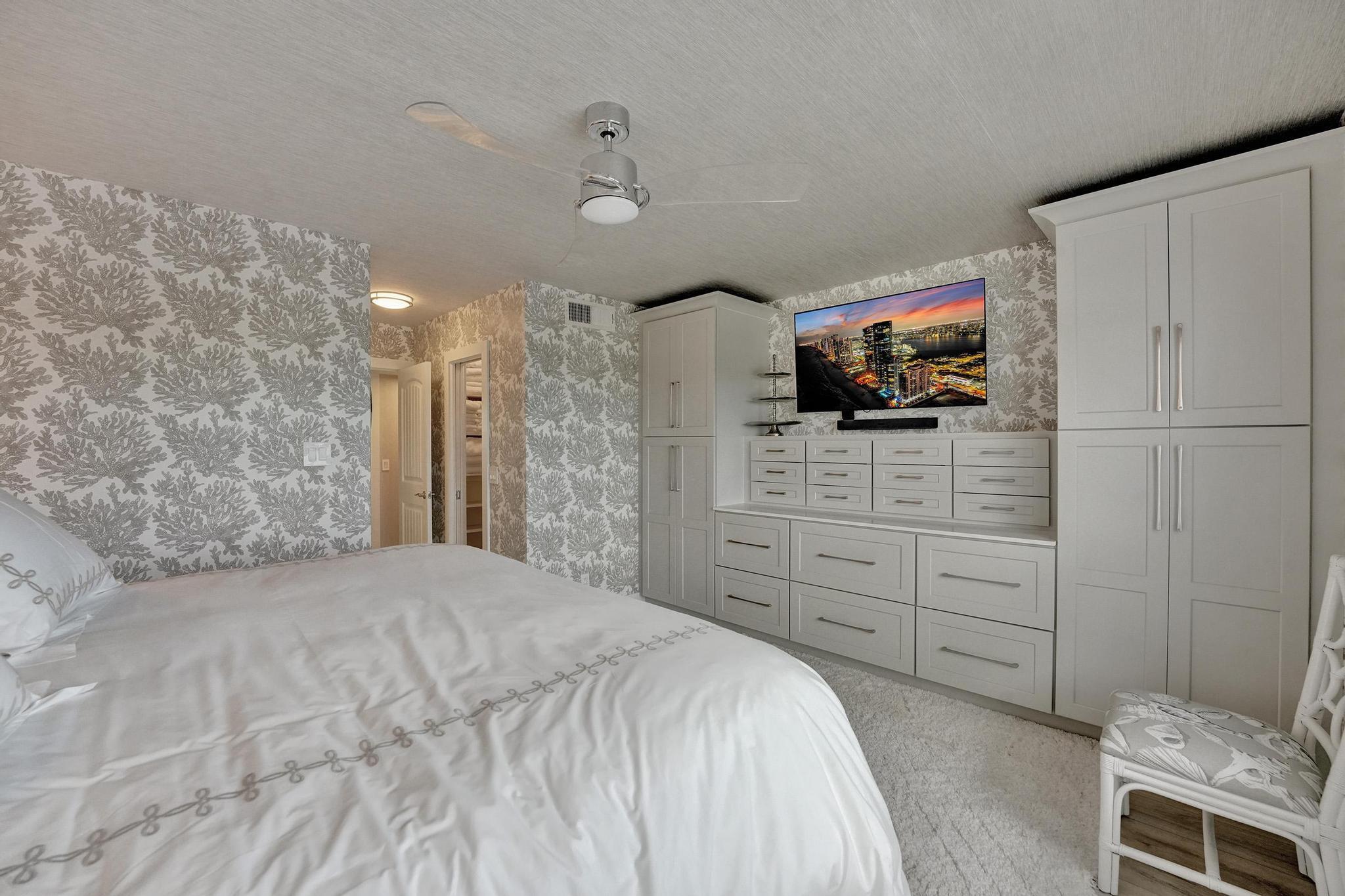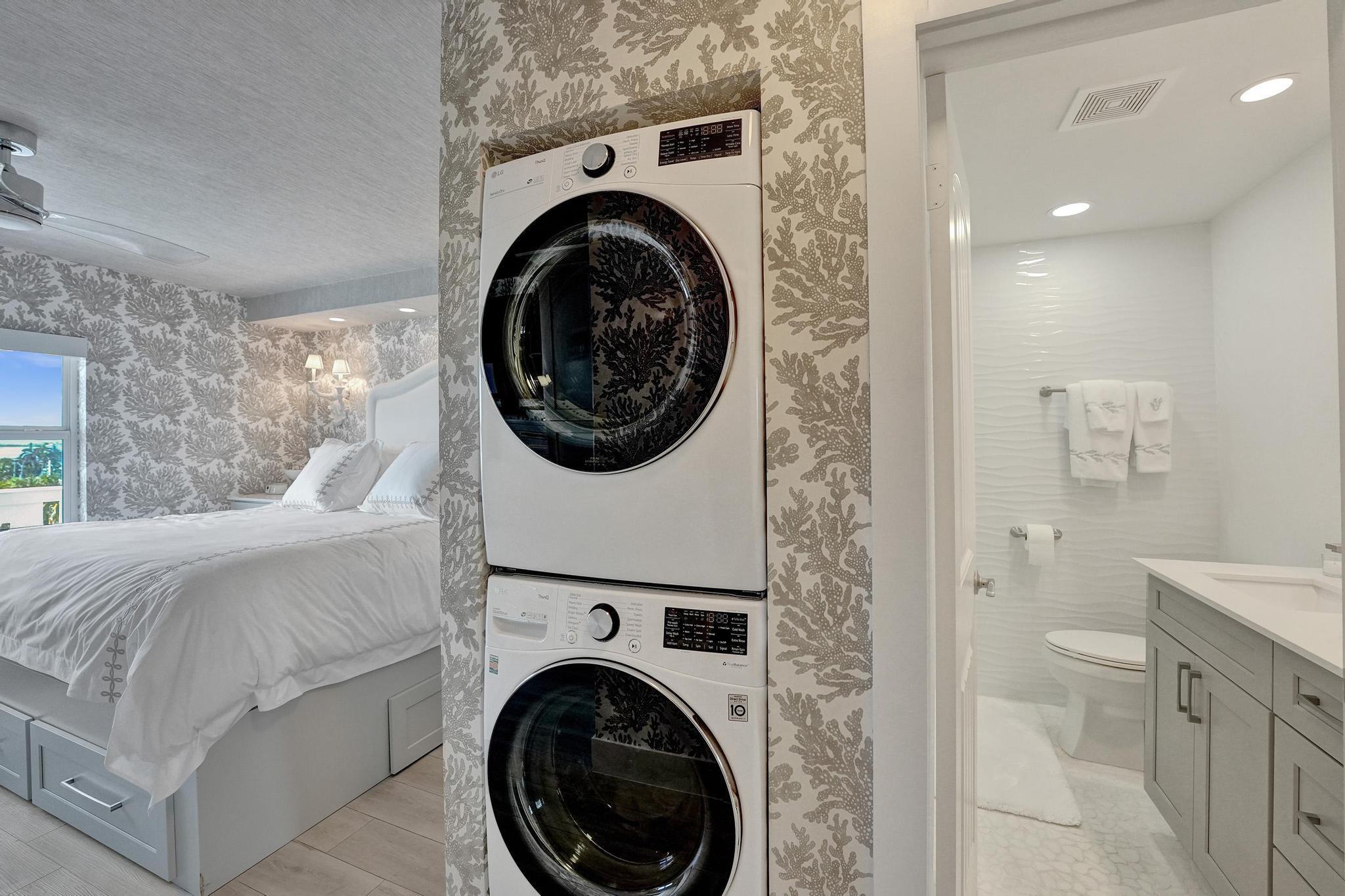 Live the Florida Dream in Style This stunningly renovated 2-bedroom, 2-bathroom condo offers breathtaking panoramic views of the Intracoastal Waterway and the Atlantic Ocean, blending the best of coastal living with modern elegance. Designed by the renowned Palm Beach designer, Jeanne Michelle, every detail of this residence has been meticulously crafted for both style and comfort. Step into a coastal modern oasis, fully furnished and turnkey, ready for immediate enjoyment. The spacious kitchen, perfect for entertaining, features a large island and striking jellyfish pendant lights, while grasscloth wallpaper and charming shell sconces create a welcoming atmosphere. With impact windows throughout and remote-controlled blinds, you'll enjoy both beautiful views and comfort.