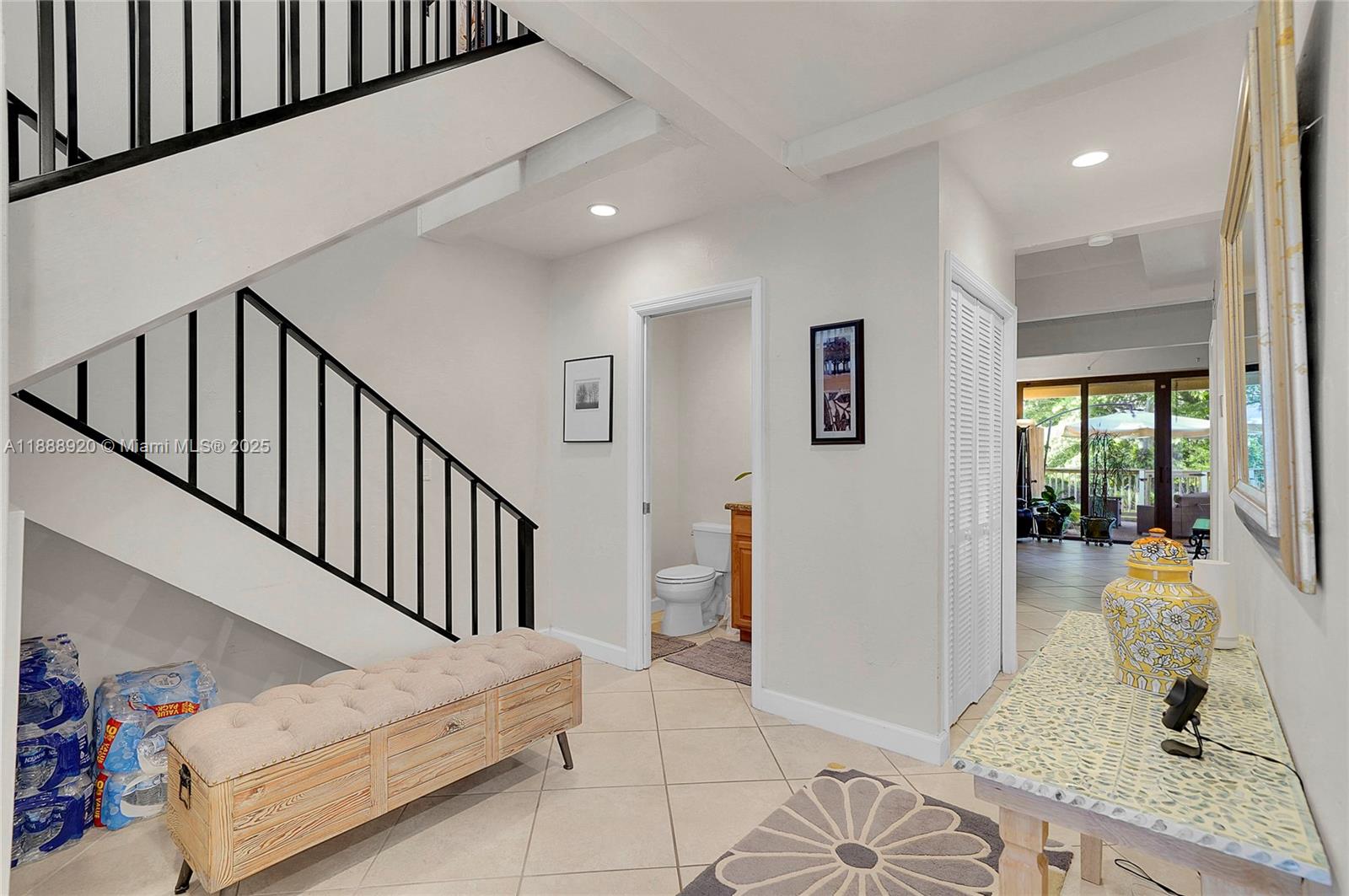 Welcome to this stunning townhouse located in the Jacaranda Country Club. This updated home offers the perfect blend of comfort and style! Featuring a modern kitchen with stainless steel appliances, granite countertops, and wood cabinetry, designed for both beauty and function. Enjoy updated bathrooms, high ceilings, and living areas with tile flooring downstairs and wood upstairs. The impact windows and doors and security camera provides safety and security. Step outside to your covered, fenced patio with tranquil lake and golf course views—perfect for relaxing or entertaining. Ideally located close to shopping, dining, and major highways, this home combines convenience with tranquil living. Don’t miss the chance to own this move-in ready gem—schedule your showing today before it’s gone
