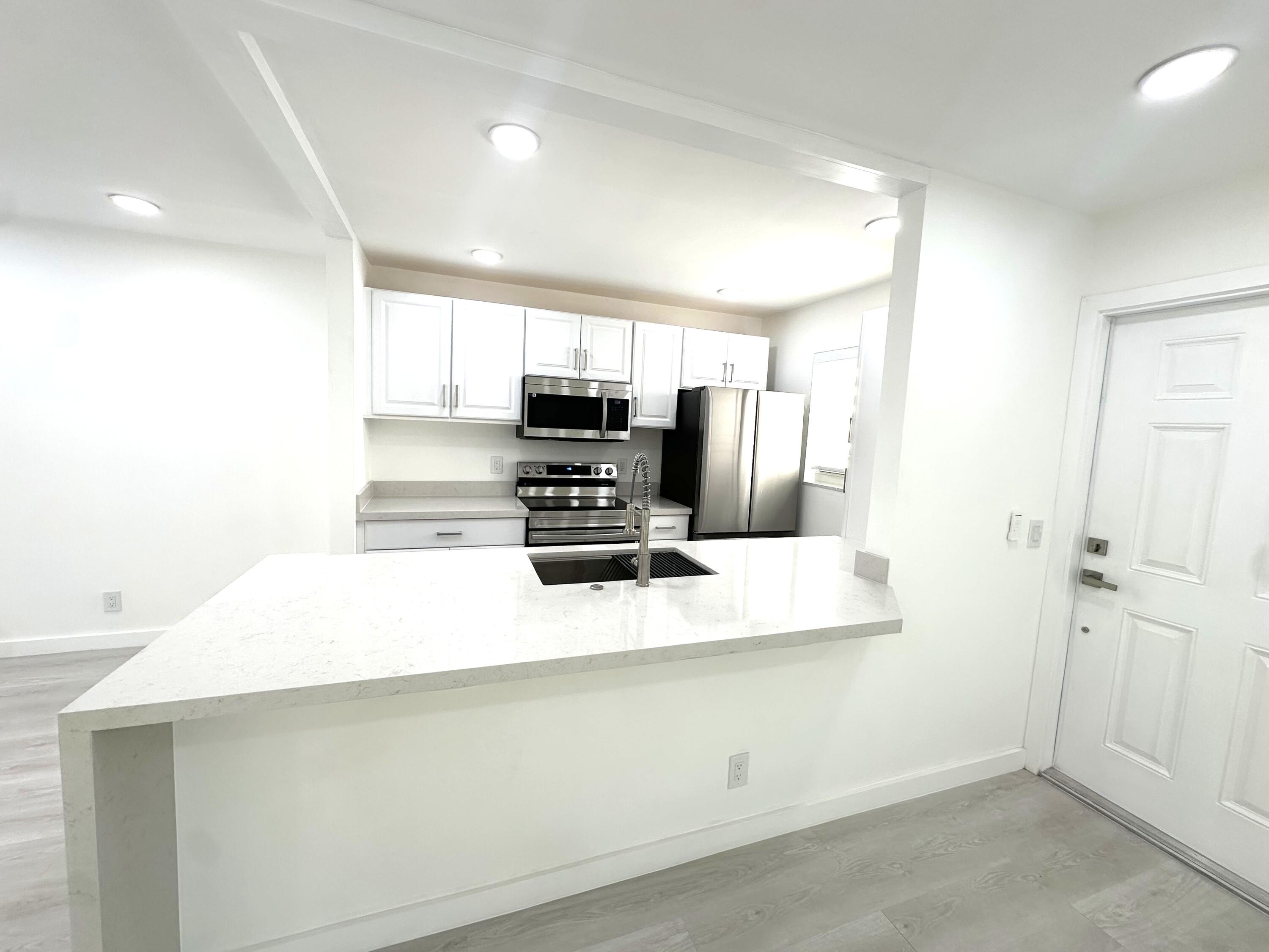 Open and bright, this fully updated 2-bedroom, 2-bath villa/condo offers modern living at its finest. Featuring full impact glass, new flooring throughout, and custom window treatments, every detail has been carefully designed. The state-of-the-art kitchen boasts a stunning waterfall island, premium appliances including a washer/dryer combo, and sleek finishes. Both bathrooms have been beautifully renovated, complementing the home's contemporary style. Additional upgrades include an updated electrical panel, acoustic wood wall paneling designed for a flat-screen TV, and color-changing recessed lighting throughout to set the perfect mood. Ideally located just minutes from vibrant downtown Delray Beach and Atlantic Avenue.
