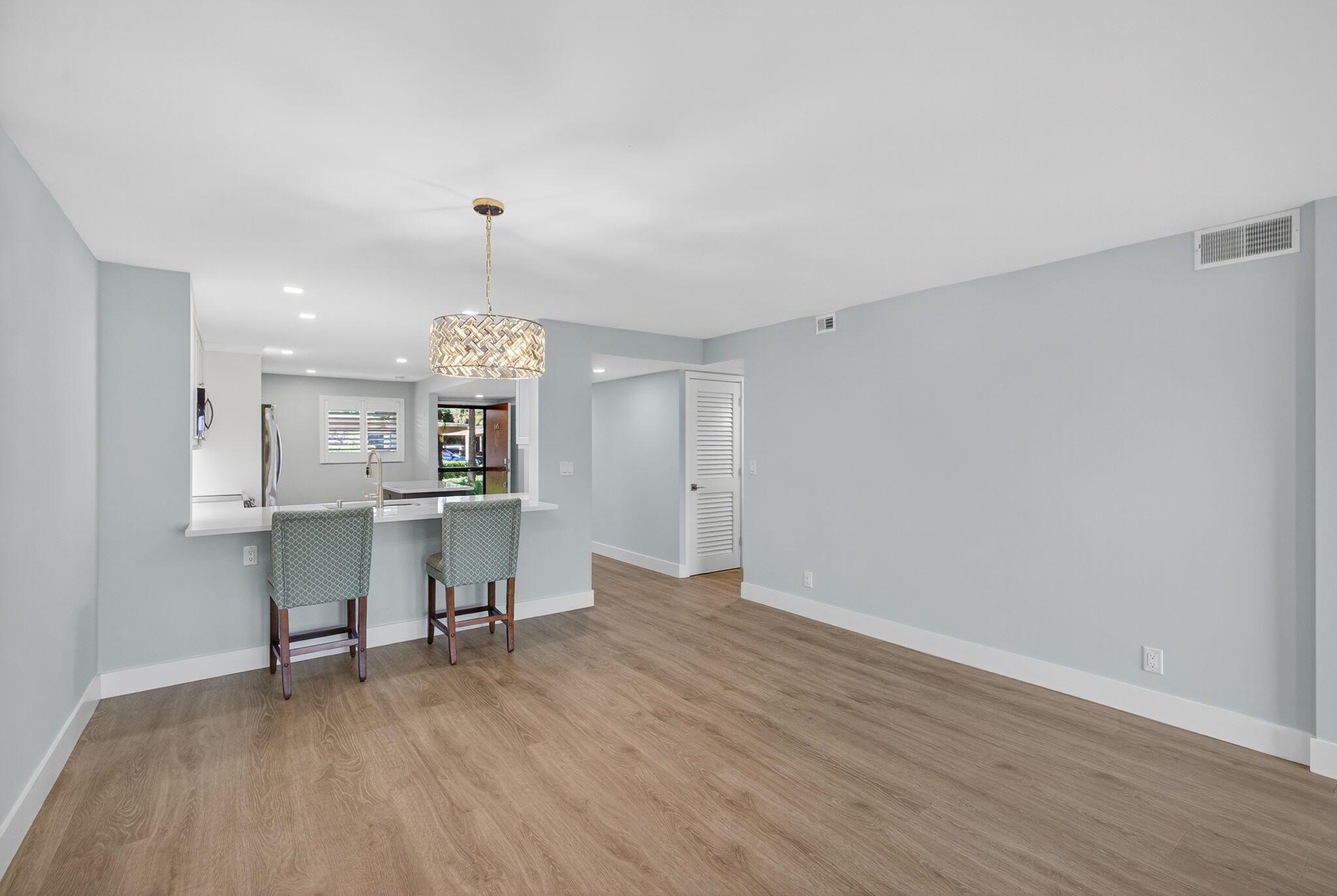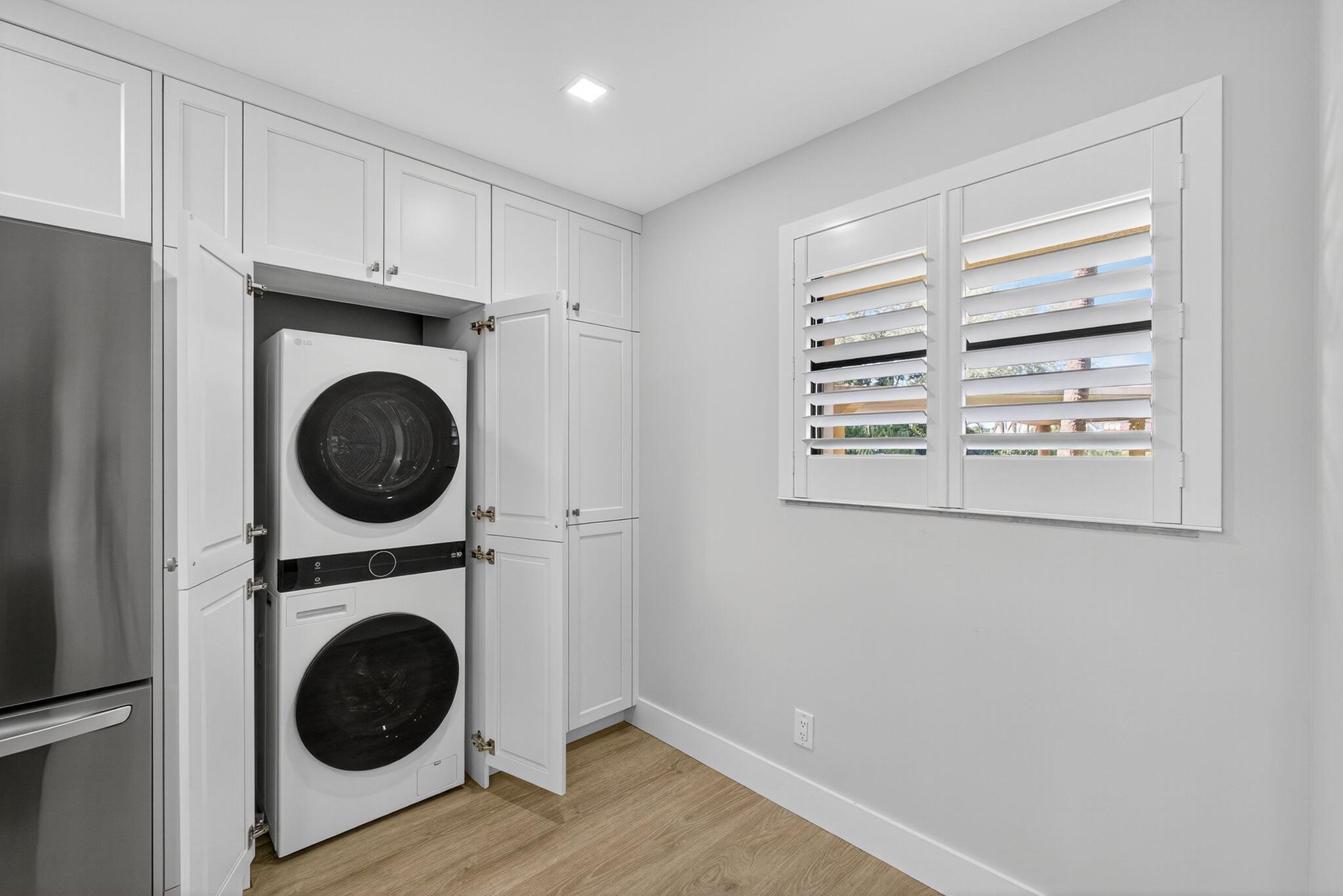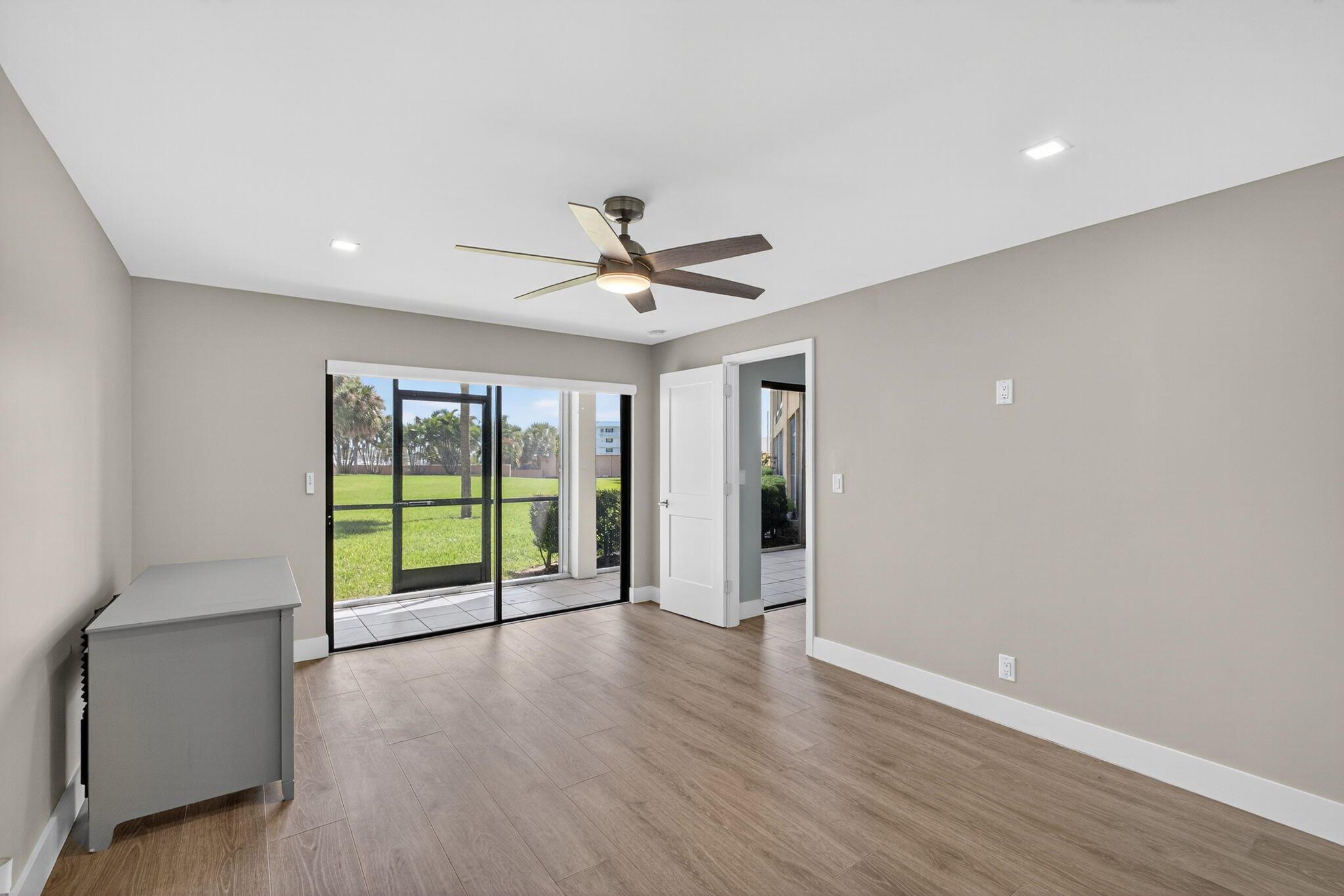 EXTREMELY MOTIVATED SELLER. 1st floor corner condo with wide expanse of lawn overlooking the intracoastal. Brand new kitchen with white quartz kitchen island with built in pull out drawers. Custom built closets in both bedrooms. Master suite has electric black out shade. Plantation shutters in LR, Kitchen, & guest bedroom. Upgraded new LG appliances: Slide in stove with built-in air fryer, Dishwasher & large stack washer & dryer. Hurricane impact windows in living room. Storage closet on large patio plus an additional air-conditioned storage locker. A must see.....you won't be disappointed! There is nothing you need to do to this condo except to move right in!! Close to Belle's Food Truck!