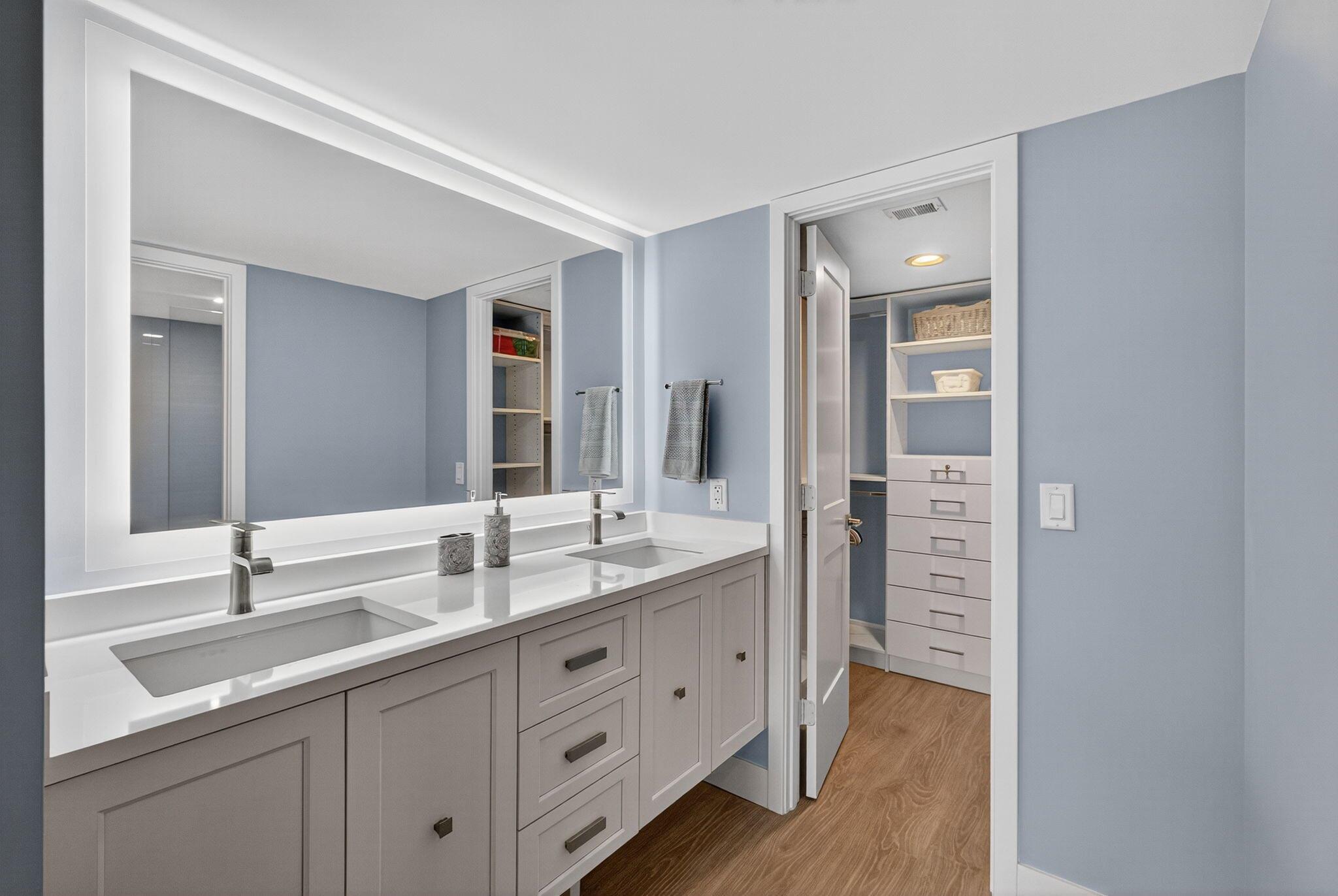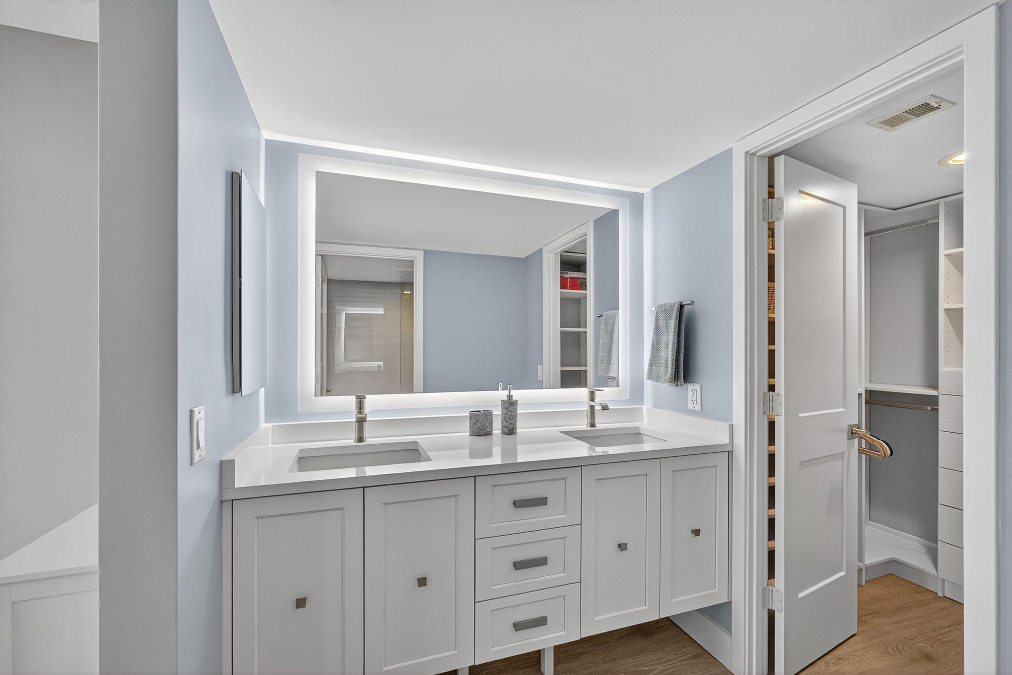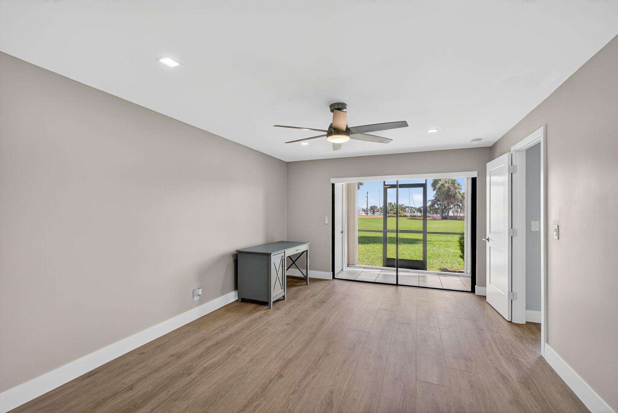 EXTREMELY MOTIVATED SELLER. 1st floor corner condo with wide expanse of lawn overlooking the intracoastal. Brand new kitchen with white quartz kitchen island with built in pull out drawers. Custom built closets in both bedrooms. Master suite has electric black out shade. Plantation shutters in LR, Kitchen, & guest bedroom. Upgraded new LG appliances: Slide in stove with built-in air fryer, Dishwasher & large stack washer & dryer. Hurricane impact windows in living room. Storage closet on large patio plus an additional air-conditioned storage locker. A must see.....you won't be disappointed! There is nothing you need to do to this condo except to move right in!! Close to Belle's Food Truck!