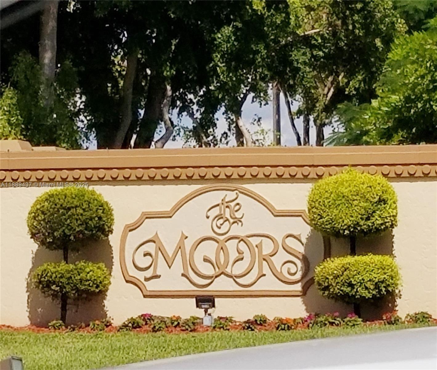 Lovely 2/2 corner, 1-story villa at The Moors. Covered front porch, foyer entry, spacious living and dining areas with glass doors to screened-in covered terrace. Remodeled kitchen with granite countertops and stainless steel appliances. Updated bathrooms, stackable washer/dryer, plantation shutters, alarm system, panel hurricane shutters, storage room and 2 assigned parking spaces in front of the unit. Barrel tile roof from 2016 and new A/C 2024. This is a private, gated community with 24-hr security. Amenities include: pools, clubhouse, exercise room, lakes, parks, tennis courts, basketball and much more. Fiber optics services, cable and internet are included in the Association as well as roof repairs. Please see broker remarks.