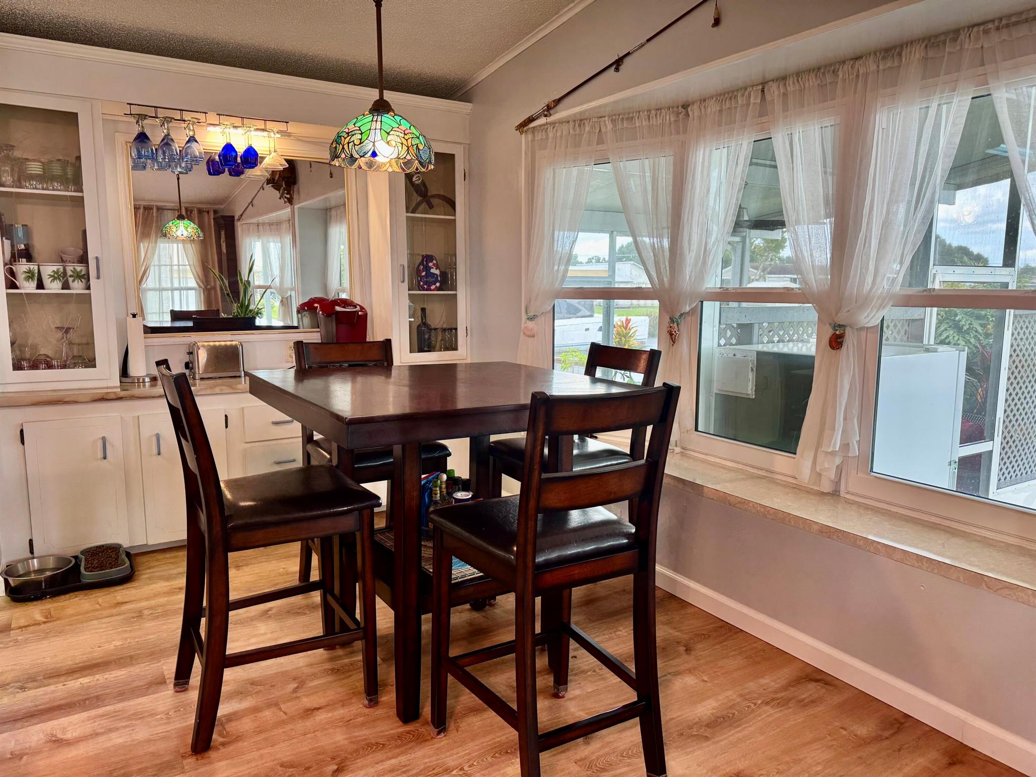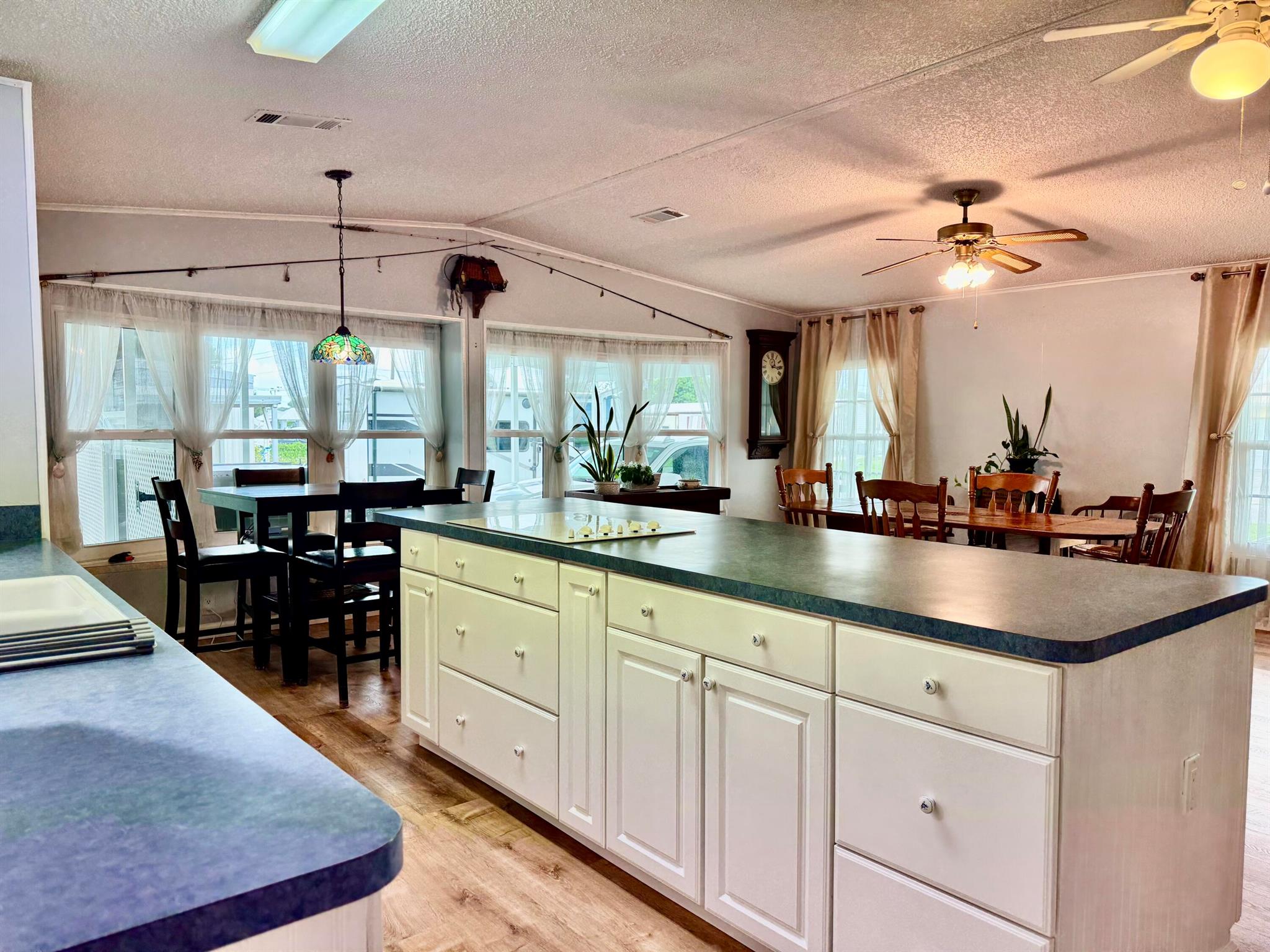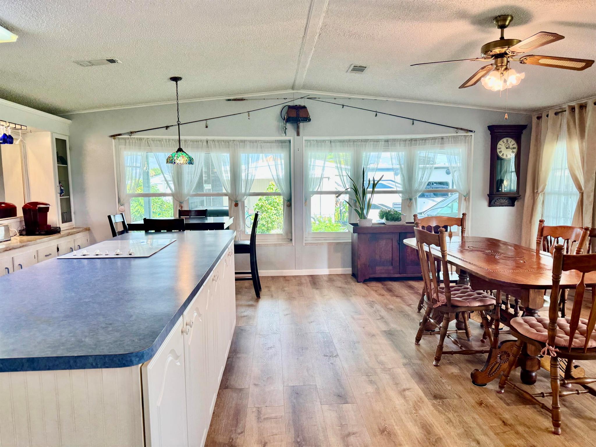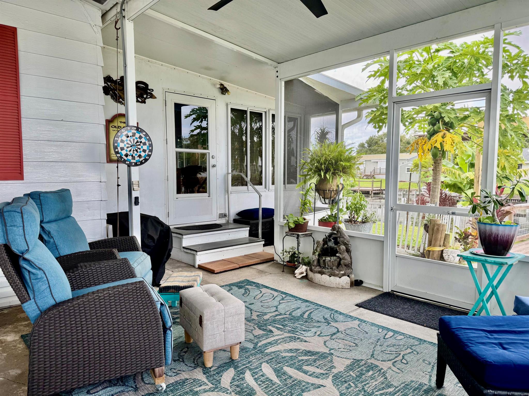 TAYLOR CREEK ISLES~Lake ''O'' access! Pristine 2Bd/ 2Ba DWMH w/ 2Carport. Beautiful open concept. Renovated Chef's dream kitchen, 9' island, cooktop, double oven, coffee bar, pullout shelves and lots of extras. 15x24 grand room, skylight, panoramic view of water. Master suite has double barn door walk in closet. Remodeled Baths. NEW LVP flooring. Lovely 17x14 screened Lanai.16x20 open patio with retractable awning. Back ramp access. Shed, Fenced. Papaya, banana, avocado and orange trees. Seawall, covered floating dock. PERFECTION at its FINEST! Dimensions are approximate, must measure for exact
