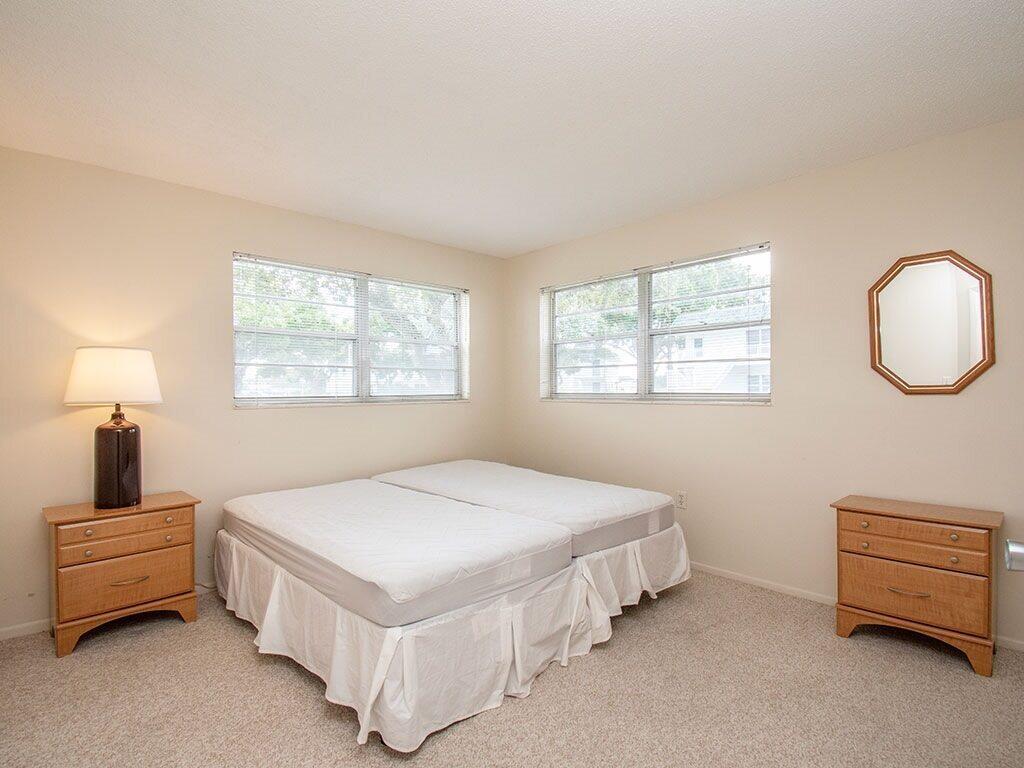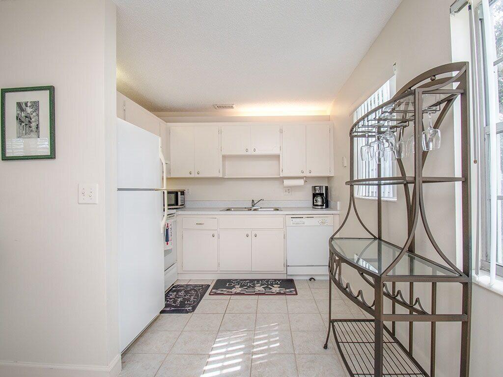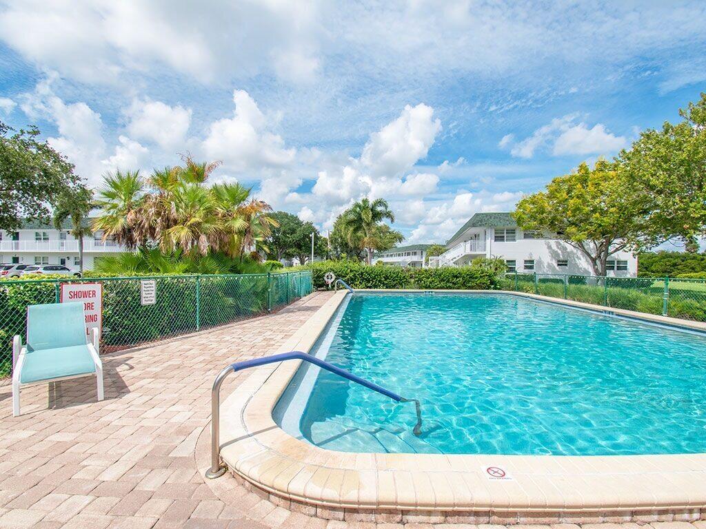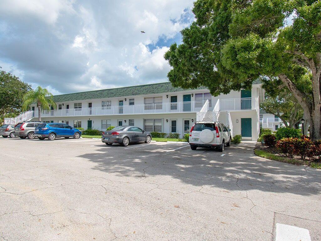 Immaculate, Bright Corner, 1st Floor 2/2 with tile for easy care. Furnished and ready for season or update and make it your coastal paradise. White kitchen, large closets, Primary features a walk in shower. Condo fee covers Master insurance, water, sewer,trash and ammenities like pool, bocce, community gas grills and a relaxing lagoon view. Porch has windows for bonus living area. Walking distance to Miracle Mile, Royal Palm Pointe for dining and shops and stroll over the bridge to the best of Vero's island restaurants and stores. Walkability score is A+. Well managed association. Lot's of interest so hurry before the snowbirds gobble this well priced, move in ready condo.