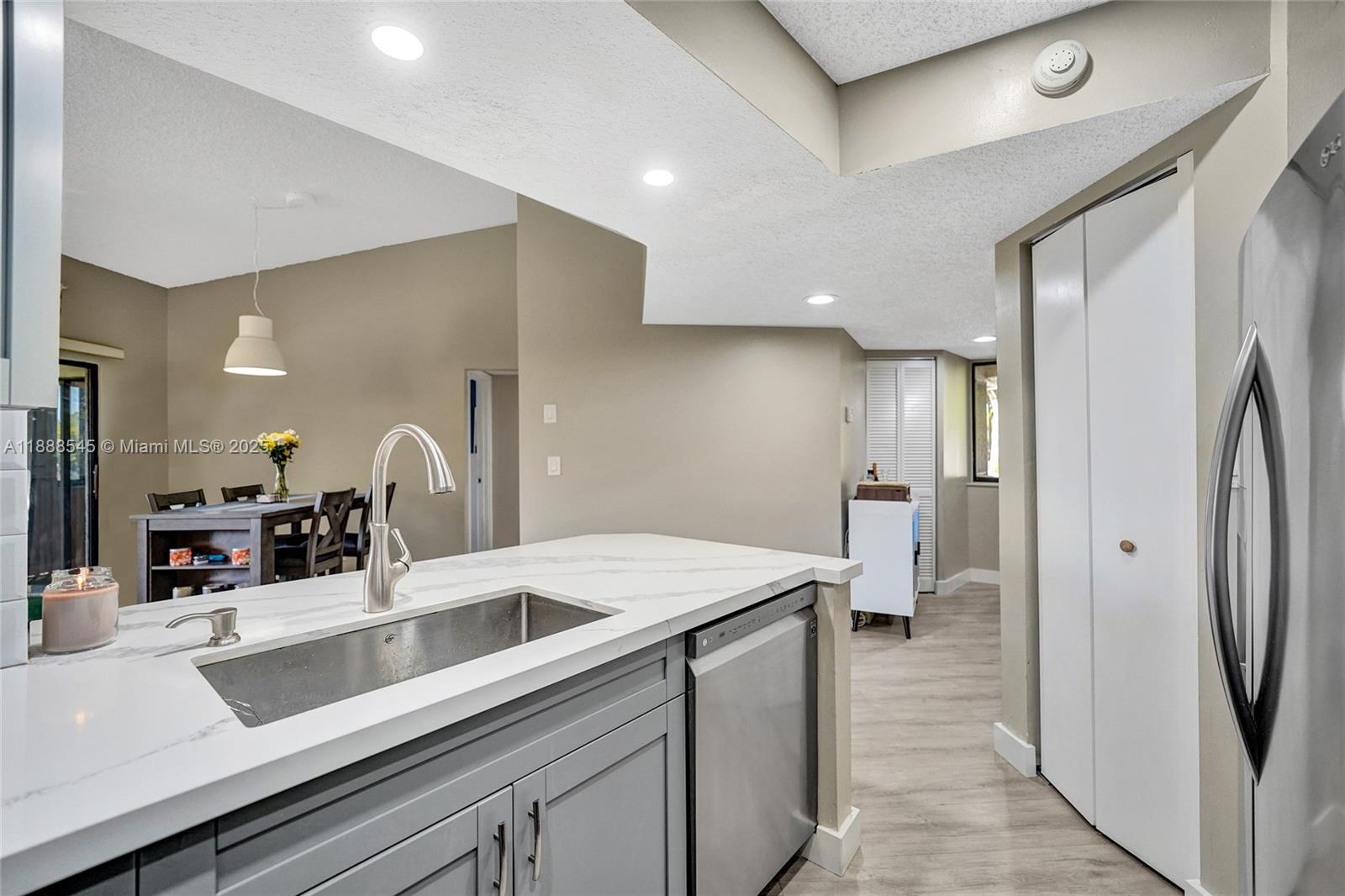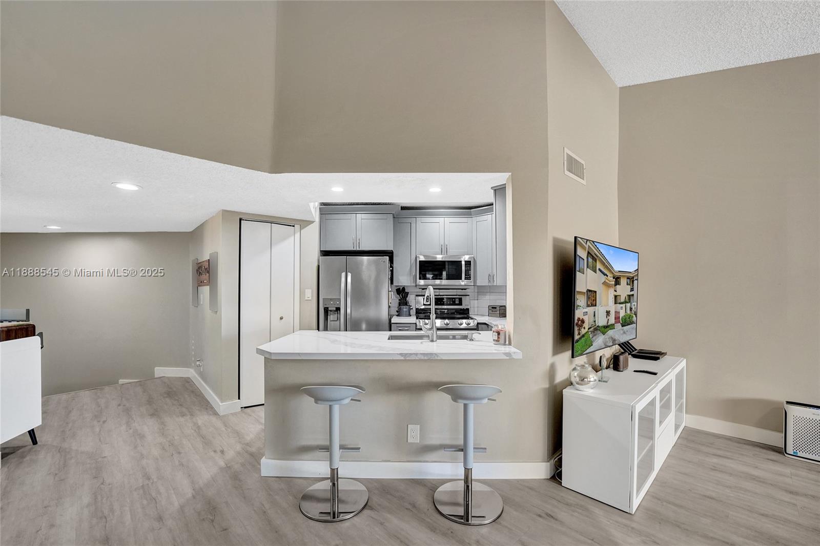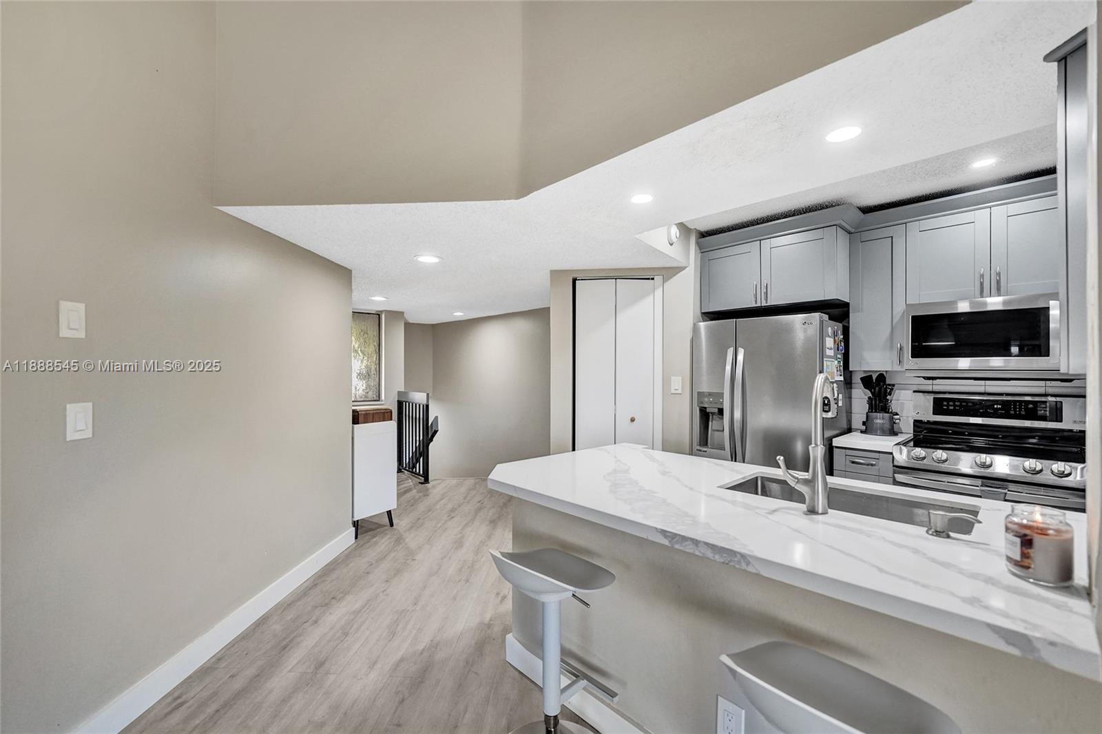 Beautifully updated 2 bedroom, 2 bathroom unit offering over 1,000 sq. ft. of comfortable living space in a private Plantation location. The modern kitchen features sleek finishes and ample cabinetry, while the in-unit washer/dryer adds everyday convenience. The spacious primary suite includes a walk-in closet, and abundant storage can be found throughout. A screened-in patio overlooks the serene water, perfect for relaxing. Entry is on the first floor with stairs immediately inside leading up to the unit. This home is tucked away yet close to Veterans Park, shopping, dining, and major highways. Substantially remodeled and move-in ready—plus, it’s currently the only 2/2 available in the neighborhood!