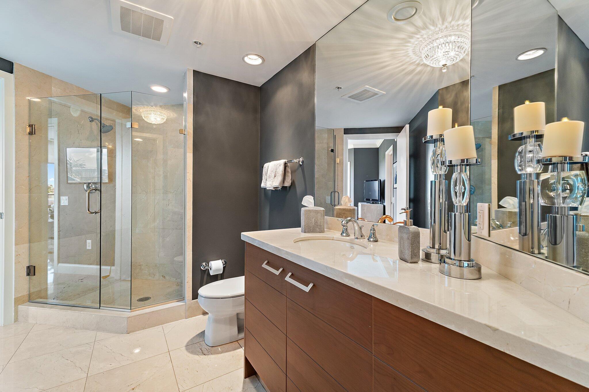 Designed for the discerning buyer, this well-designed 3/3 floor plan spans over 2,700 sf of elegant living at The Landmark. Effortless entertaining with the built-in bar and spacious kitchen, while custom millwork, motorized shades, and built-in closet systems ensure beauty and maximized function throughout. Your carefree lifestyle begins with this pet-friendly building's outstanding amenities: full-time valet, fitness center, saltwater pool, private theater, library and more. Seamless commuting and travel with PBI & private airports just 20 mins away and pristine Jupiter/Juno beaches only 10 mins away. Located in the epicenter of Palm Beach Gardens offering fine & electric dining, shopping, Whole Foods, LifeTime Fitness, entertainment & more... luxury and location! Well-funded reserves.