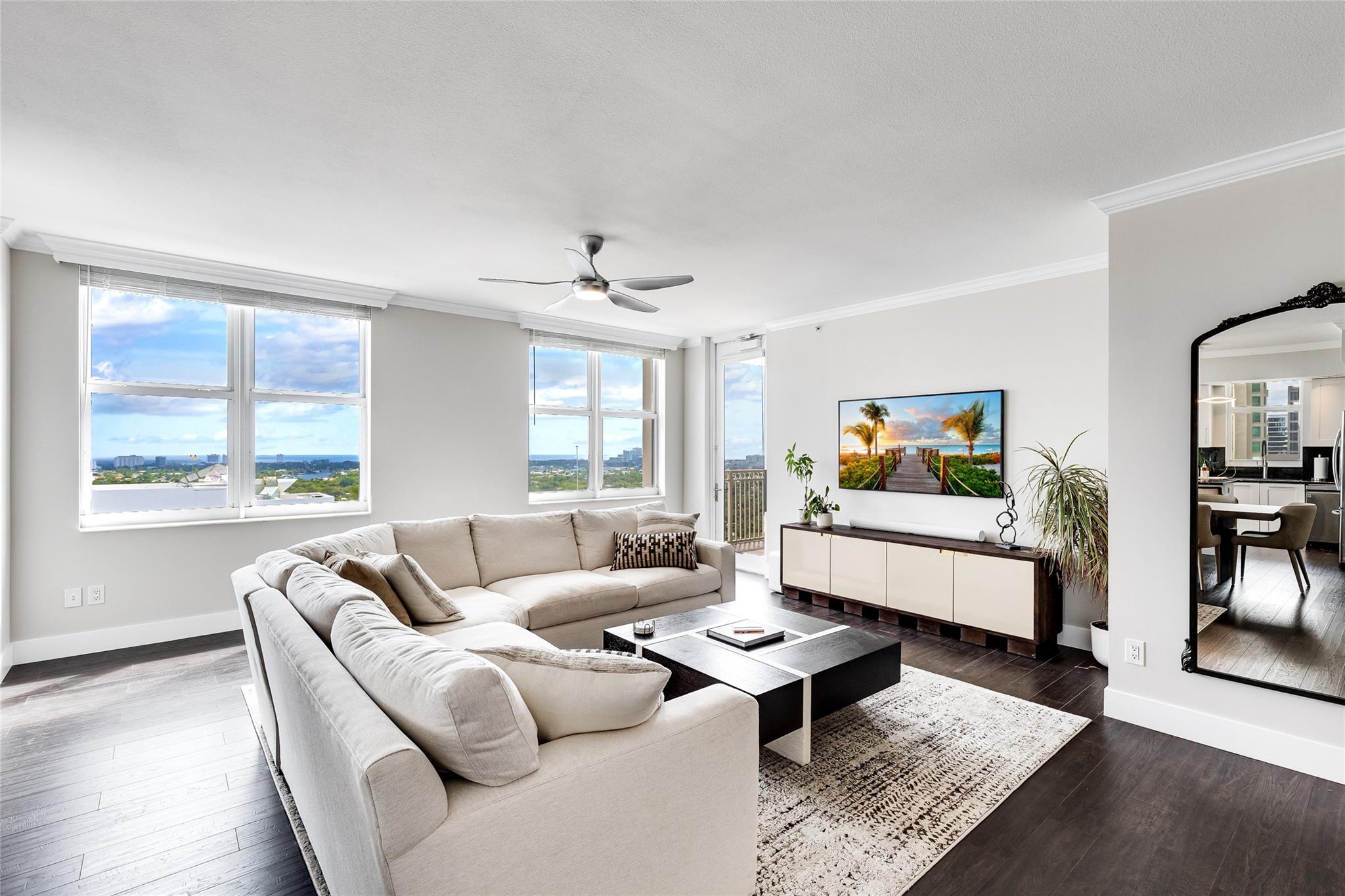 Incredibly rare, beautifully modernized 3 br / 2 bath spanning entire east end of the building. Two wraparound balconies (478 sq ft). Breathtaking views of the river, ocean, airport, cruise port & more. Balcony access from all rooms. Fully updated: new floors, baseboards, appliances, solid wood doors, kitchen island, bathroom vanities & mirrors, lighting, blinds, custom California closets, Murphy bed, cleaned ducts & freshly painted. Prime parking spot. Furnishings negotiable. HOA incl water/sewer/trash, secure parking, amenities: 24 hour concierge, front desk, package room, rooftop pool, sky lounge, bbq grills, gym, basketball, racquetball, yoga studio, jacuzzi, steamrooms, saunas, massage room, bike/kayak racks, business center, yoga lawn. Pet & Investor friendly. Walk 5 min to Las Olas!