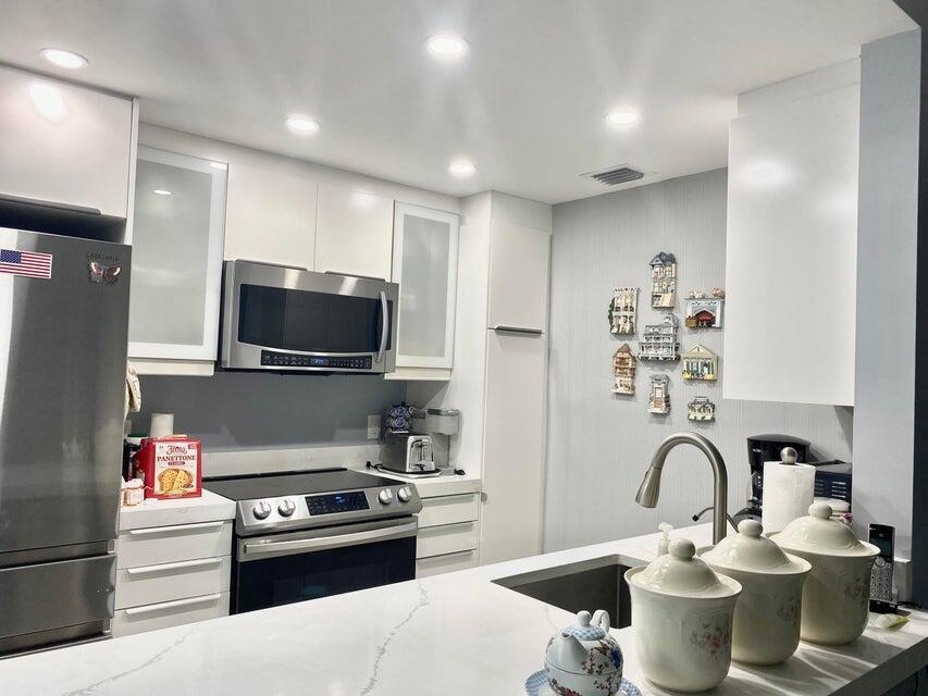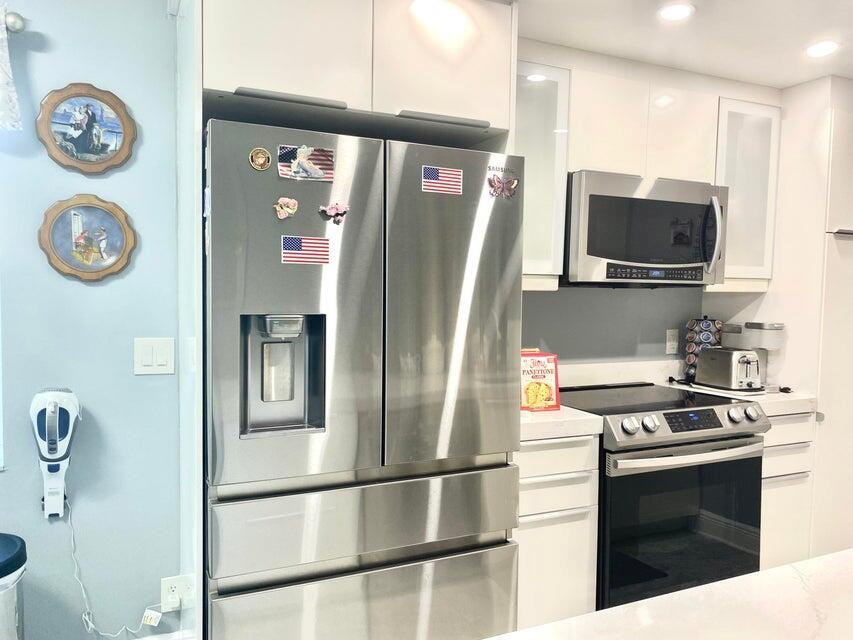 Re-done Beautiful true corner first floor condo. Hurricane impact windows incl. sliding door in 2nd bedroom, Spacious lawn area and canal view from side. Remodeled and new front & back doors.. Encl. porch for that bonus room. washer/dryer closet off porch. Stainless steel appliances, ceiling and lighting redone. quartz counters. Beautiful Porcelin tile. Kings Point is a resort style community with a Bistro andcafe, 3 mult-million dollar clubhouses, 6 tennis courts, pickleball court, Bocce, indoor /outdoor heated pools, billards, theatre with live entertainment, courtesy buses daily to shopping and more...just 6 miles from Historic Delray Beach and the ocean. Welcome home...