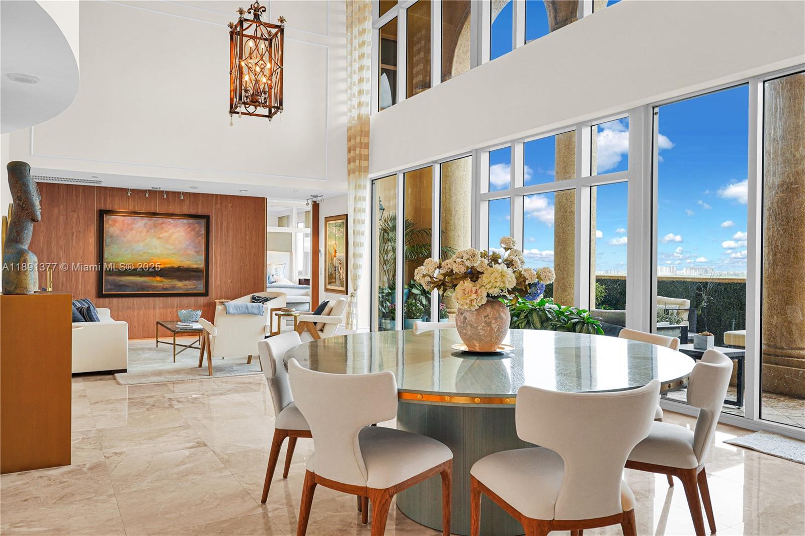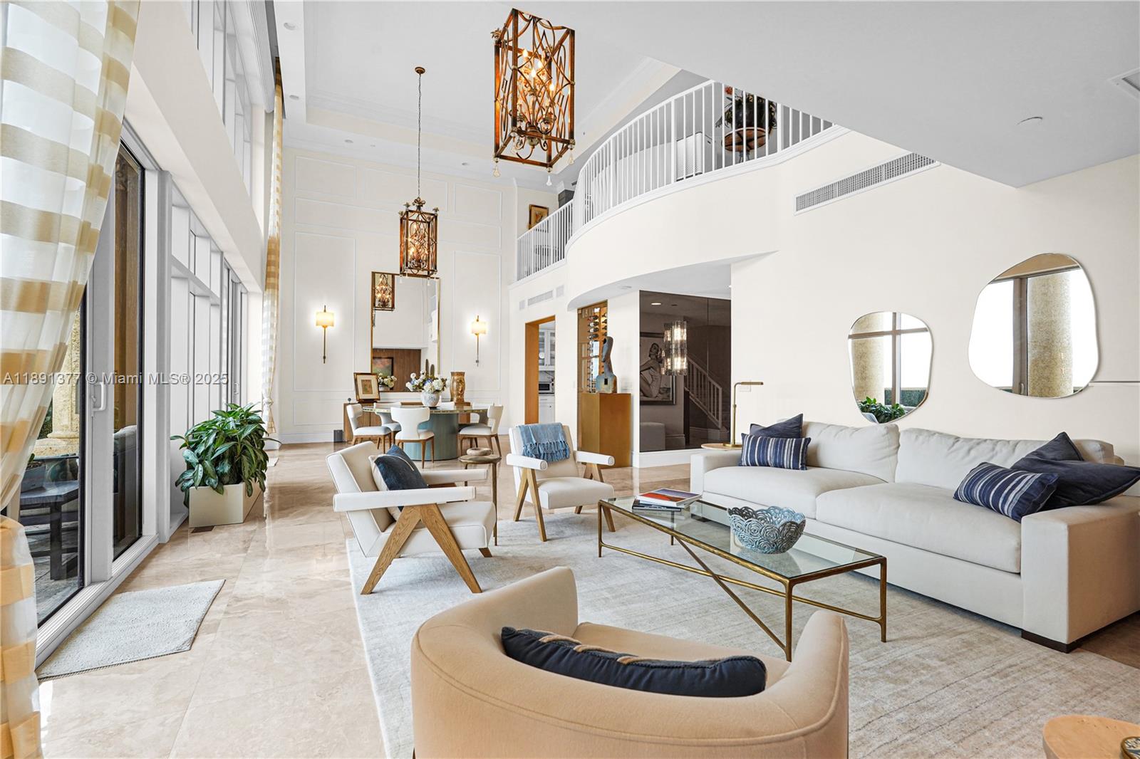 Welcome to Penthouse 7 at Villas of Positano, a stunning two-story oceanfront residence in the heart of Hollywood Beach. This fully furnished designer home offers 3,683 sq. ft., 3 bedrooms + den | 3.5 bathrooms, soaring 21-ft ceilings, a private elevator, and a 797 sq. ft. terrace showcasing breathtaking ocean, bay, city, and park views. Features include marble floors, a remodeled Italian gourmet kitchen, a grand living room, a primary suite on the main level, and an entertainment mezzanine. Enjoy resort-style amenities: oceanfront pool, spa, fitness center, concierge, valet, and direct beach & marina access—the perfect blend of privacy, sophistication, and coastal luxury.