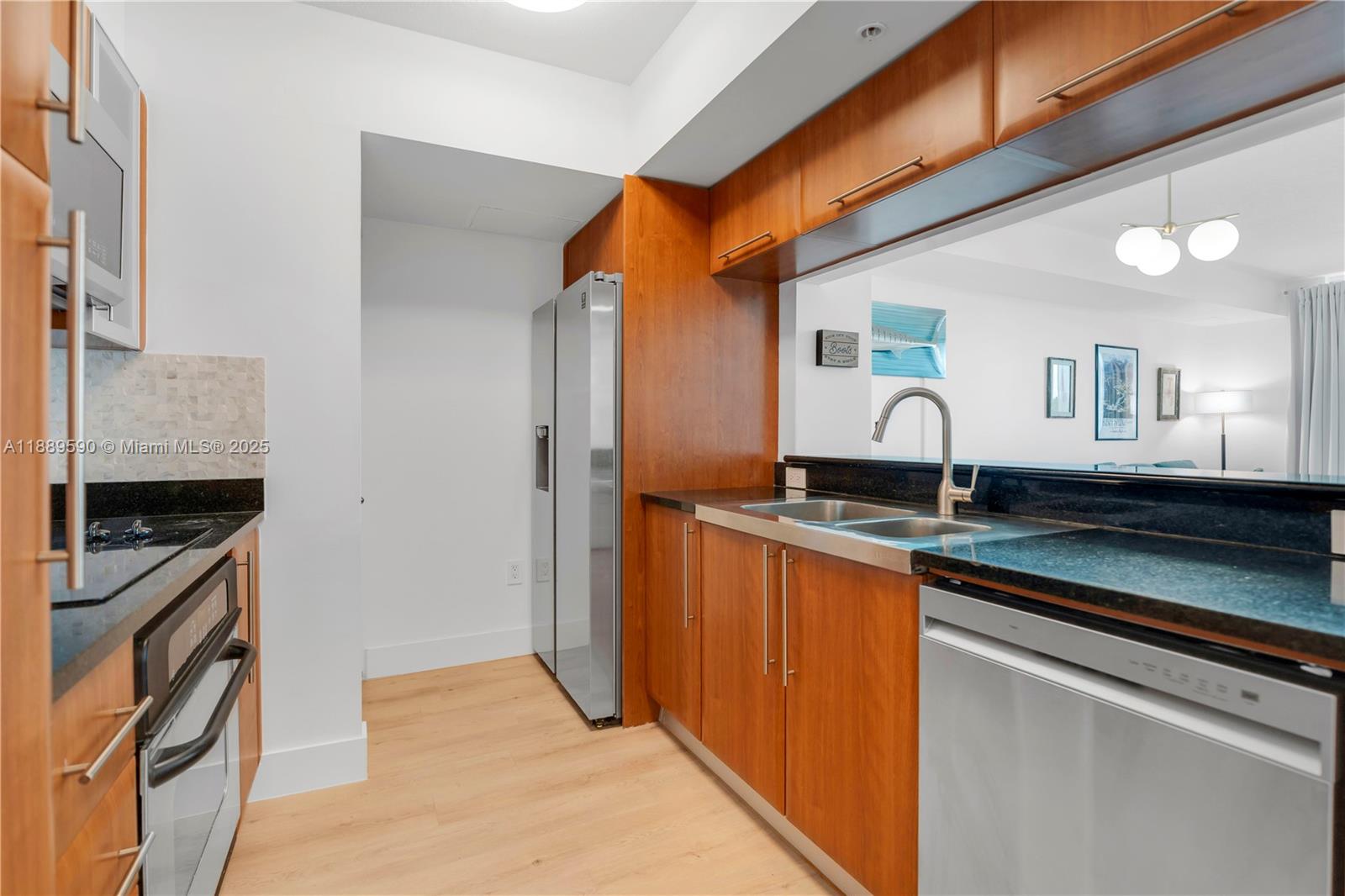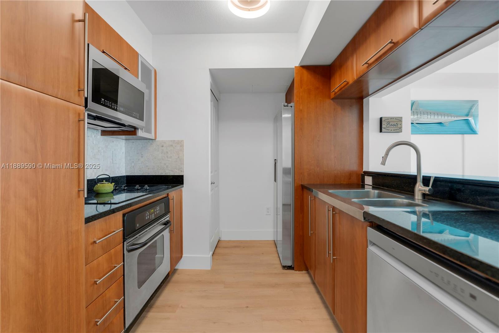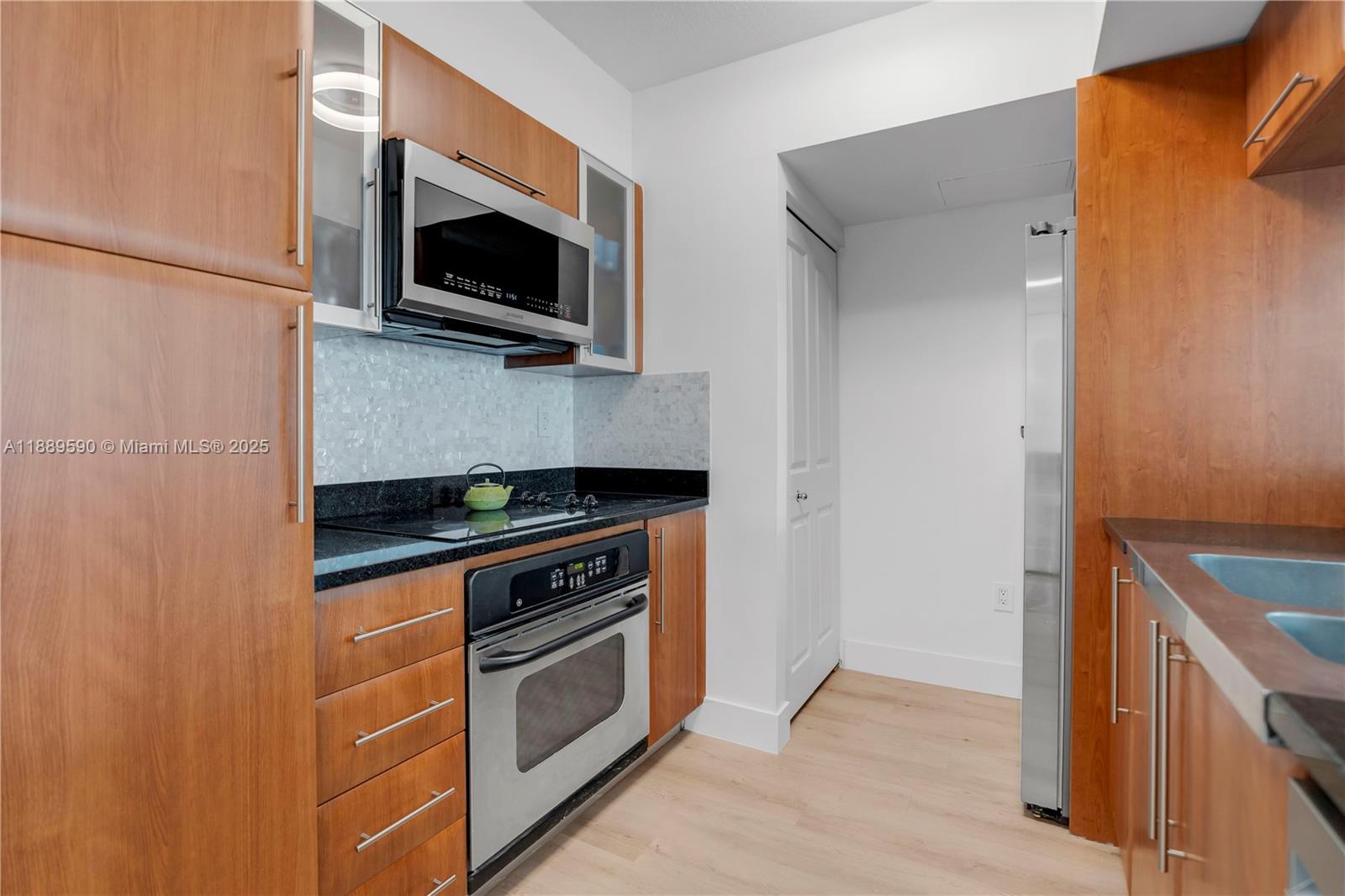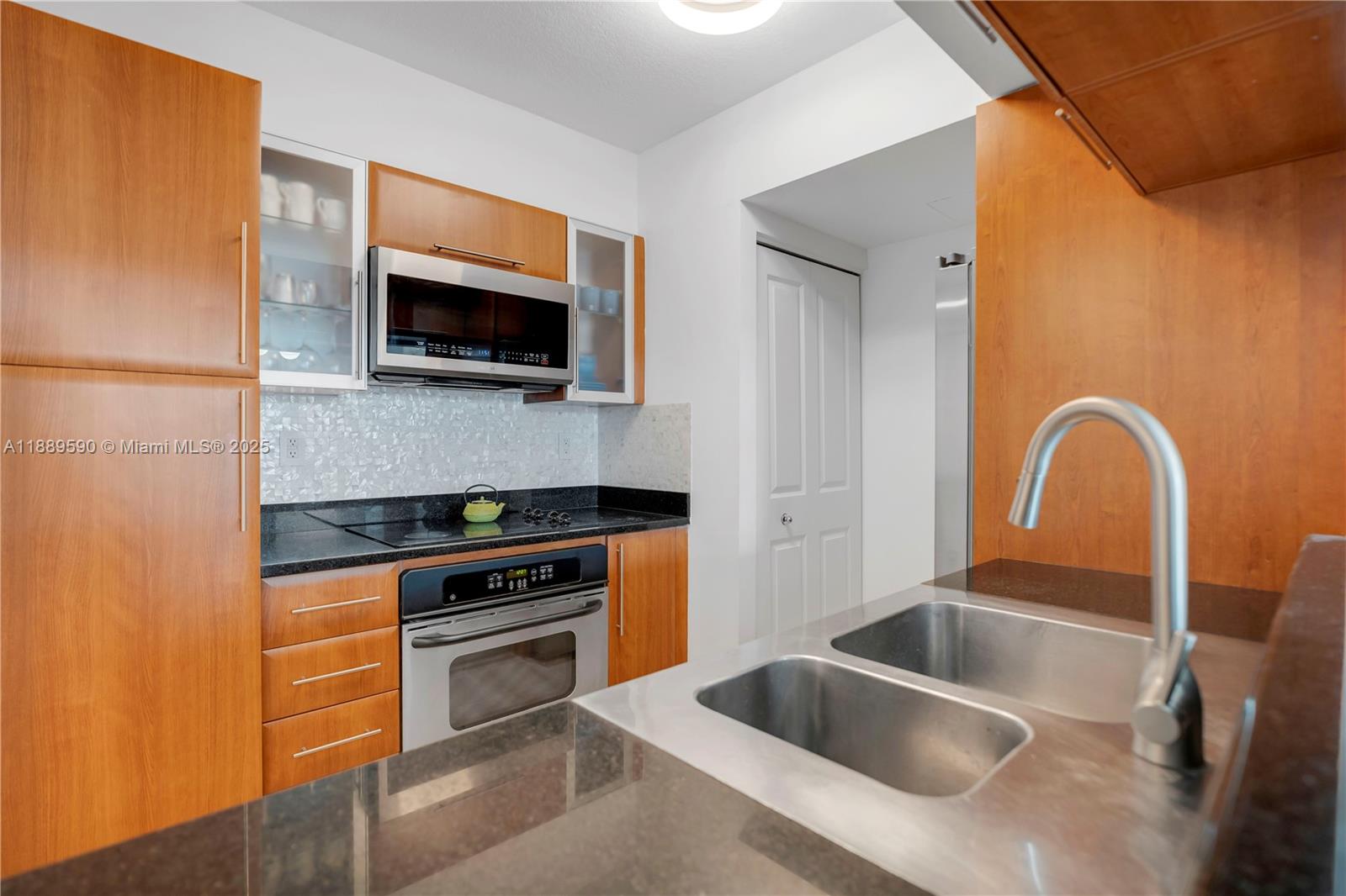 Experience resort-style living in this 1BR/1BA unit, offering stunning views of the pool, recreation deck, and downtown Fort Lauderdale. Interior features include modern finishes, new flooring & light fixtures. The kitchen is complete with granite countertops and new stainless-steel appliances. The spacious primary bath boasts a glass-enclosed shower and Roman tub. Additional highlights: in-unit new washer/dryer and impact windows. Enjoy world-class amenities including a 5,000 sq. ft. fitness center, spa, salon, business center, theater, wine room, library, club room, marina access, and 24-hour security.