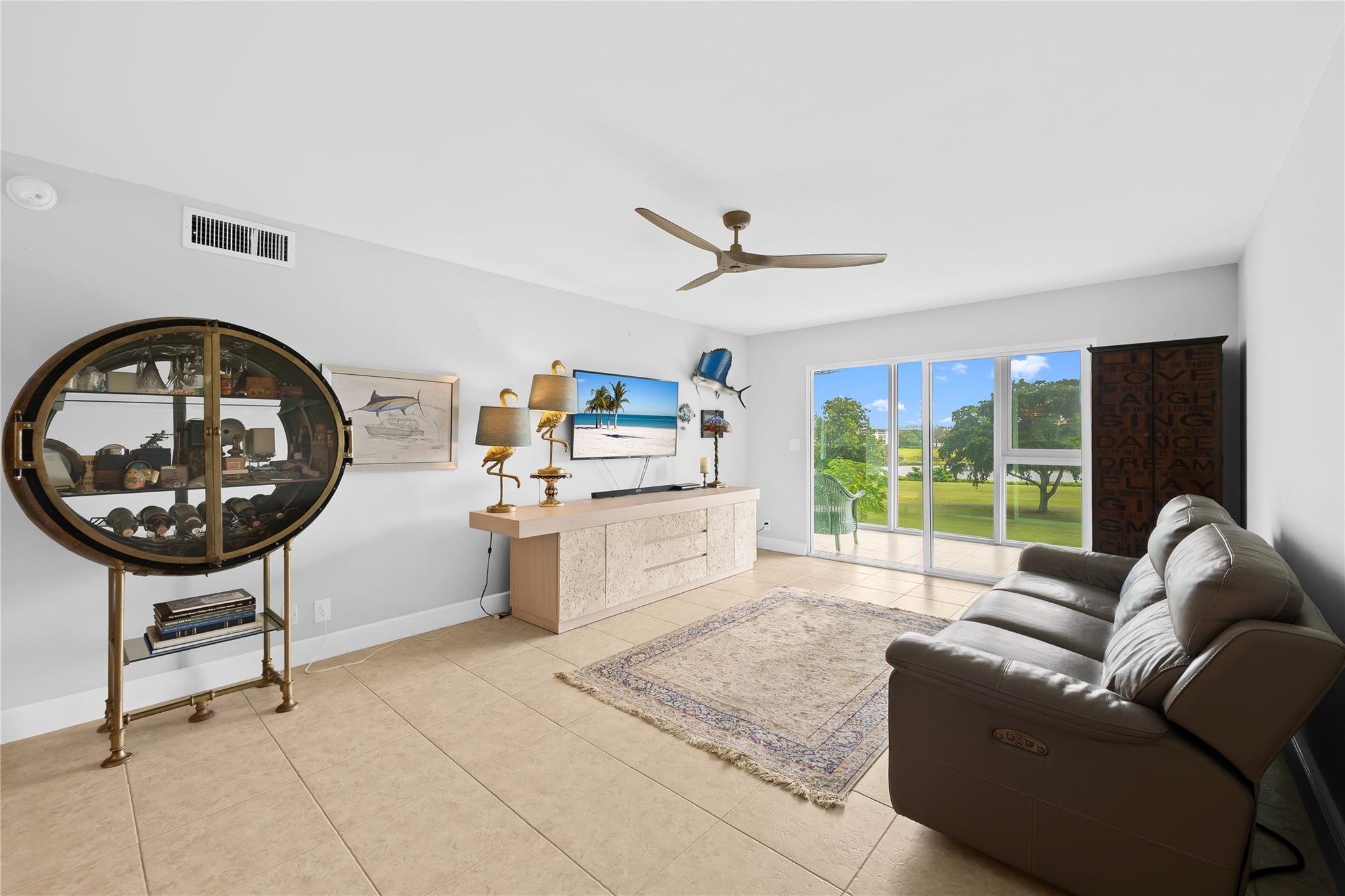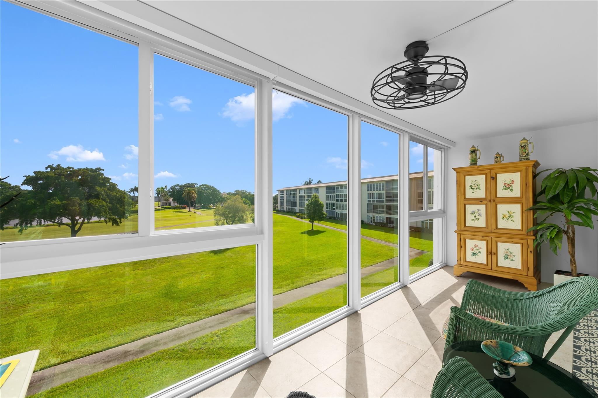 PRICED TO SELL! Just bring your toothbrush! Only thing missing is you. This is a fabulous completely updated unit. Hurricane impact windows and doors. Balcony has impact windows from ceiling to floor to give you unobstructed view of the golf course & lake. Tile floors throughout. Both bathrooms beautifully renovated. Master bedroom has views of the golf course and California closet. KItchen w/stainless steel appliances and granite countertop. Modern lighting & ceiling fans add to the ambience. All your big ticket items have been done for you. Community laundry & extra storage, assigned parking. List of amenties goes on & on. Clubhouse, movie theater, pools, fitness center, tennis, pickleball, billiards, golf course & more. Manned security guard at entrance.