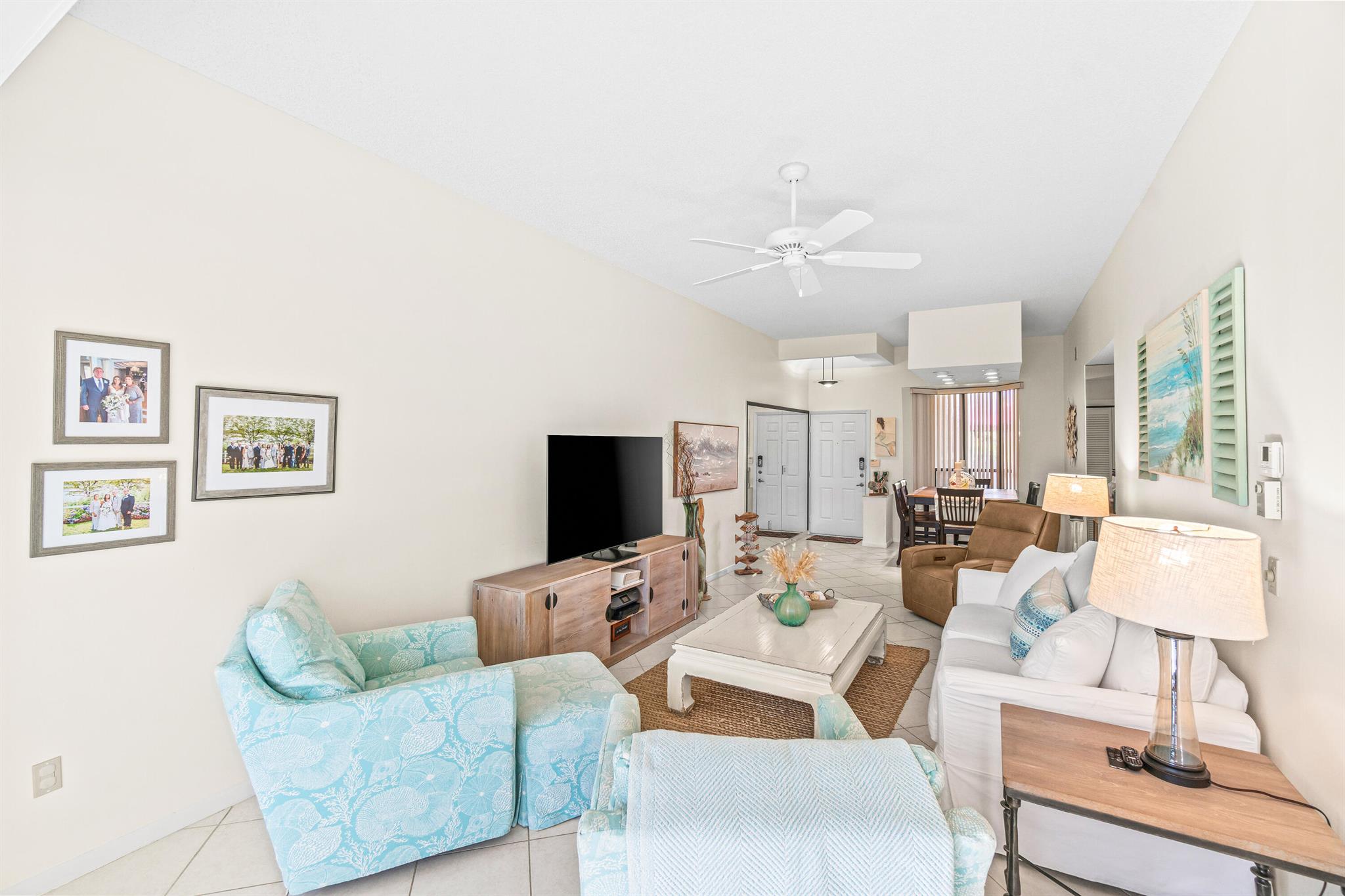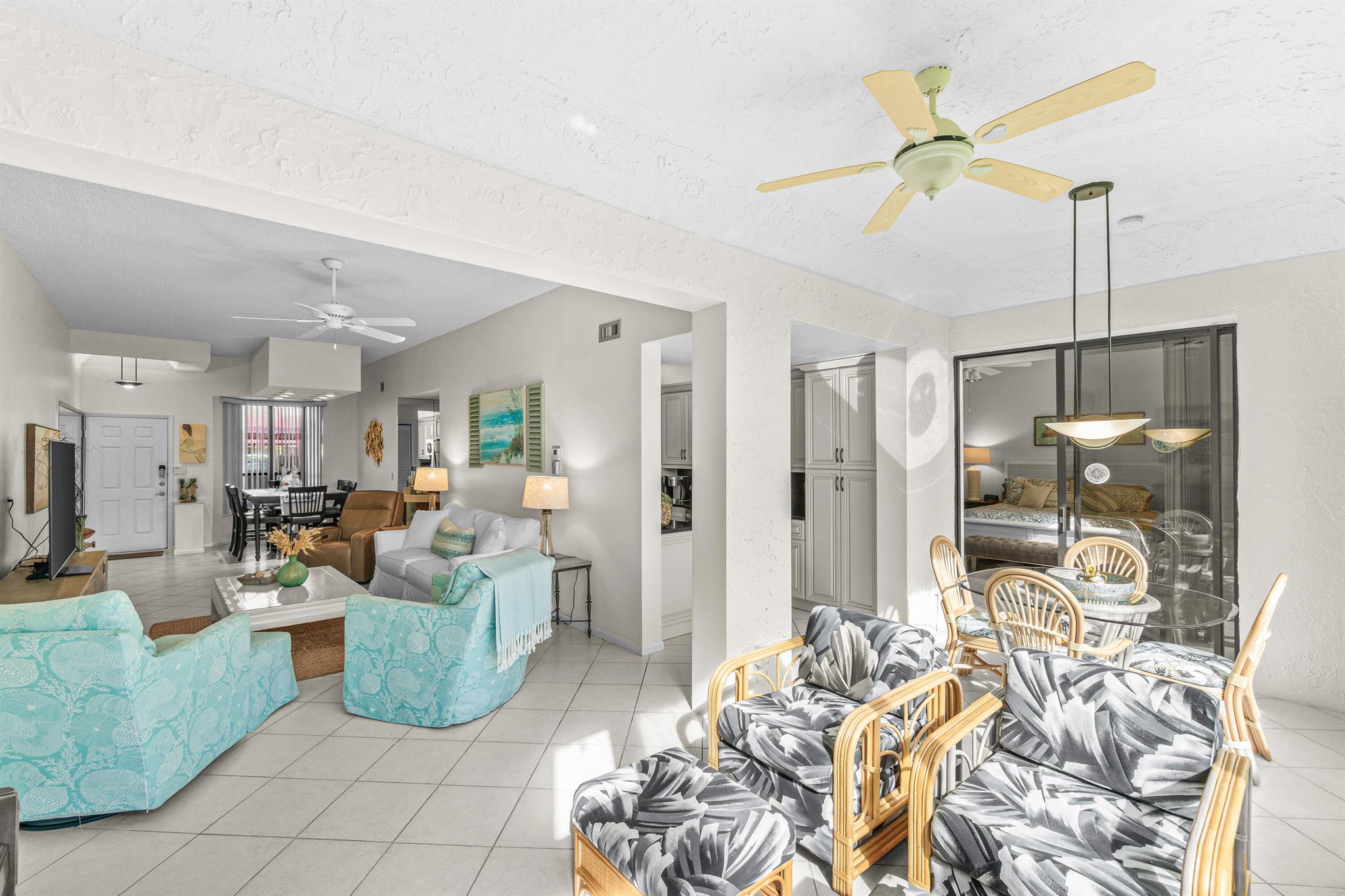 BEST DEAL IN LA PAZ!! NO WAIT TO RENT!! UP TO 4 TIMES PER YEAR. This expansive 2-bedroom, 2-bathroom condominium in the desirable La Paz community of Boca Pointe combines gorgeous golf course views with the convenience of first-floor living. The interior includes an updated kitchen equipped with stainless steel appliances. The generously sized primary suite features a spacious walk-in closet and an en suite bathroom. Additional highlights of this condo include a washer and dryer, expanded living room as well as a recently replaced air conditioning system. Residents of La Paz can enjoy a range of amenities, including two tennis courts, two swimming pools, and an inviting clubhouse. There is also an option for club membership at the prestigious Boca Pointe Country Club