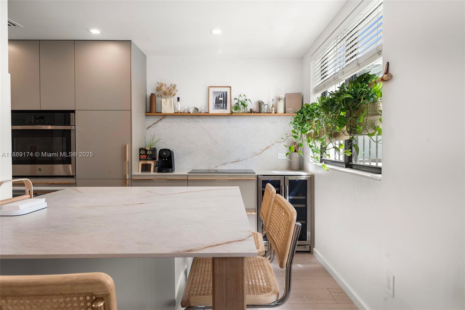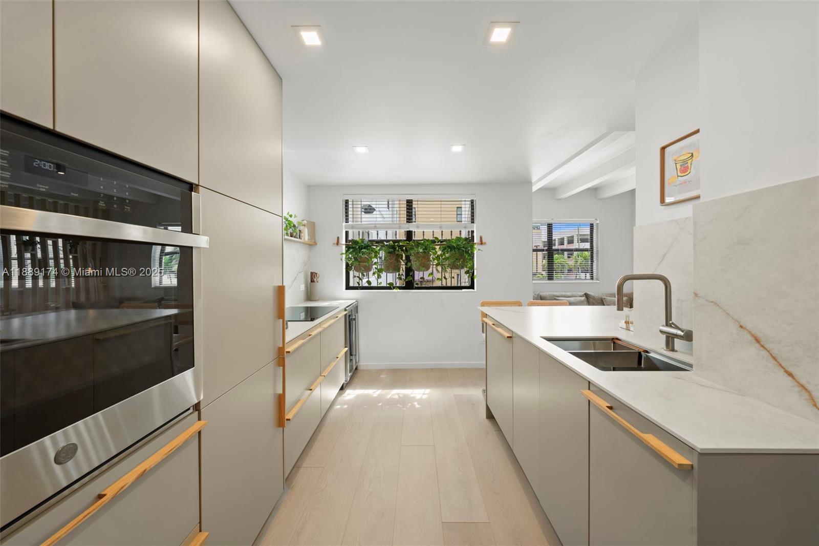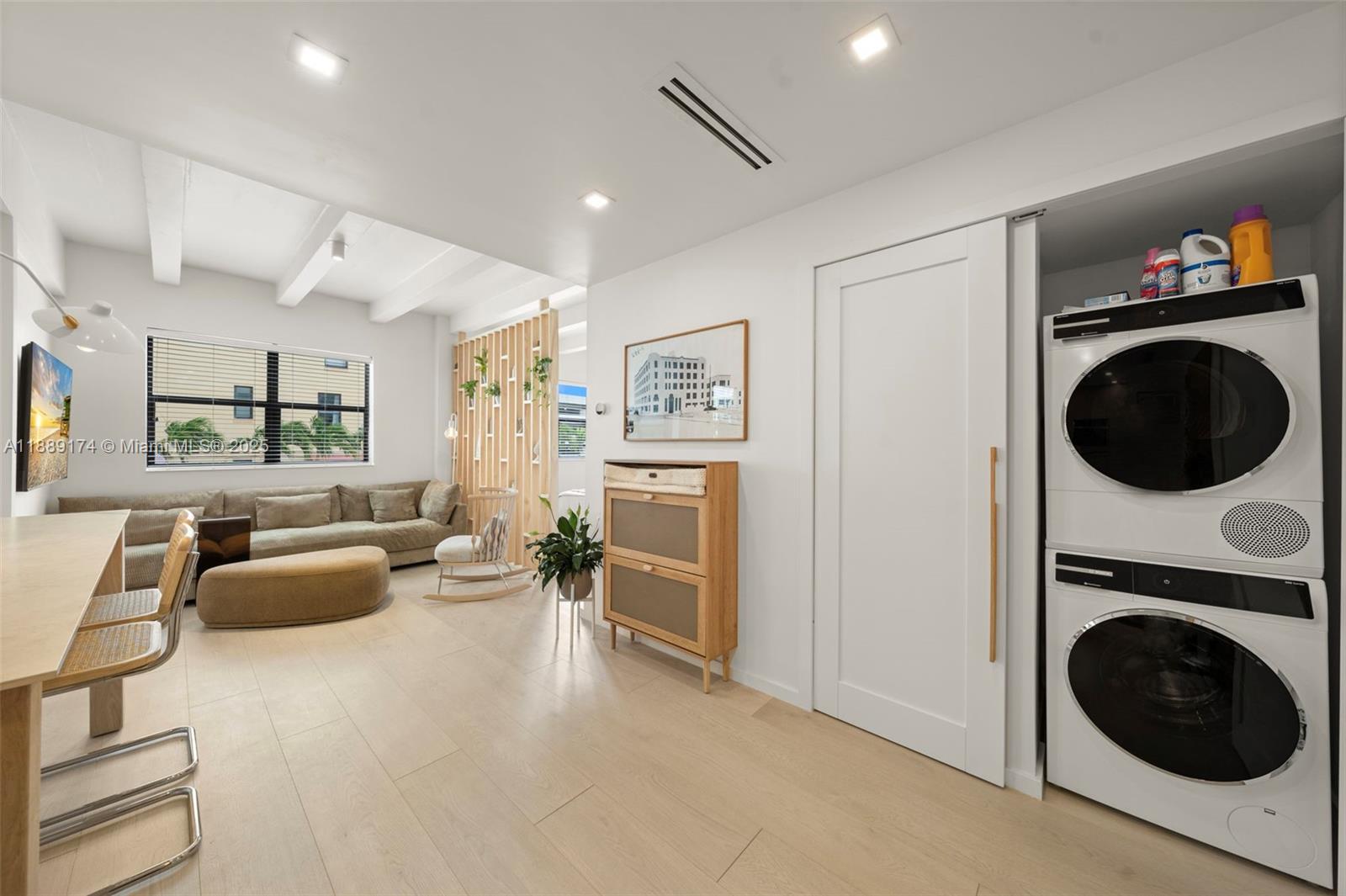 LUXURY LIVING, MOVE IN READY, BEACH FRONT CONDO All new kitchen with high-end appliances and stone countertops and backsplash throughout. Plenty of extra storage in cabinets for cleaning appliances, bedding and towels. New Bosch washer and dryer, brand new water heater. Decorative partition wall separates open living to bedroom for maximum openness and light flow. Walk-in closet and a beautiful, spa-like bathroom. Impact windows in the unit. HOA fee includes cable tv and Internet. Building amenities include a heated pool, BBQ grill and dining area, bike storage and large laundry room. Beach access is directly across the street from the building entry. 10% reserves and 40 year Inspection Certificate pass.