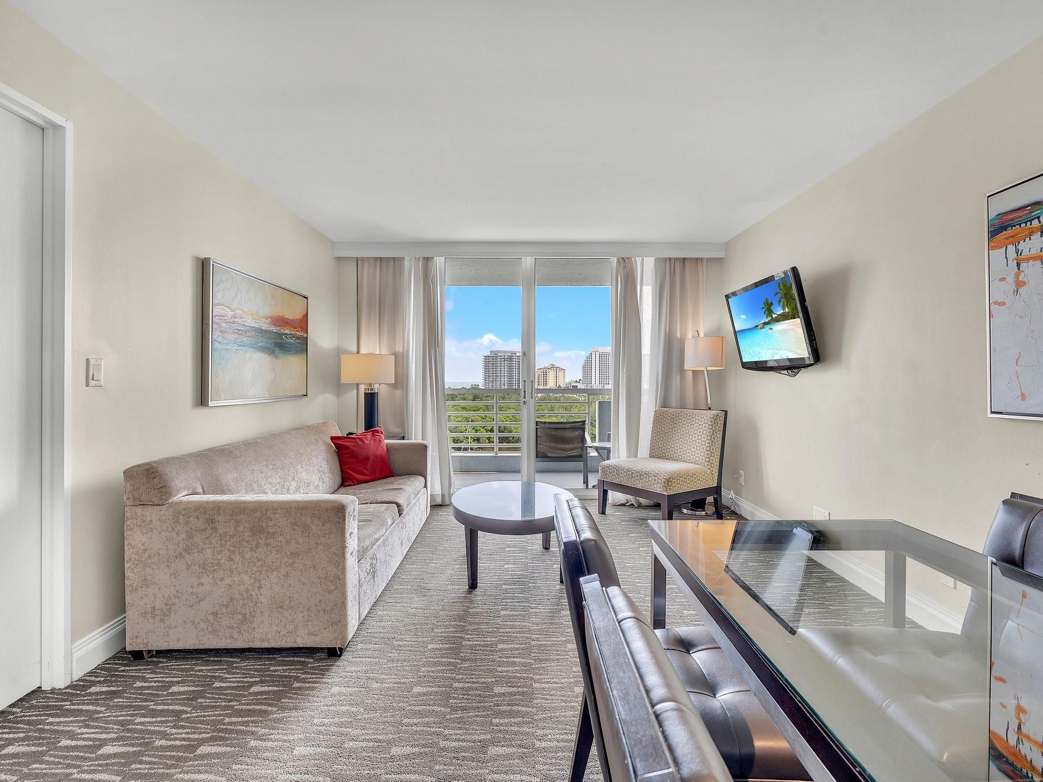 Gallery One, Fully Furnished (turnkey), 1bed/1bath, Waterfront Condo with Balcony, Intracoastal & Ocean Views, and steps away from World Famous Fort Lauderdale Beach! Spacious living area with Pullout Sleeper Sofa, FULL Kitchen with Granite Countertops, Stove, Dishwasher, Garbage Disposal, Refrigerator, Coffee Maker, and Microwave. Large bedroom with a King Bed. The building has many Amenities including a Waterfront Heated Swimming Pool, Restaurant, Indoor and Outdoor Bars, Sunning Deck, Boat Dock with Jet Ski Rentals, Water Taxi Pickup/Stop, Fitness Center, and much MORE!! Short walk to shopping at Galleria Mall, Grocery/Market, Beach, 5-Star Restaurants, Starbucks and MORE!! One Valet Parking Space comes with the Condo Unit. Relax and Enjoy!!