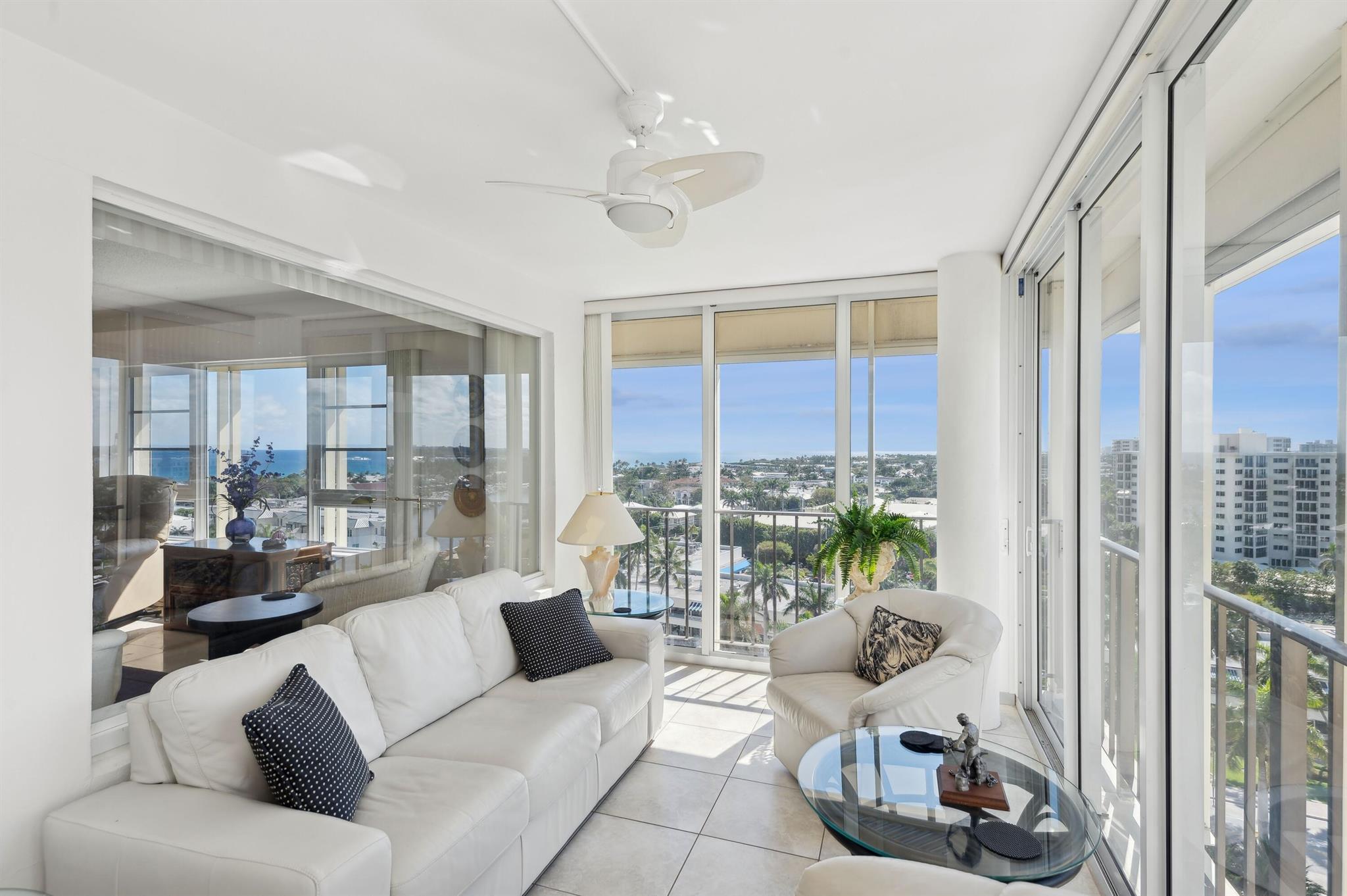 Enjoy sweeping panoramic views of the ocean, Intracoastal, and city skyline from this rarely available 11th-floor southwest corner lower penthouse in Delray Beach's premier Barr Terrace. This bright 2BR/2BA residence features a split-bedroom layout with stunning vistas from every room. The enclosed glass terrace with high-impact sliders invites year-round enjoyment, complemented by impact windows and electric shutters for peace of mind. The newly renovated Barr Terrace offers modern resort-style amenities including a designer lobby, pool deck, fitness center, lounge, and full-time staff. Two garage spaces included. Unbeatable location--just two blocks to the beach and steps to vibrant Atlantic Avenue's dining, shops, and nightlife!