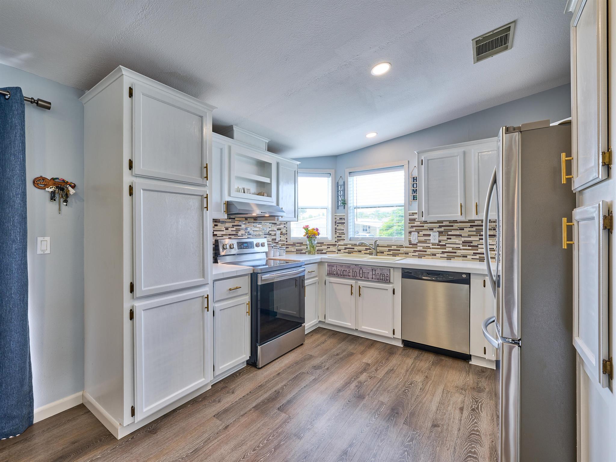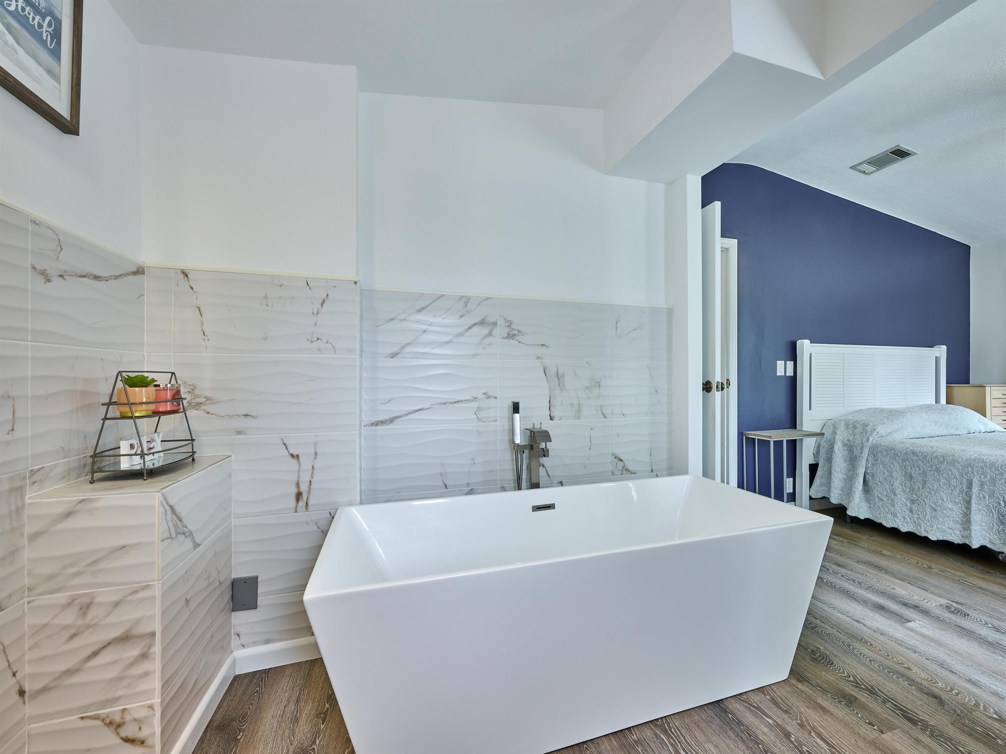 Fully renovated 2 bedroom, 2 bathroom manufactured home located at 7358 SE Eagle Ave, Hobe Sound, Florida. This property sits on an extra-large 83x91 lot (6,969 sq. ft.), offering ample space, privacy, and versatility. A gravel pad provides convenient parking or storage for a boat, RV, work trailer, or additional vehicles. The interior has been completely updated with luxury vinyl plank flooring throughouta"there is no carpet and no popcorn ceilings. The master bathroom features a stunning freestanding bathtub, creating a spa-like retreat. The home offers both a split A/C system (installed 2022) in the living room and a central A/C (2018) for efficient climate control. Additional upgrades include a tankless water heater (2019), new PVC plumbing lines (2019), and all new