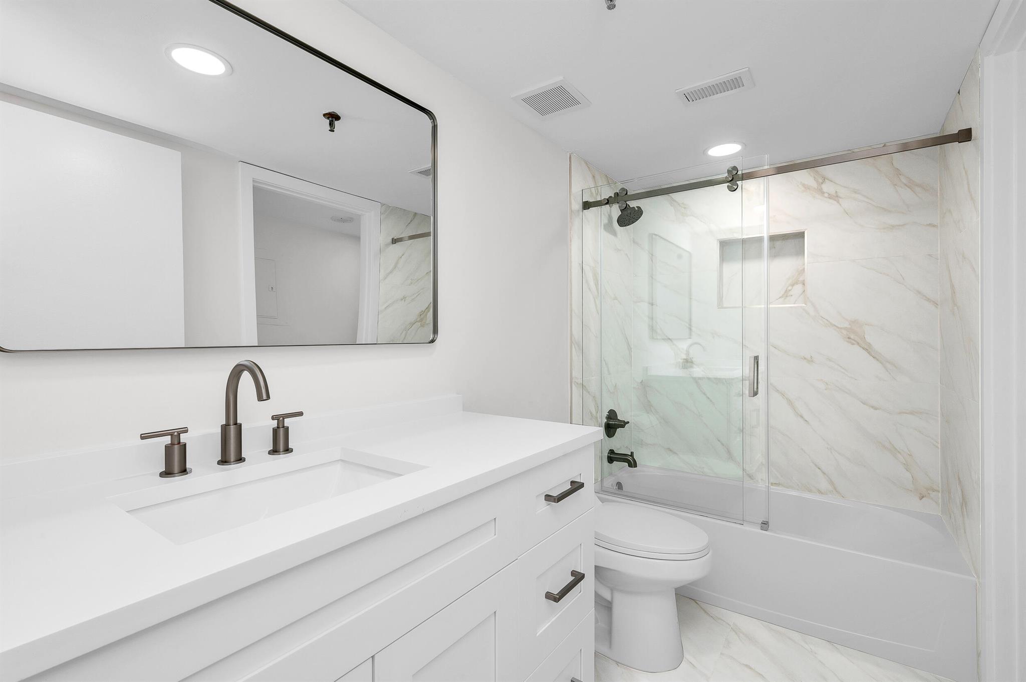 Newly renovated 2/2 corner unit in the heart of Delray Beach. This unit is move in ready and a must see! Top of the line finishes include porcelain tile throughout, partial impact windows, quartz countertops, Samsung appliances, new water heater and newer AC unit. Close parking space. This active community includes a newly renovated clubhouse, theatre, indoor/outdoor pools (as well as a pool next to the actual building), spa and gym. The community has excellent walk trails and sport activities such as tennis courts, pickle ball, racquetball, bocce court and shuffle board.