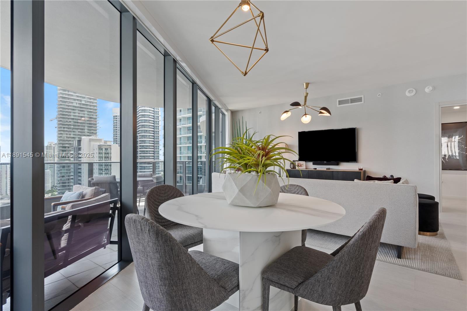 Live at the newest & most luxurious building with the highest quality and in the best location in Downtown Brickell. This 2 bedrooms and 2 baths with 1/2 bath on the 35th floor at the brand new ultra-luxurious Brickell Flatiron Condo. This unit is the 01 line; the most coveted line in the tower. With 9' ceilings and floor to ceiling glass, breathtaking views south, east, north, and west. The colorful city lights, Biscayne Bay, and views as far as Coconut Grove are yours to enjoy. Amenities include 2 Pools,2 Jacuzzis, State of the Art Fitness Center, Spa with Steam, Sauna and massage & spectacular views from the 64th level amenity floor.2 Lounges, Theatre room, billiard room, and Children room. New electric shades and brand new closets installed.