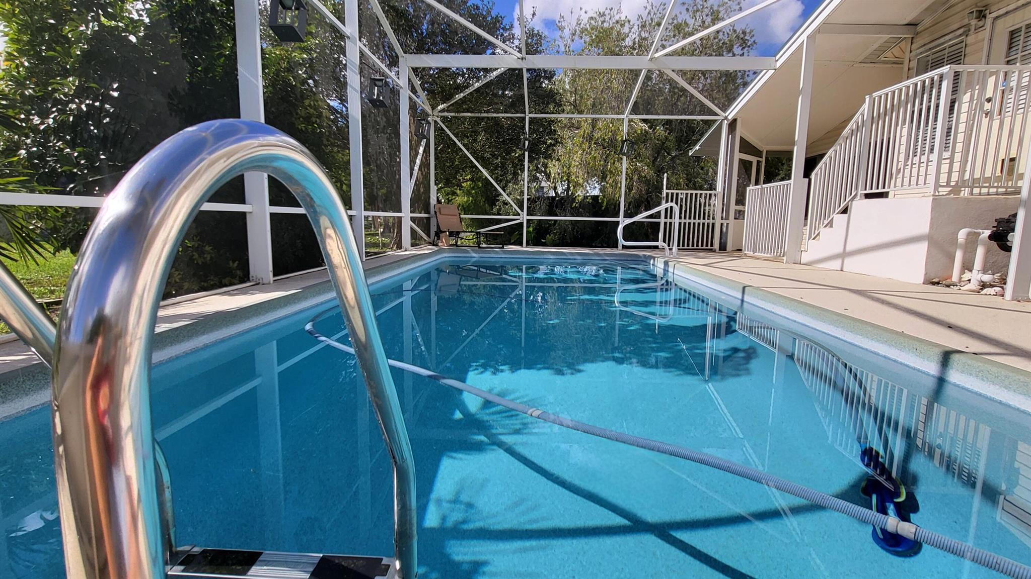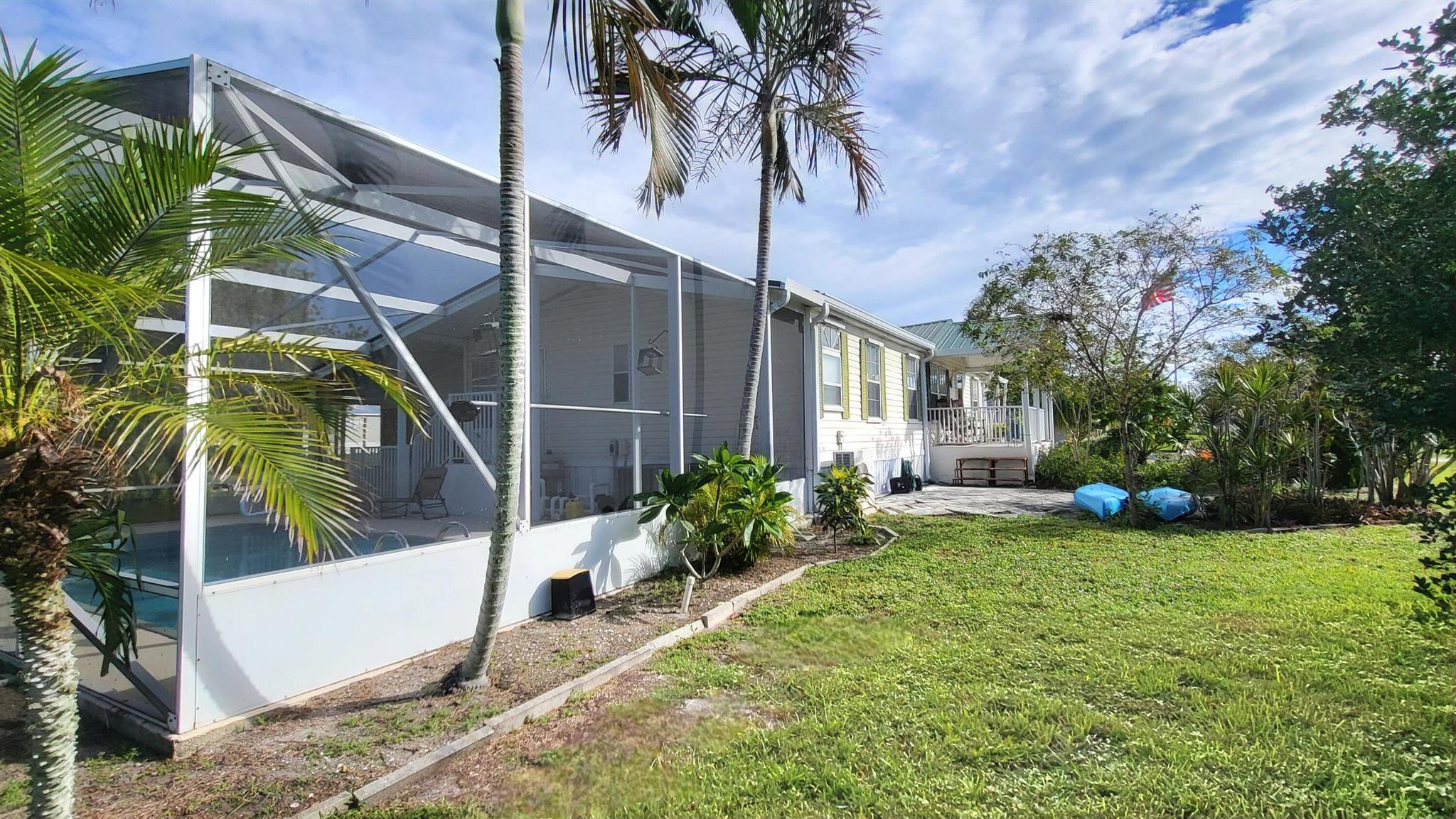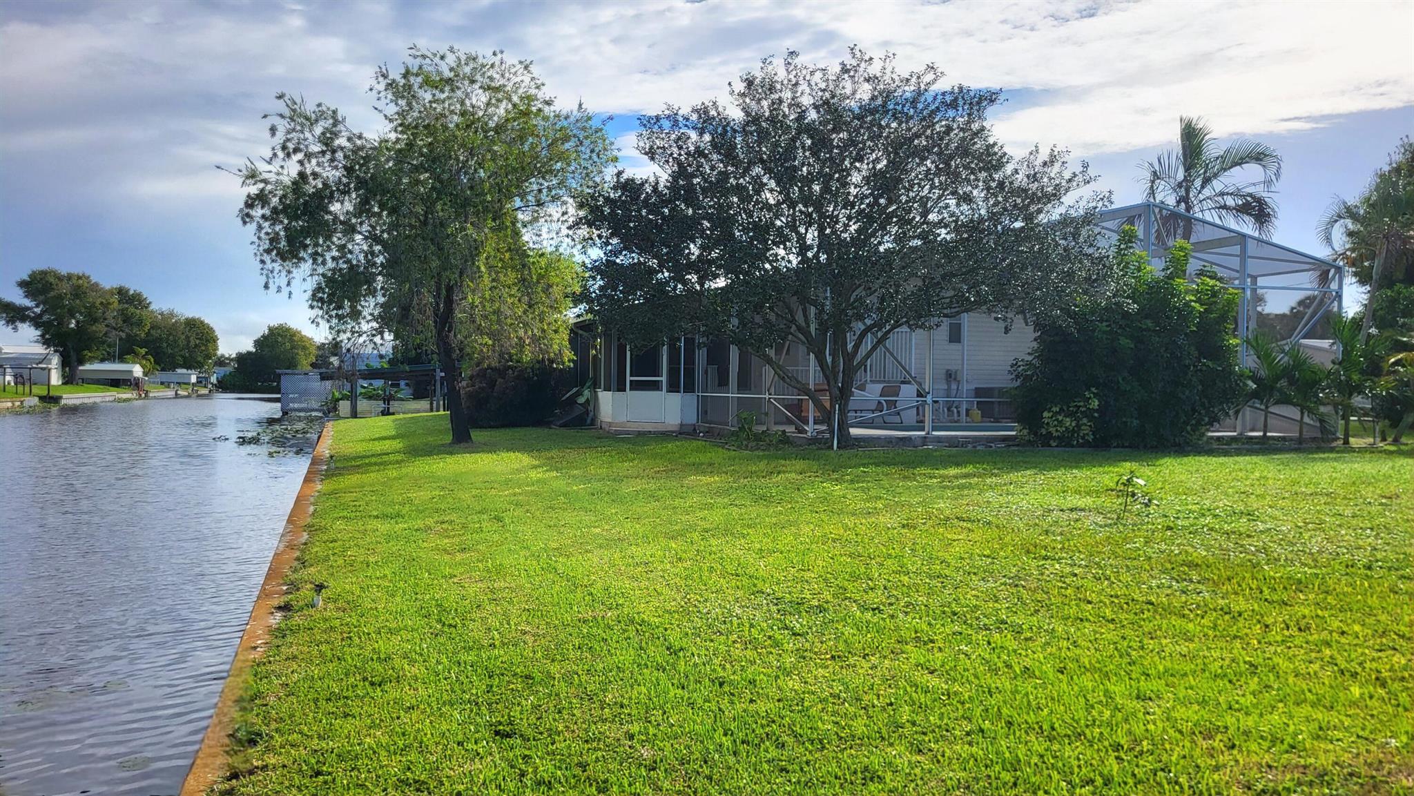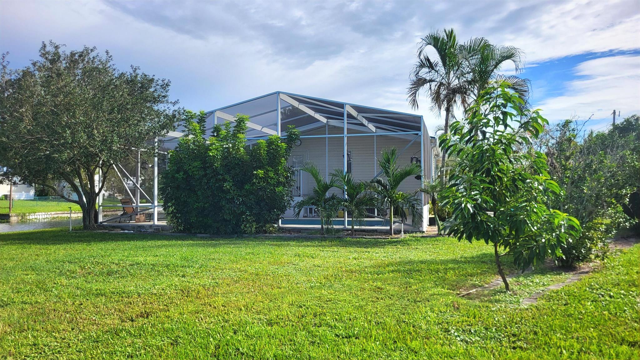 WATERFRONT POOL HOME sprawling over .26 acres situated on a cul-de-sac and converging canals. LAKE OKEECHHOBEE ACCESS. Relax or exercise in the lavishly inviting 12x24 sparkling pool with non-skid, cool-coated surface under a fully enclosed patio with bona fide privacy. Any boat will appreciate the electric lift shaded under the boat slip, before a day of leisure or fishing on Lake Okeechobee. Rest-assure the impressive 220 ft of strong seawall will last a lifetime. FULL RV hookup (30/50-amp, dump & water. Zoned irrigation will keep landscaping and green & lush. Take in the calming view of the waterfront from the 12x45 Florida Room (mini-split AC). Appreciate the ample soft-close kitchen cabinets, granite countertops and updated baths. Roof 2018. No HOA. No flood zone. Avocado trees too!