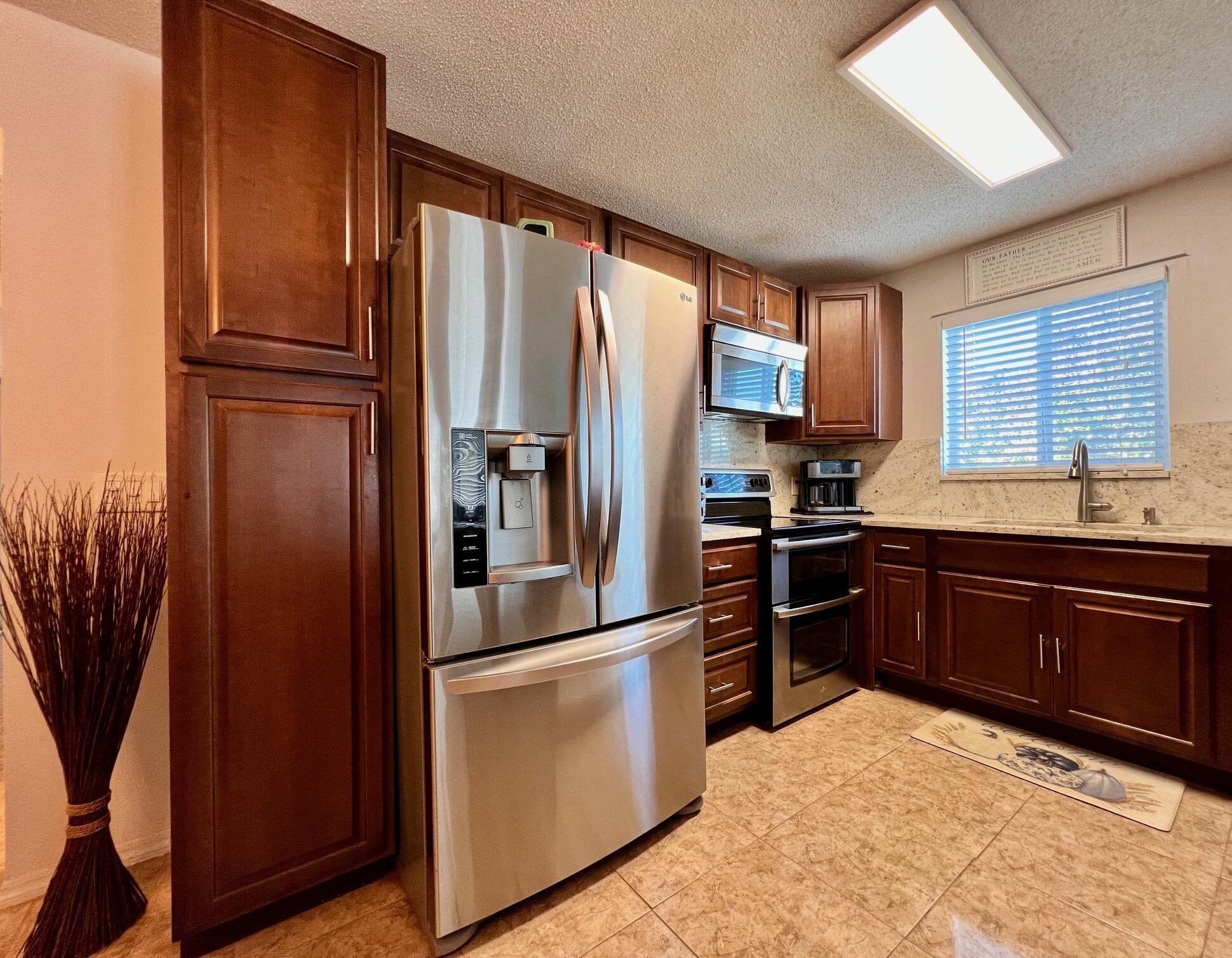 STUNNING & WELL PRICED IN 55+ CENTURY VILLAGE! Move In Ready Beautifully Updated CORNER 1/1.5 With An Open Living Area. Updated & Open Kitchen Featuring Rich Wood Cabinets, Expanse of Granite Counters, Stainless Appliances, and Window for Natural Light. Tile Flooring Flows Throughout. Updated Baths. Impact Windows All Around Including the Slider to Lanai. Nicely Maintained Building With New Roof (2021), Recently Painted, and No Special Assessments! Close to Hastings Fitness Center and the Dorchester Pool. Century Village is a Vibrant 55+ Community Centrally Located in Highly Desirable Palm Beach County. Enjoy An Active Lifestyle In Century Village With....