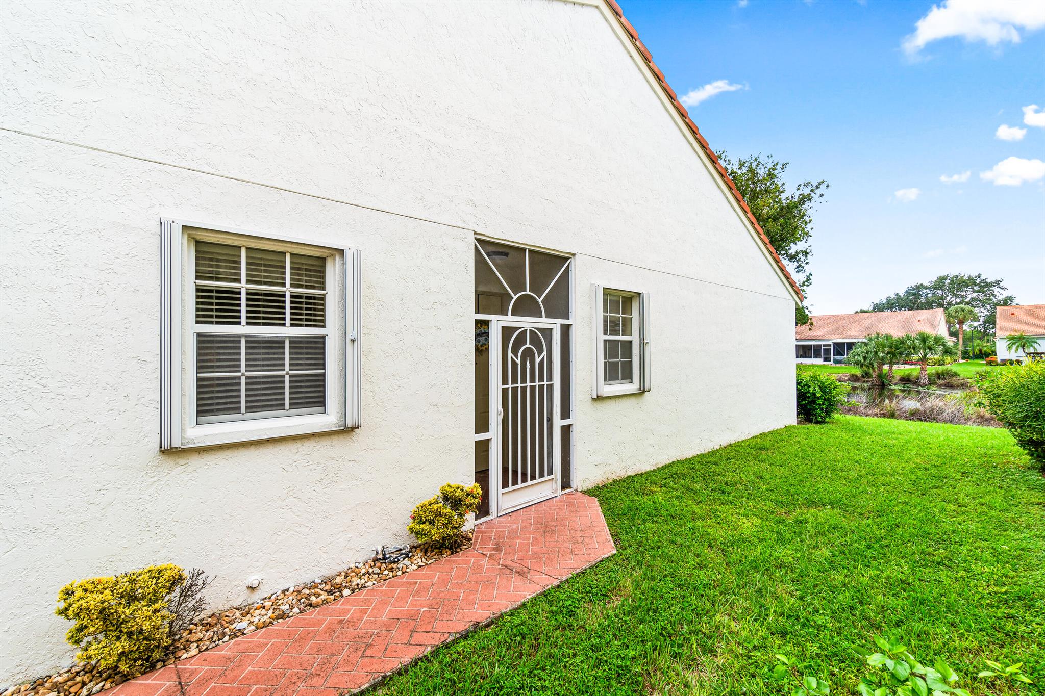 Great 2 bed plus den,1 car garage, waterfront villa in the desirable Floral Lakes community. A/C 2019, Water Heater 2015, Accordion Shutters.
