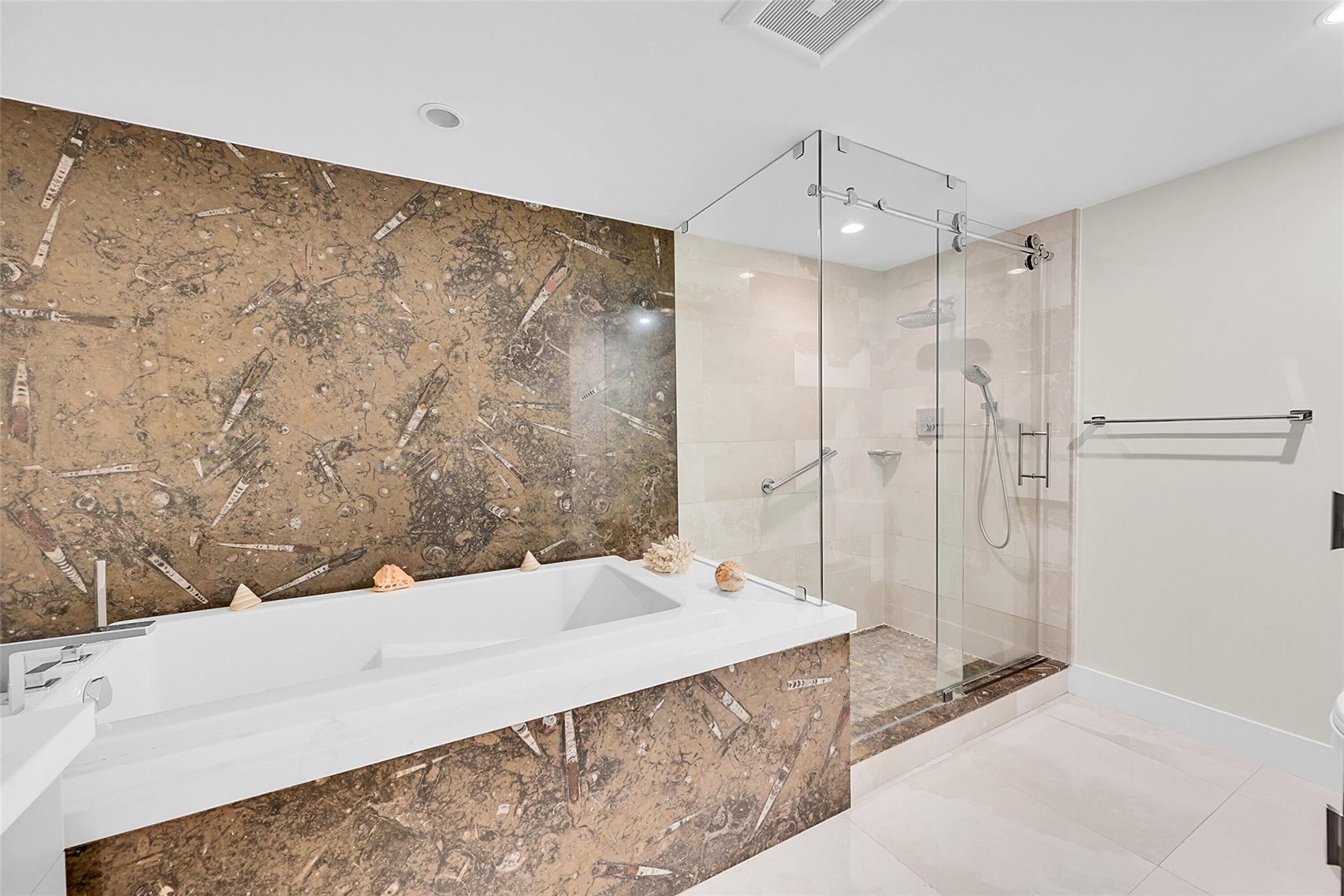 Extraordinary, sophisticated, and completely renovated 2-story penthouse in the prestigious Criterion, a 24/7 security, boutique building located directly on the sand with amazing water views. A “gold-standard” concrete-restoration initiated June 2020 completed June 2022. Formal dining room and spacious living room area with balcony, chef’s kitchen with custom European cabinetry, marble counters and backsplash, Wolf and Sub-Zero appliances. Upstairs, primary suite features another balcony. Spa-like, marble primary bathroom, with dual sinks, jacuzzi tub and separate shower. 24” x 24” marble floors and floor-to-ceiling impact glass, custom, built-in closets throughout the unit. Elevator access on both living and bedroom levels. Includes a pool-side Cabana #1 with a full-bath.