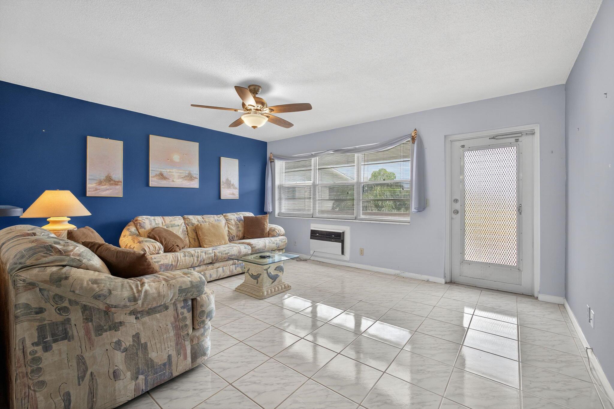 CHARMING,FURNISHED 1 BED/1 BATH CONDO ON 2ND FLOOR FEATURING CERAMIC TILE THROUGHOUT THE LIVING AREA AND A COZY CARPETED BEDROOM. THIS UNIT IS BEAUTIFULLY PAINTED IN SOOTHING LIGHT AND DARK BLUE TONES AND HAS AN UPDATED ALL WHITE KITCHEN AND MODERN BATHROOM WITH STEP IN SHOWER. IT'S WELL TAKEN CARE OF, VERY CLEAN AND INCLUDES HURRICANE SHUTTERS FOR ADDED SAFETY. WELL MANAGED AND FRIENDLY ASSOCIATION.THE ASSOCIATION OFFERS A LOVELY PATIO AREA TO RELAX AND ENJOY THE PEACEFUL SURROUNDINGS. CLOSE TO THE WEST GATE AND THE CAMDEN POOL. VCOME & ENJOY RESORT STYLE LIVING IN THIS GATED COMMUNITY FOR ADULTS 55 +. CLUBHOUSE features a theater, indoor pool, card room, community/party room, billiard room ,shuffle board ,tennis , pickleball ,bocce and two outdoor pools. Numerous heated outdoor