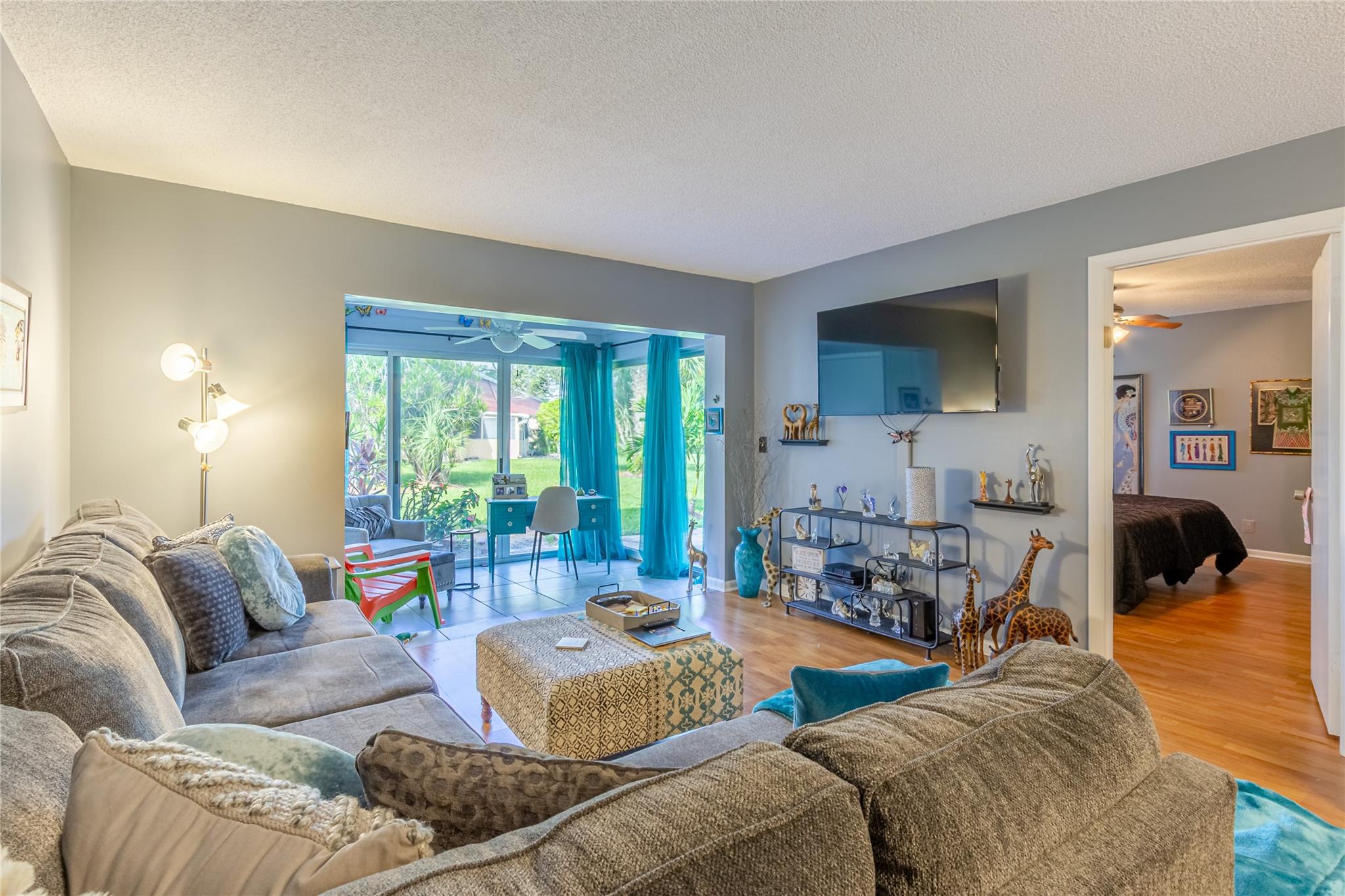 Beautiful 2 bedroom 2 bath villa in the much sought after 55+ community of Covered Bridge. This one of a kind unit has wood floor and tile throughout. The unit has 2 large bedrooms stacked for privacy with each having it's own full bathroom. The kitchen has plenty of counter space with a pass thru to the dining area. The spacious living room, dining room combo is perfect for entertaining with a gorgeous view of the rear garden. The glass enclosed Florida room is the perfect place to enjoy a glass of wine or morning coffee, or you can relax on the outside patio area. The community offers a heated pool, jacuzzi, tennis, a gym, card rooms, and so much more! Close to all major highways, dining, shopping, hospitals, airports and the beach! The A/C is from 2021 and the roof was installed in 2024