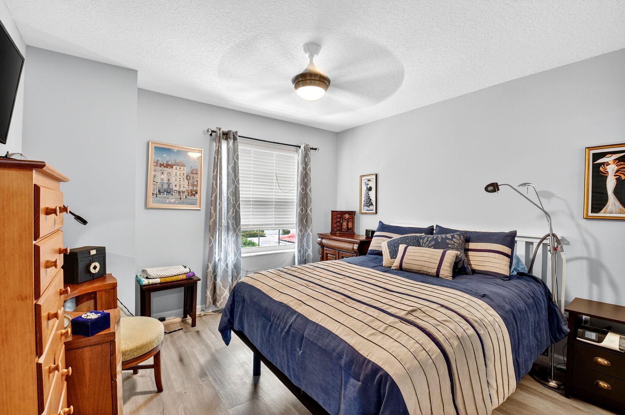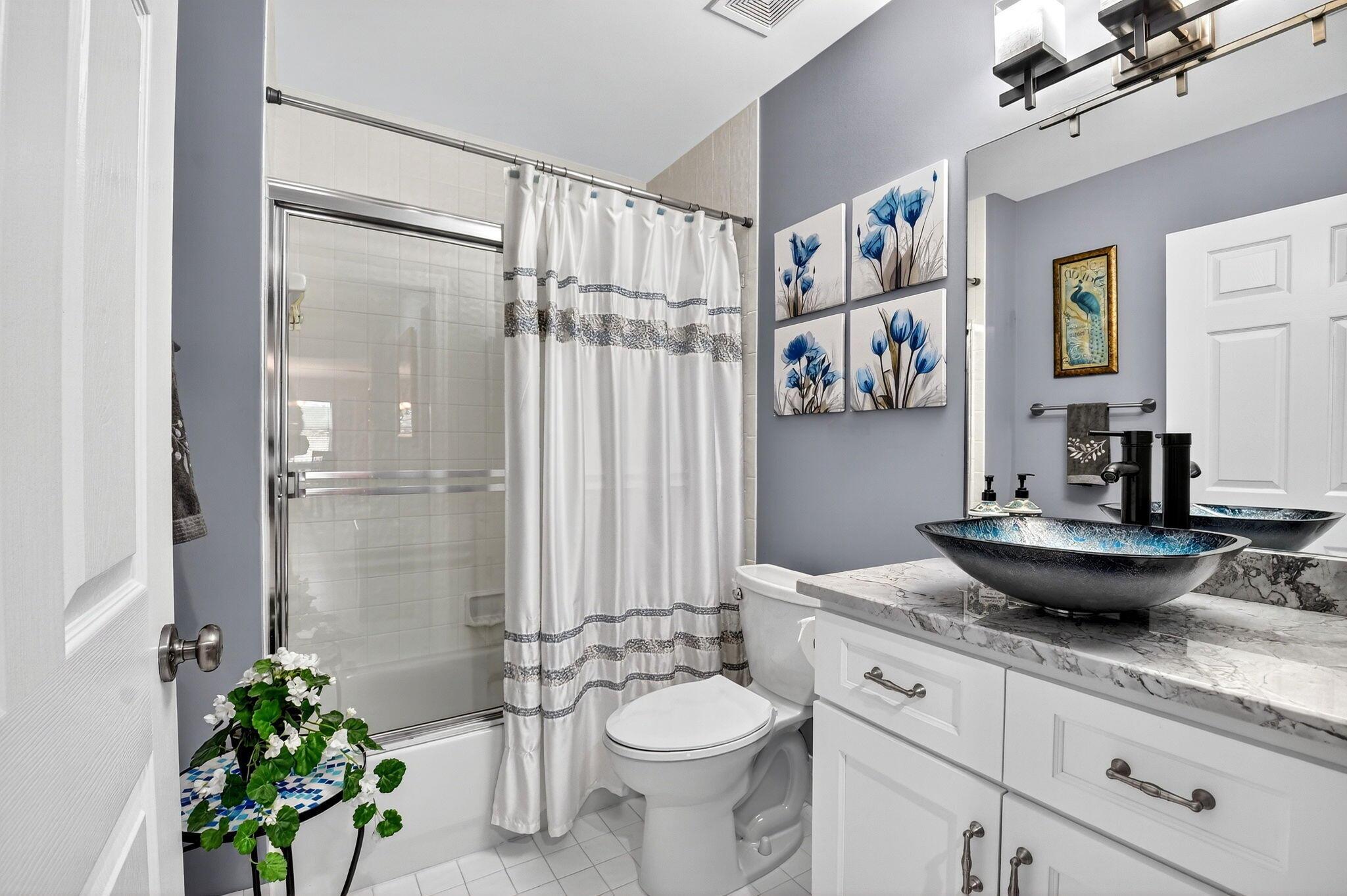 RARELY AVAILABLE, JUST REDUCED, 2nd floor coach home with interior elevator, extensively renovated featuring vaulted ceiling, screened-in patio overlooking a gorgeous wide lake (outdoor living at its finest.) modern kitchen with quartz counters, custom white cabinets & SS Appliances, 2 beautiful, renovated bathrooms. Luxury laminate in master & 2nd bedroom. New roof was installed in 2024. NO assessments! Condo fees include water. alarm, internet, TV, all amenities at newly renovated Club with tennis, pickleball, billiards, bocce, theatre, cafe, 35 social clubs, gym, water aerobics & much more, No country club fees. Move right in and enjoy. Can be rented immediately.