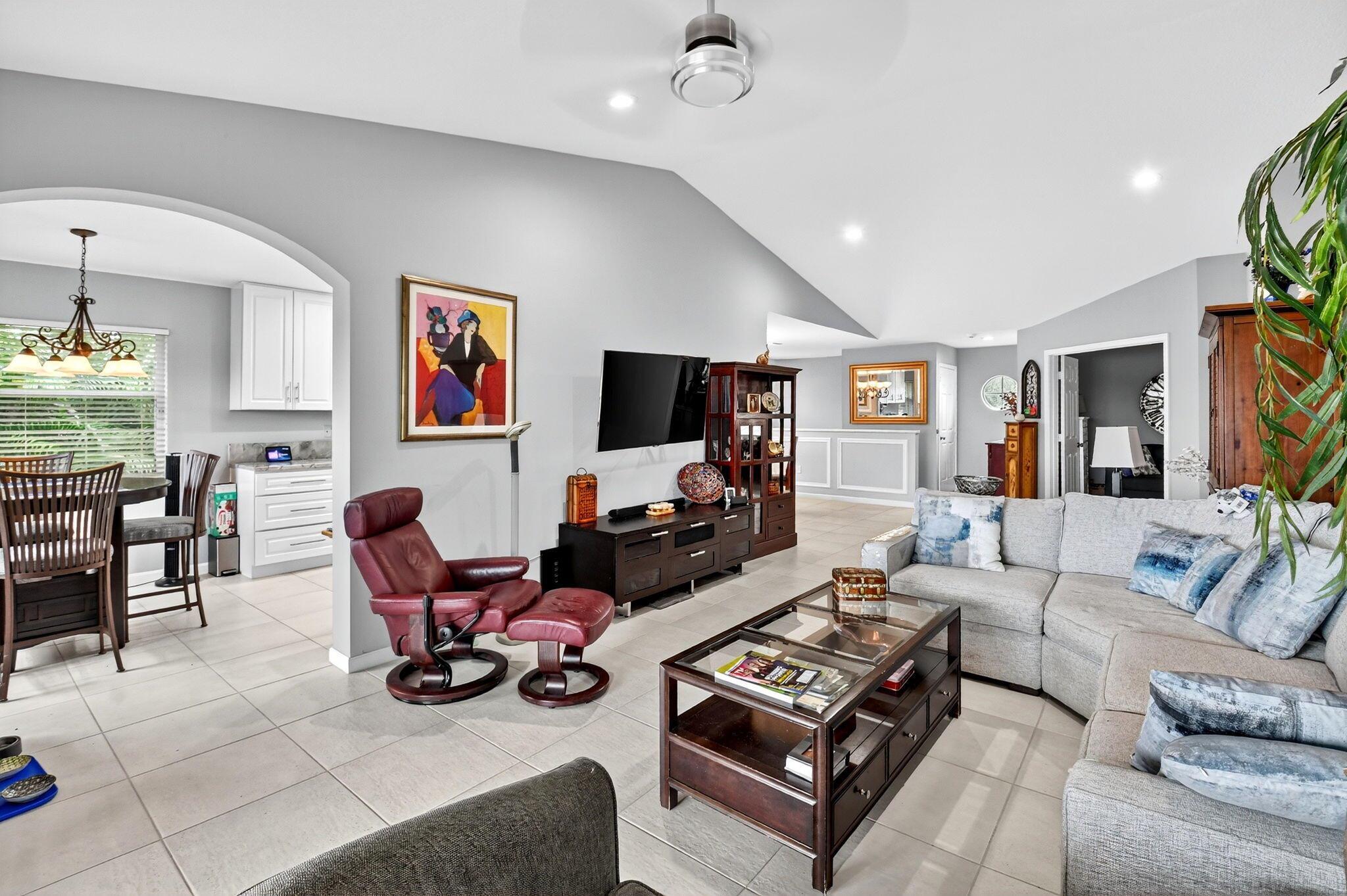 RARELY AVAILABLE 2nd floor coach home with interior elevator, extensively renovated featuring vaulted ceiling, screened-in patio overlooking a gorgeous wide lake (outdoor living at its finest.) modern kitchen with quartz counters, custom white cabinets & SS Appliances, 2 beautiful, renovated bathrooms. Luxury laminate in master & 2nd bedroom. New roof was installed in 2024. NO assessments! Condo fees include water. alarm, internet, TV, all amenities at newly renovated Club with tennis, pickleball, billiards, bocce, theatre, cafe, 35 social clubs, gym, water aerobics & much more, No country club fees. Move right in and enjoy. Can be rented immediately.