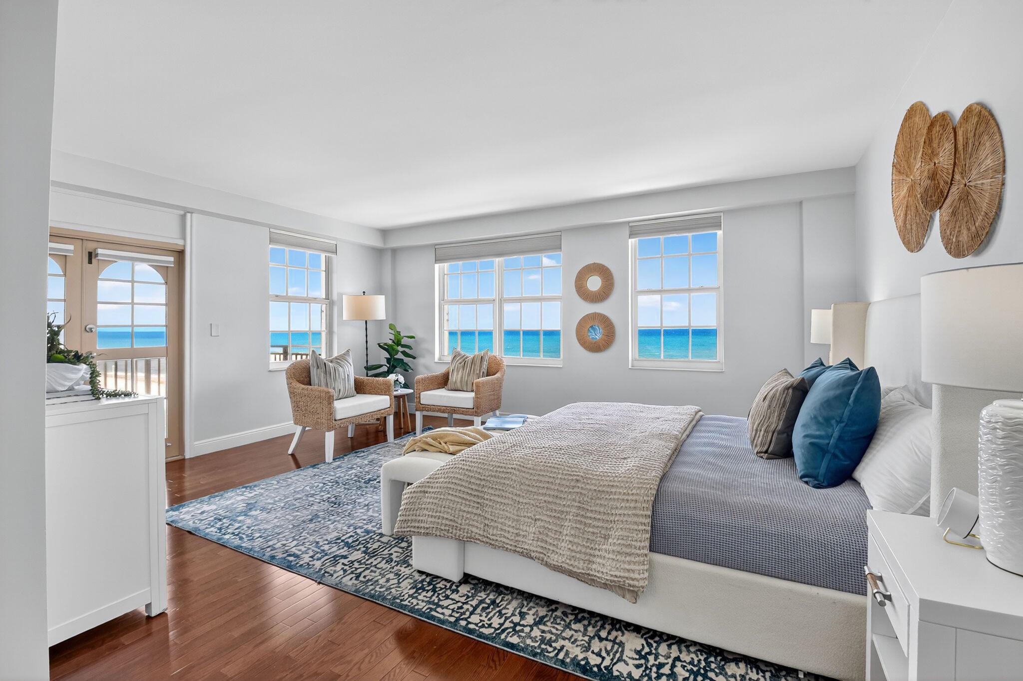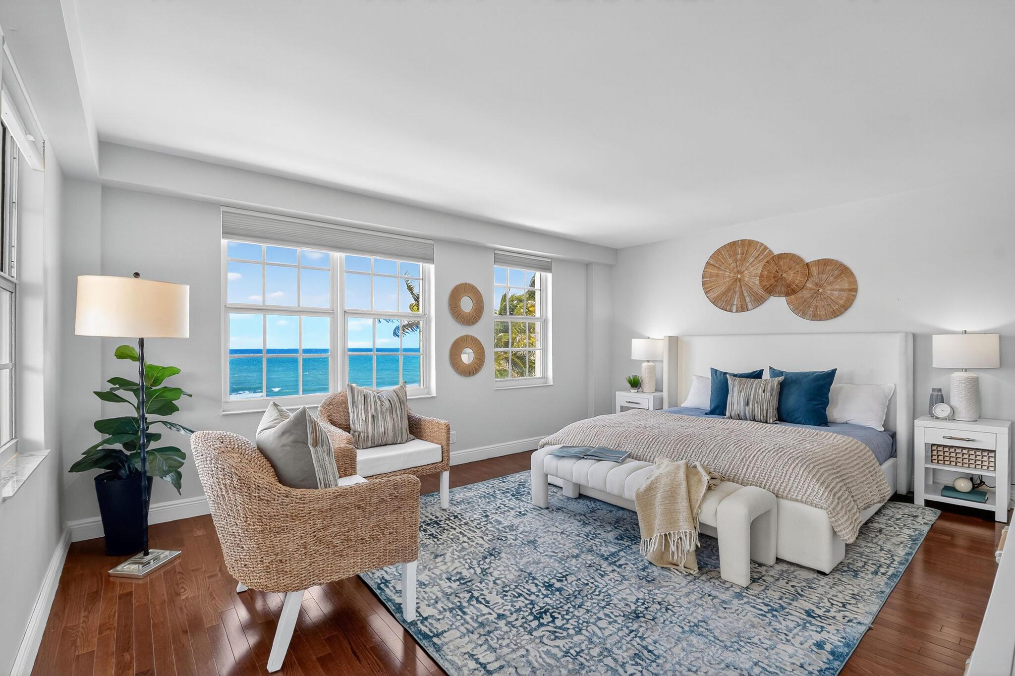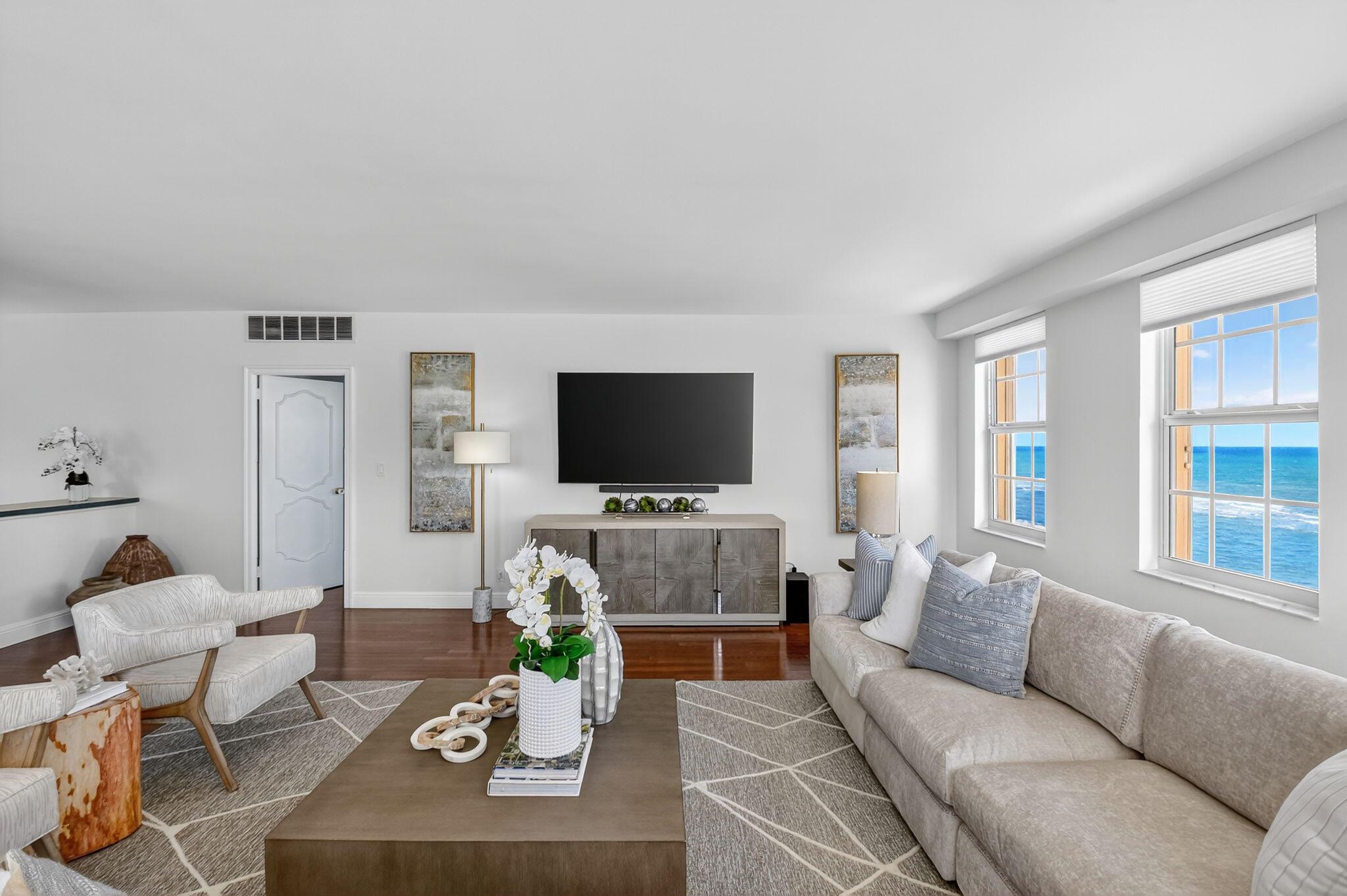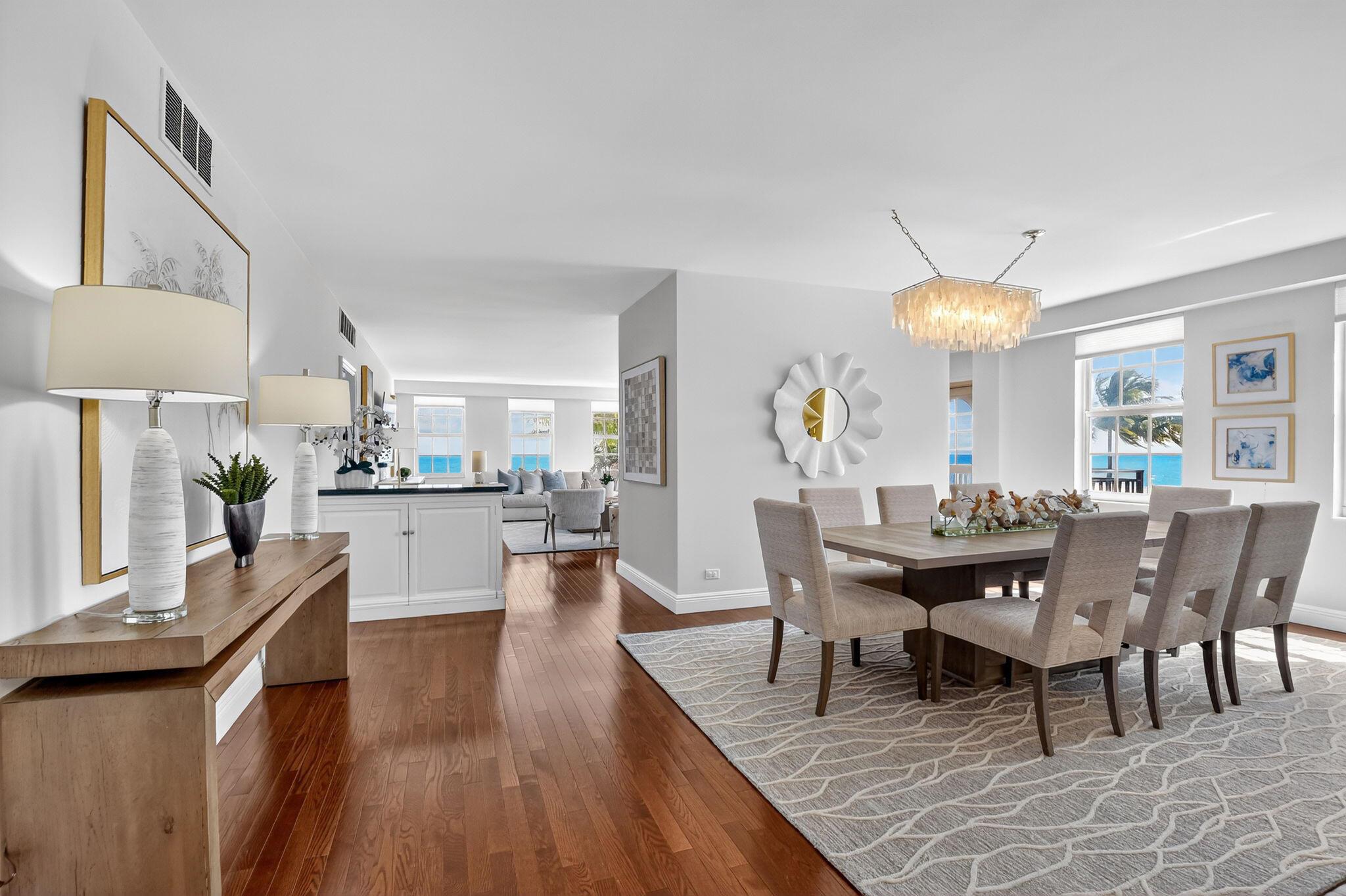 Wake up to the rhythm of the waves and endless Atlantic views in this spectacular Palm Beach oceanfront residence, where every room feels connected to the sea. The moment you enter, you're greeted by unobstructed views of the Atlantic Ocean that fill the home with light and serenity. With windows showcasing nothing but turquoise water, it feels as though you're floating aboard a private cruise ship.The expansive open-concept floorplan is ideal for entertaining, with a spacious living and dining area that opens to a generous oceanfront terrace, perfect for morning coffee, sunset cocktails, or simply watching the waves roll in. The fully renovated kitchen features custom cabinetry, quartz countertops, & premium stainless-steel appliances, while all three bathrooms have been beautifully