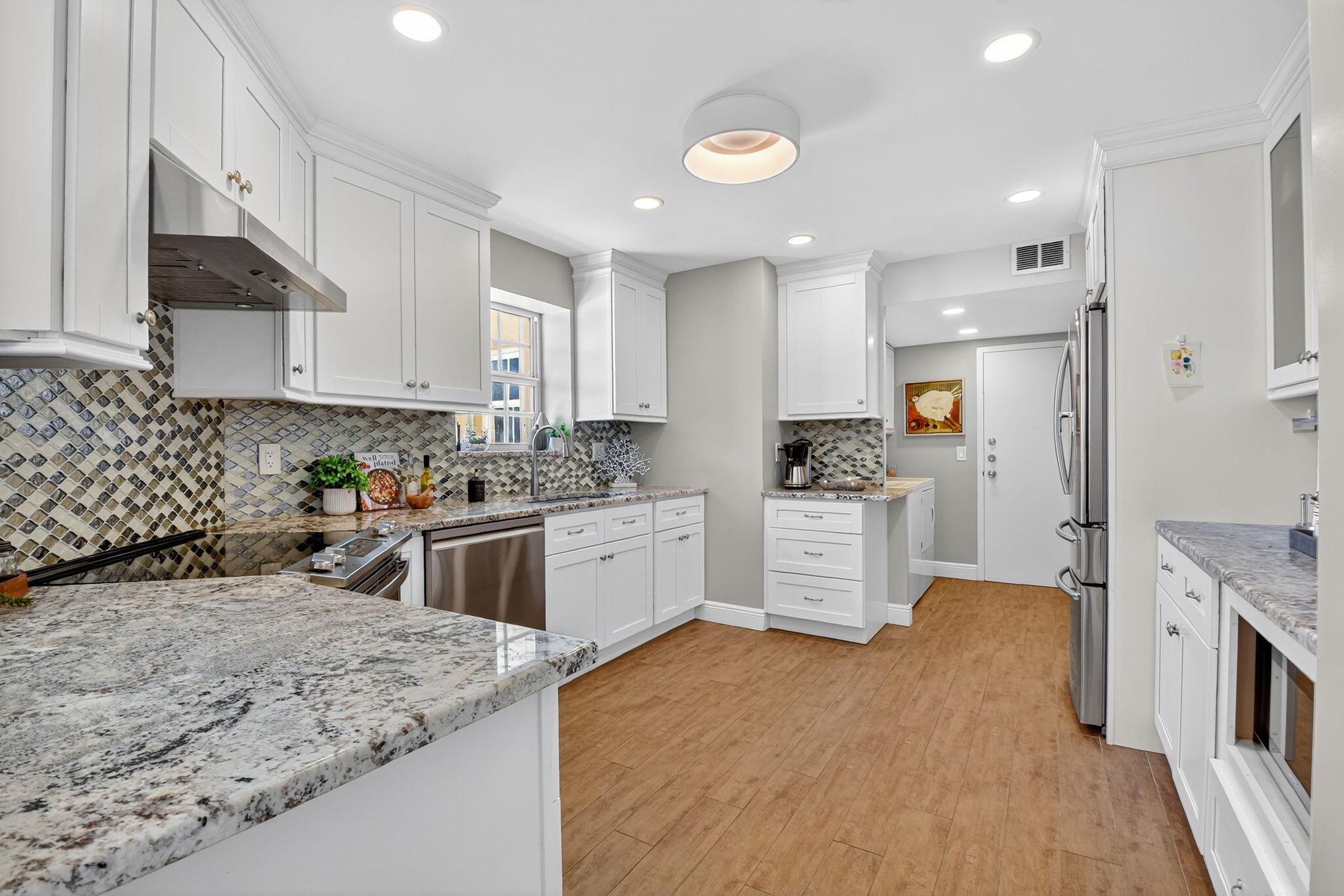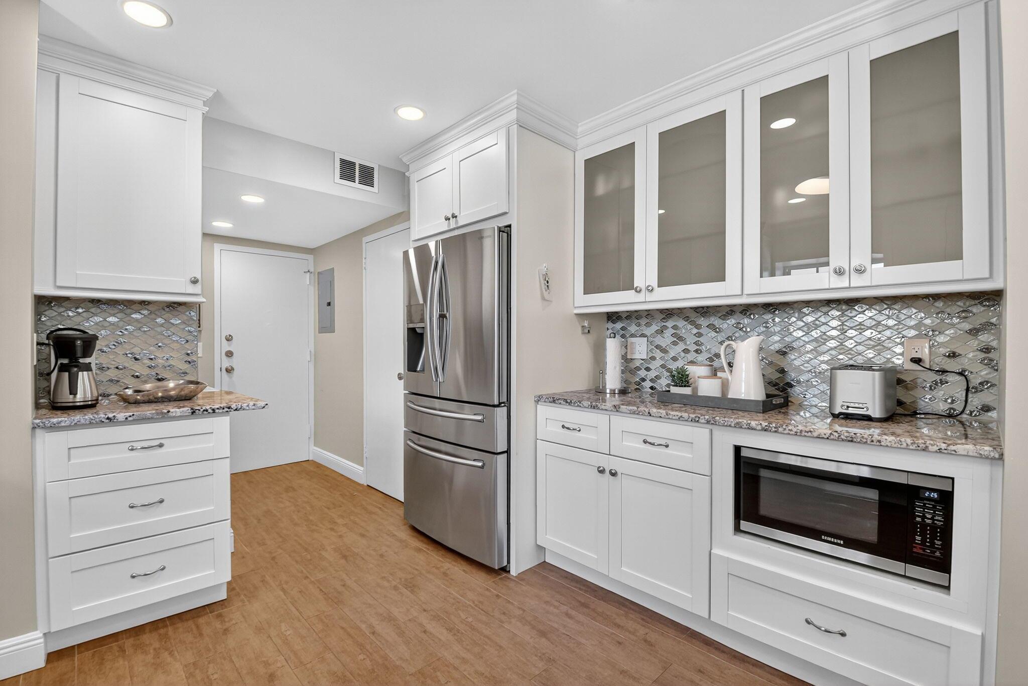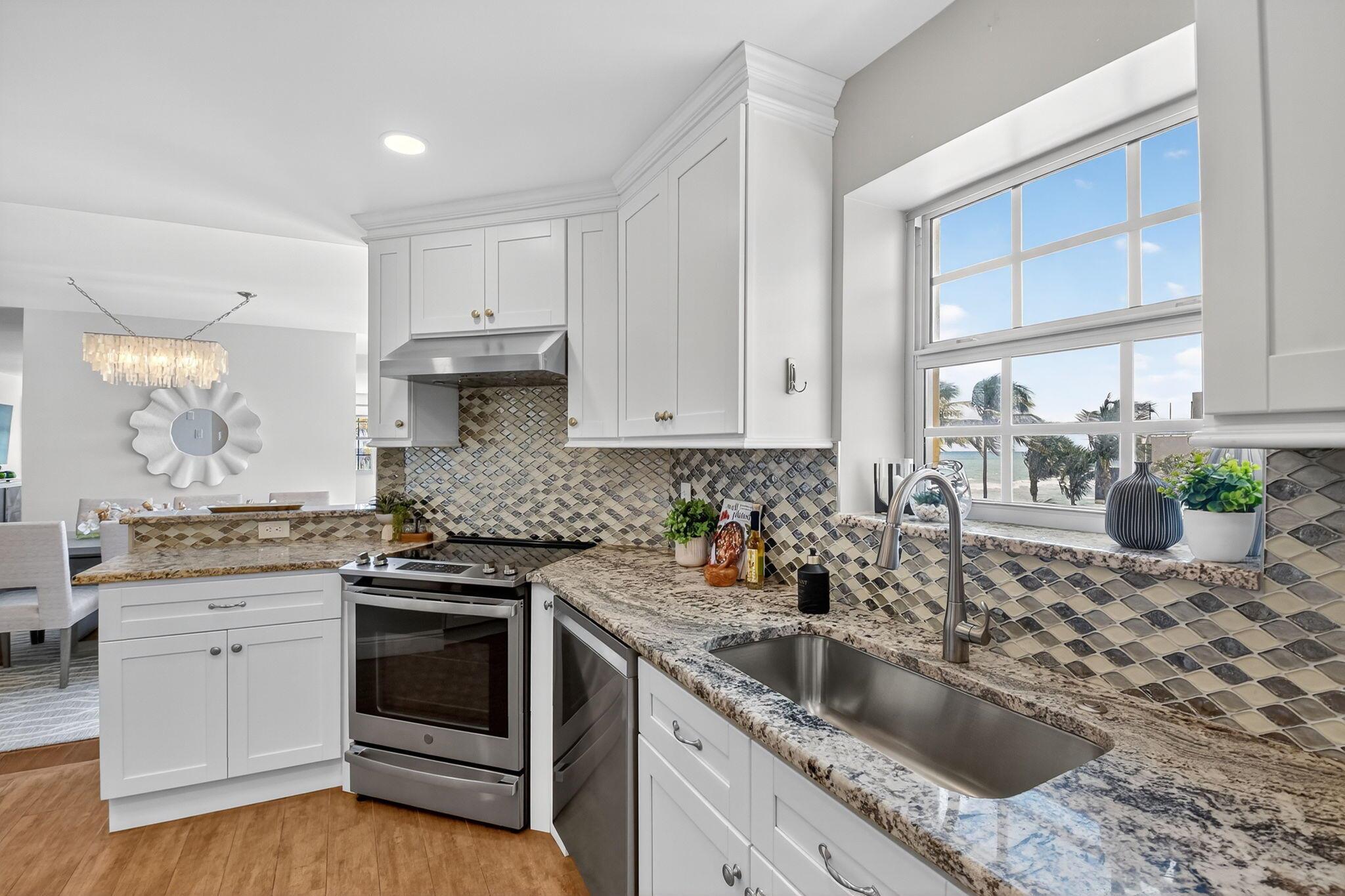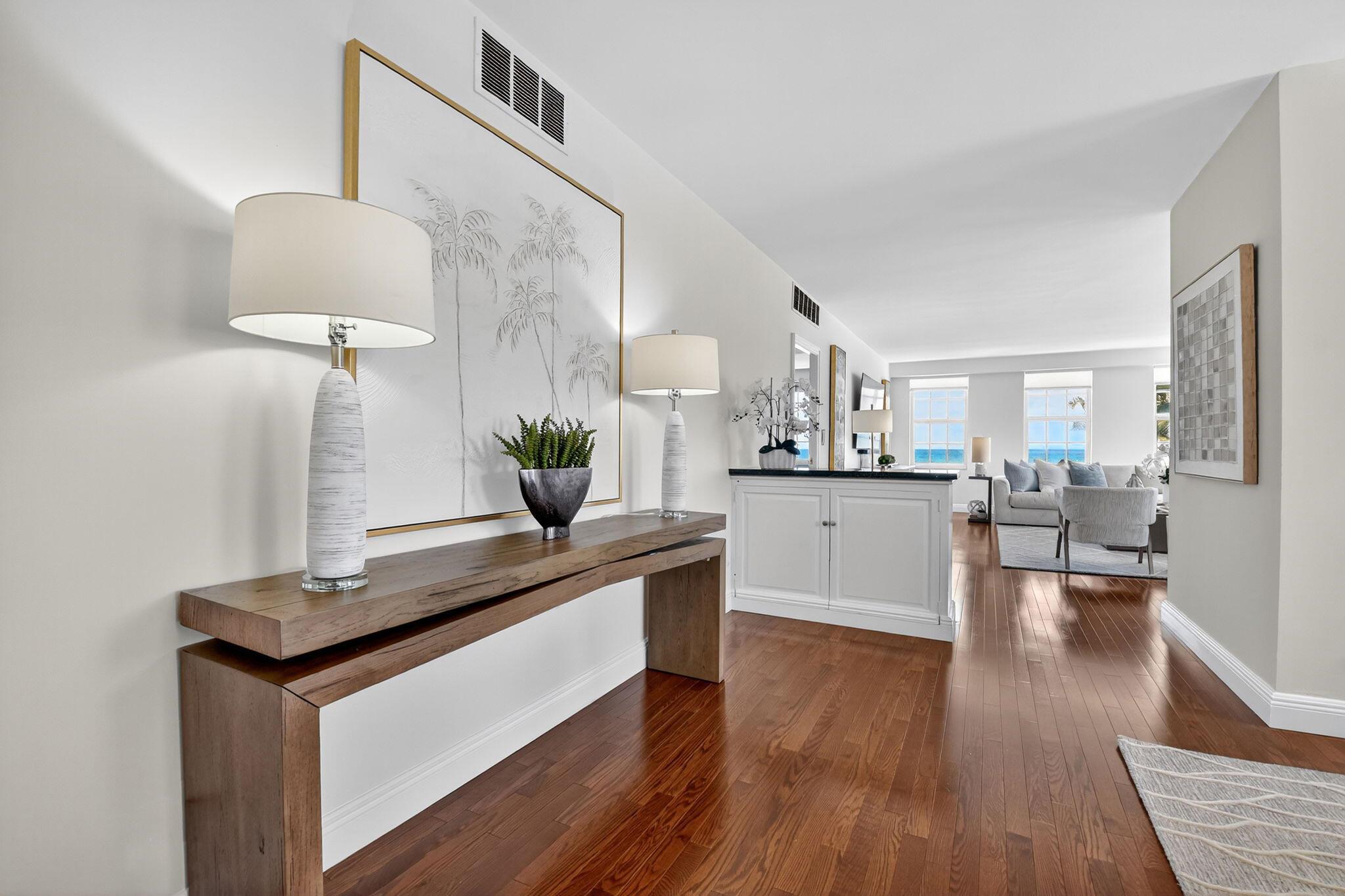 Wake up to the rhythm of the waves and endless Atlantic views in this spectacular Palm Beach oceanfront residence, where every room feels connected to the sea. The moment you enter, you're greeted by unobstructed views of the Atlantic Ocean that fill the home with light and serenity. With windows showcasing nothing but turquoise water, it feels as though you're floating aboard a private cruise ship.The expansive open-concept floorplan is ideal for entertaining, with a spacious living and dining area that opens to a generous oceanfront terrace, perfect for morning coffee, sunset cocktails, or simply watching the waves roll in. The fully renovated kitchen features custom cabinetry, quartz countertops, & premium stainless-steel appliances, while all three bathrooms have been beautifully