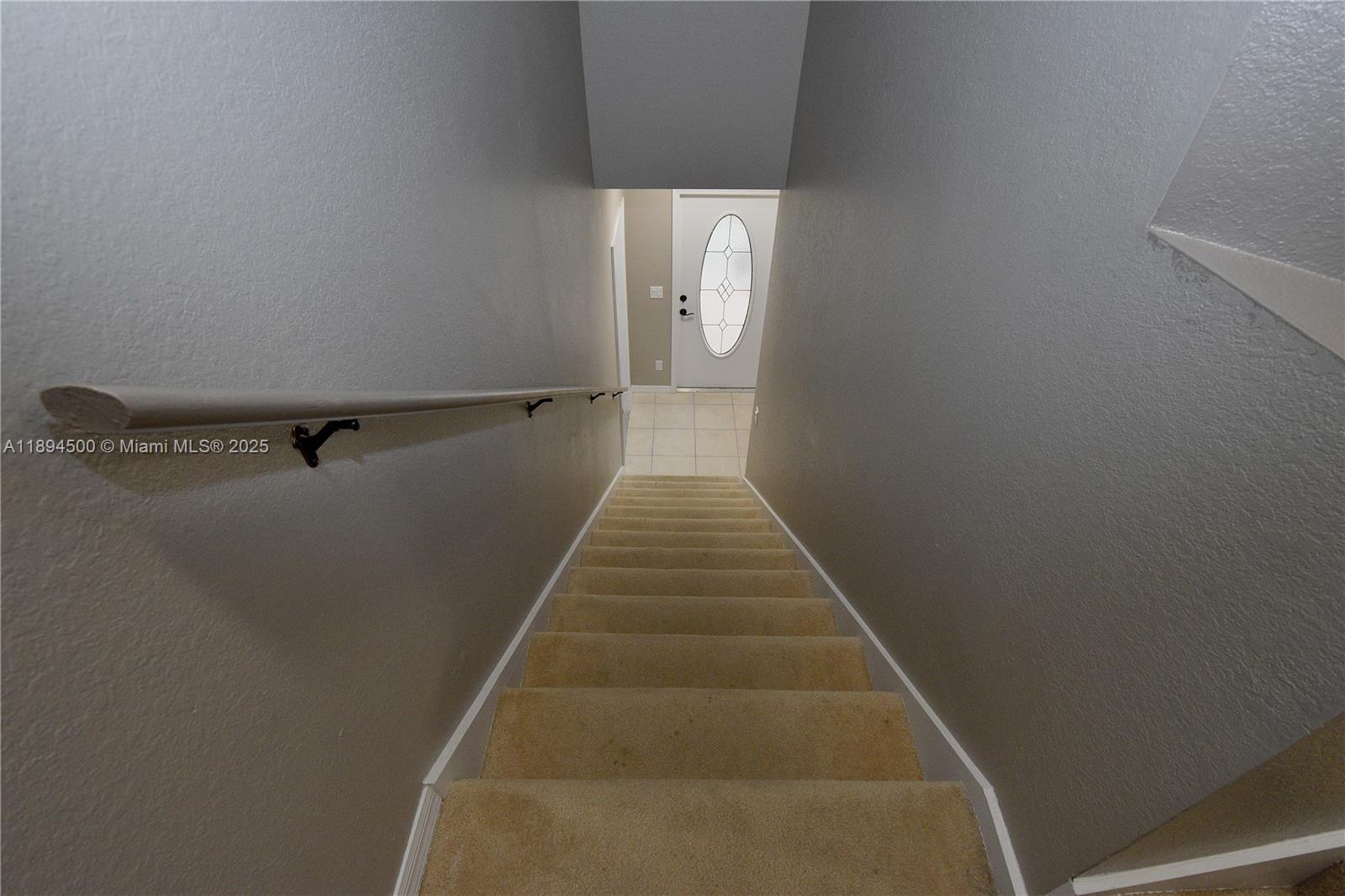 Spacious, second floor 3 bedrooms and two bathrooms wit a 2 car garage unit. Well kept unit with separated living area and dining area. Eat- in kitchen counter and plenty of wall cabinet storage. The guest bathroom has an additional laundry area. Two of the bedrooms are towards the front and the primary bedroom towards the rear of the property. Carpet flooring on the bedrooms, stairs and living room areas. Tile flooring at the kitchen, dining and bathrooms areas. There is a laundry area with a wash tub at the garage too. Screened balcony with exterior ceiling fan and lights. Beautiful place surrounded of well landscaped areas. Located near businesses, and SR82 road.