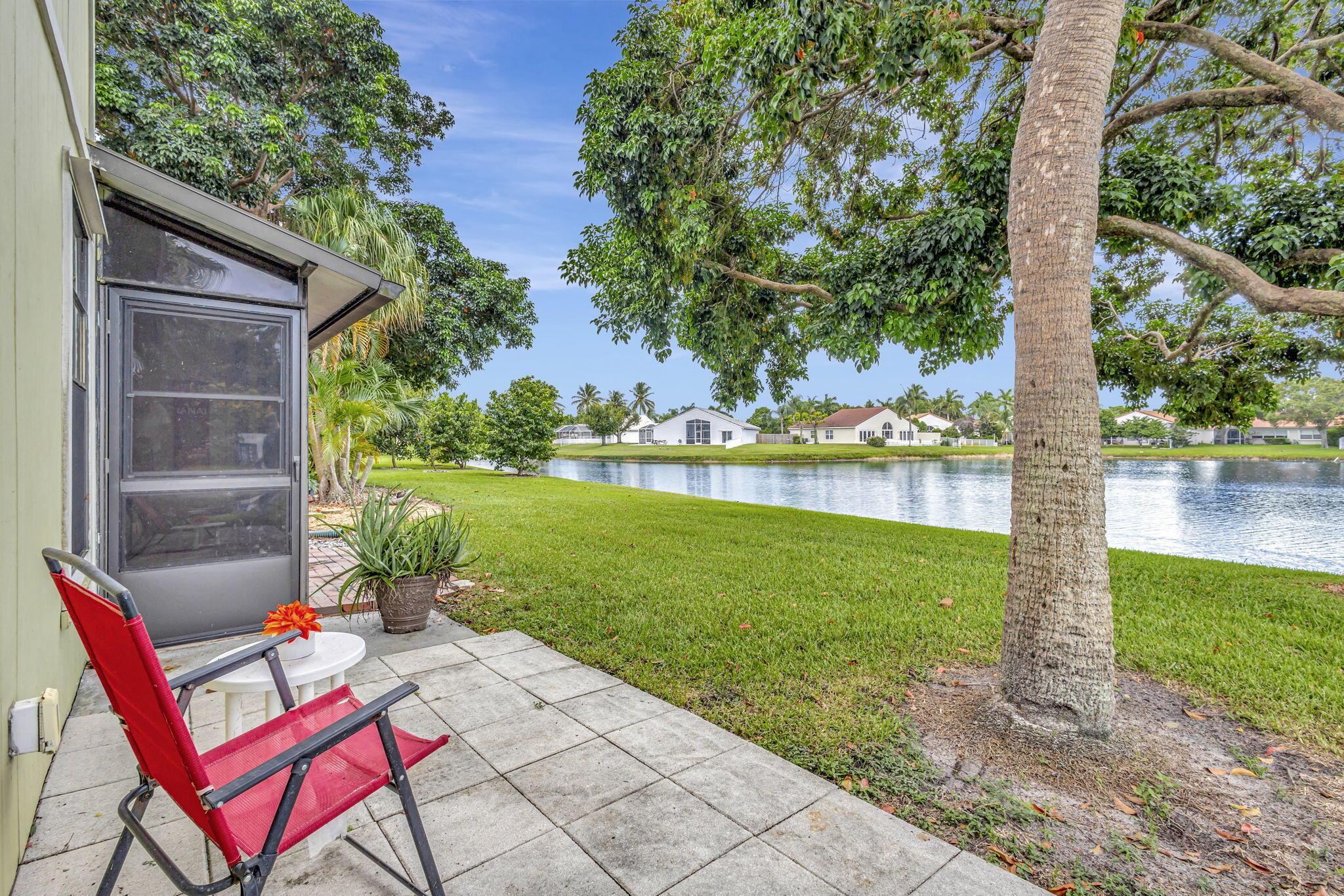 Welcome to this spectacular villa with breathtaking water views and plush greenery. This villa features a large, enclosed patio to entertain your family and friends. 2 bed 2 full bath equipped with washer and dryer, newer stylish flooring throughout, 2024 water heater, new thermostat. Plenty of storage capacity. An abundance of windows to let in the natural light. Lovely primary bedroom features a sliding glass door to an outside patio with a fence and door to the front yard. This is one of the premier locations, the swimming pool is steps away from your front door and the club house is only seconds away which features billiards, library, sauna, swimming pool, community room for cards, board games, the More...