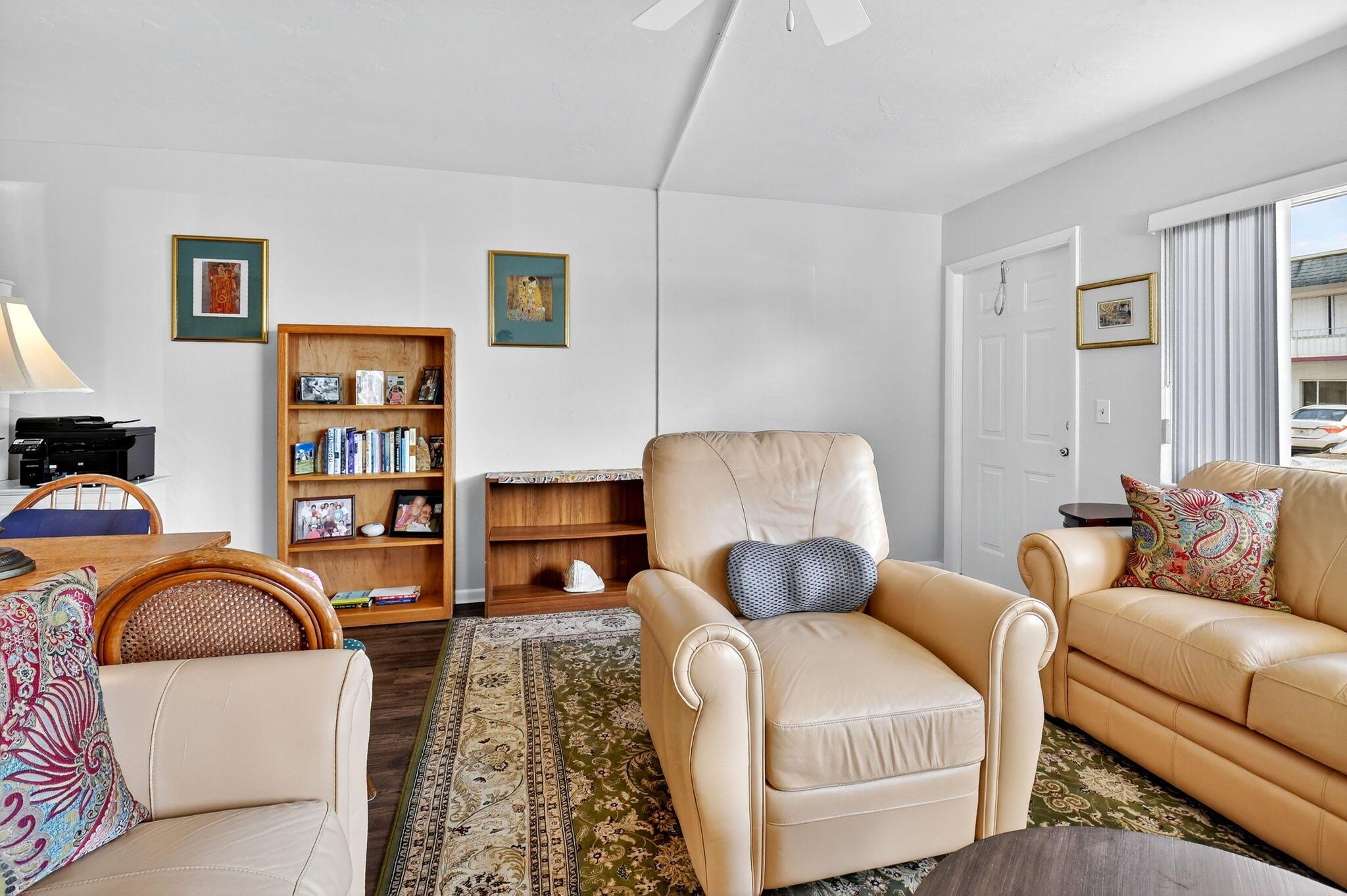 Priced under RPR value of $111,910. One BR unit in well maintained/financially stable 55+ complex. FIRST flr. lmpact glass. Newer AC/water htr. Located 8 min from ocean/across from 750-acre John Prince Park. Walking/biking trails nearby. Lake views from 2 LR windows. Assigned parking space/guest spot in front of unit. Gorgeous bamboo flooring. Nice beige leather furniture. Stunning custom wood kitchen. Great natural light! Tranquil bedroom w/private backyard. Just 2 min to 95 freeway/Tri-rail station. 5 min to dwntwn Lake Worth Beach. 15 min to WPB/Delray Beach for their abundant restaurants/shopping. Amenities: gigantic pool, 2 gyms, pickleball, bocce ball, shuffleboard, BBQ area, library, auditorium shows movies on Saturdays. 700 credit score. No pets. This building has reserves!